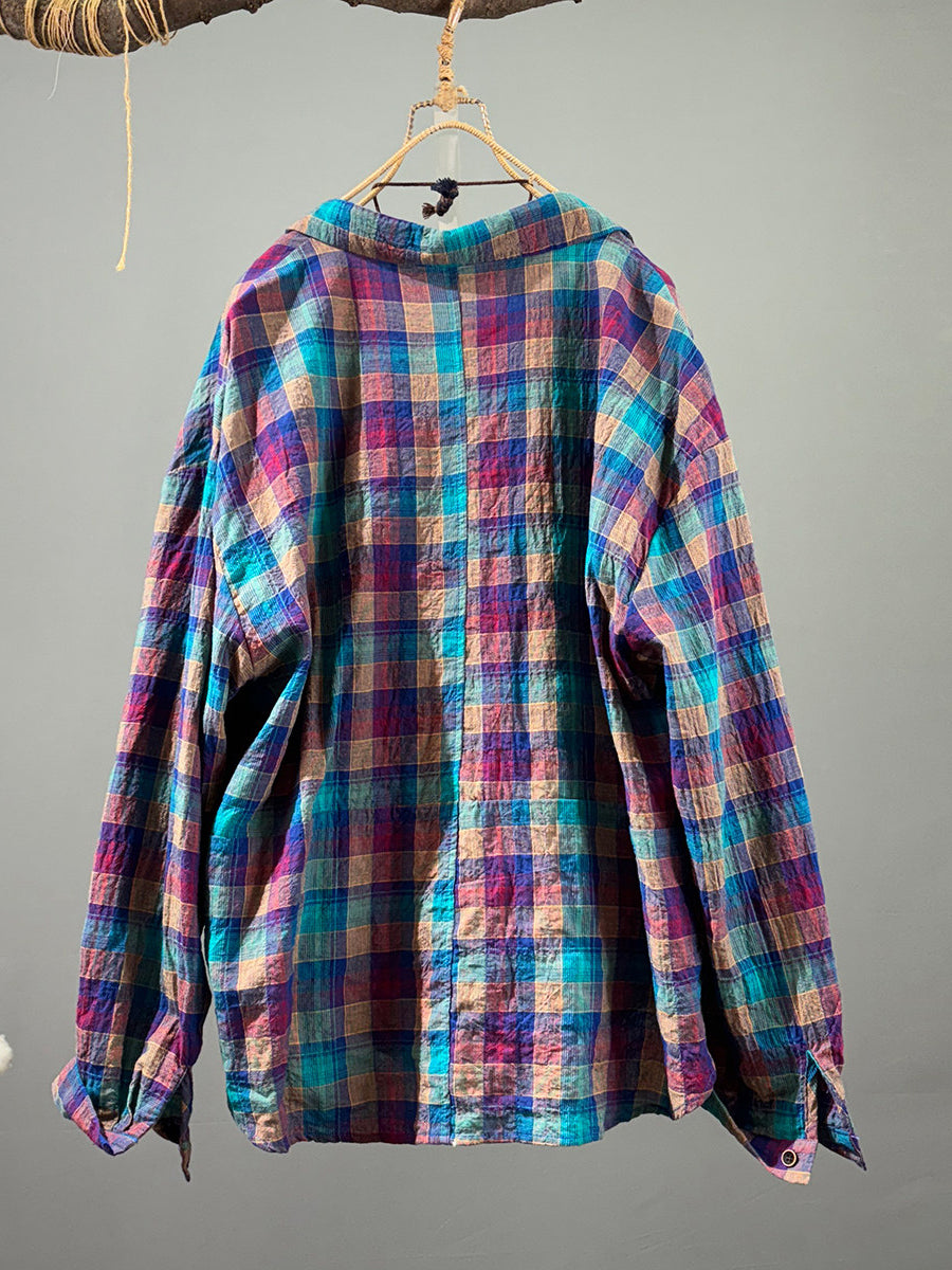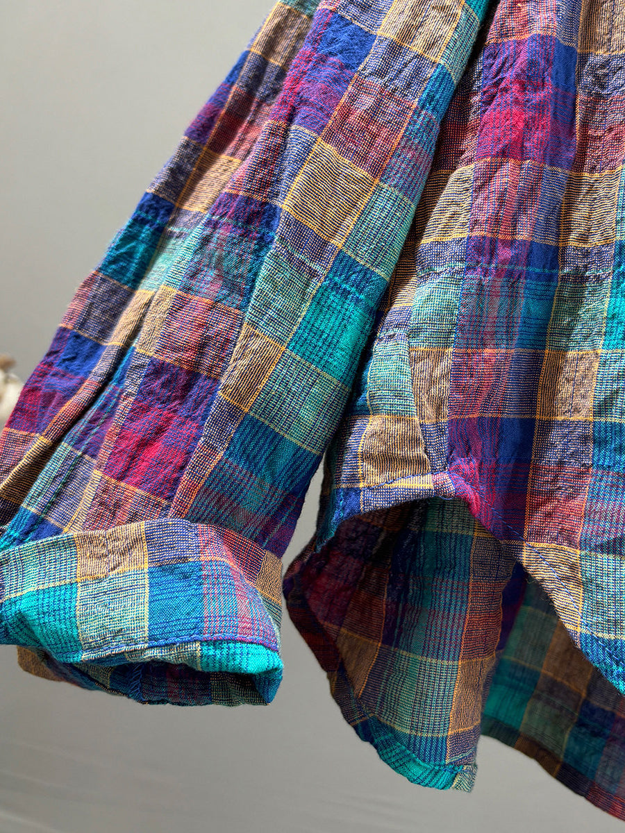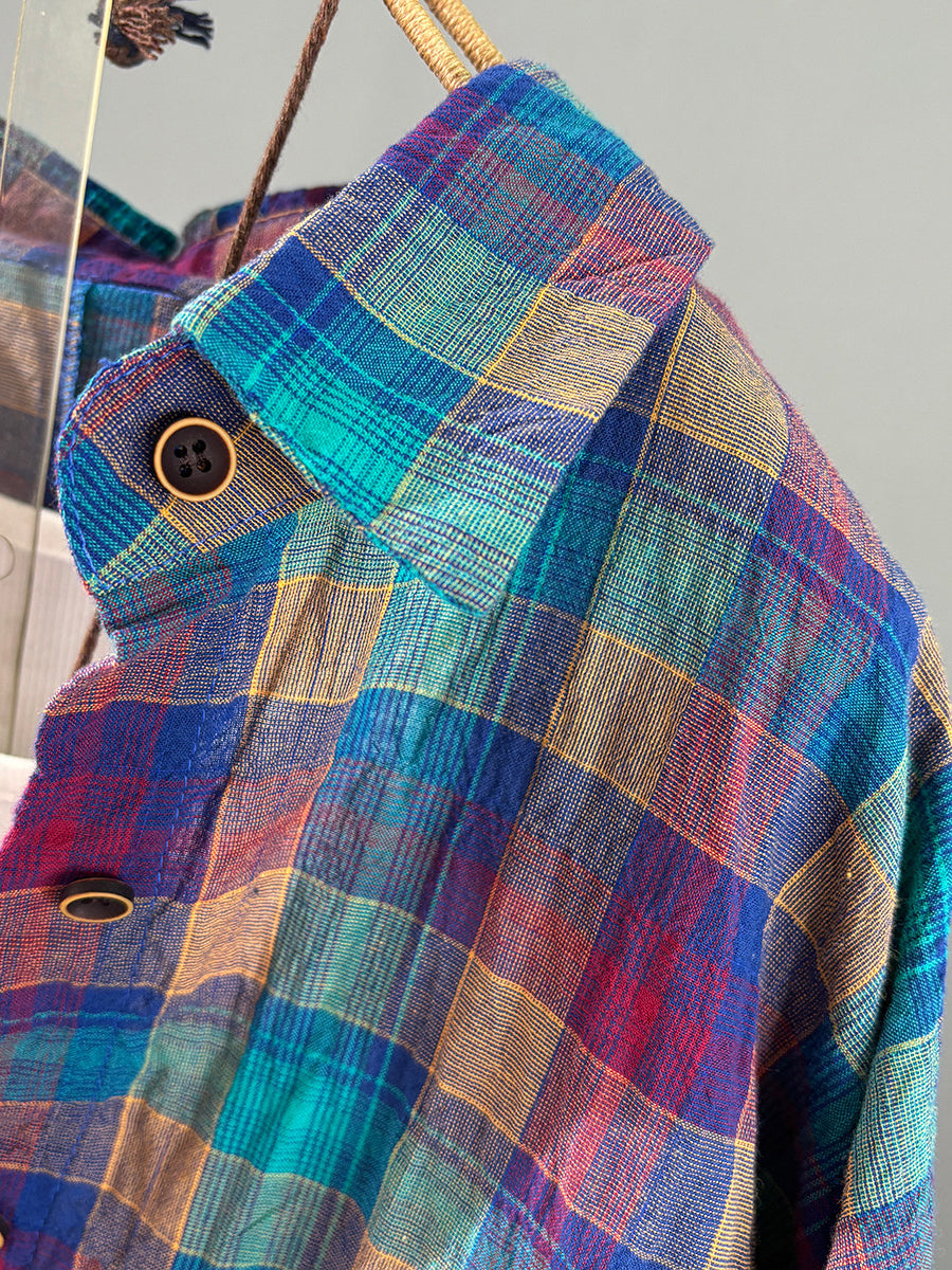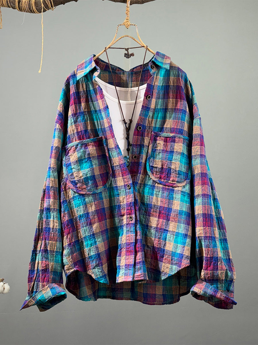 Women Artsy Spring Colorful Plaid Cotton Shirt