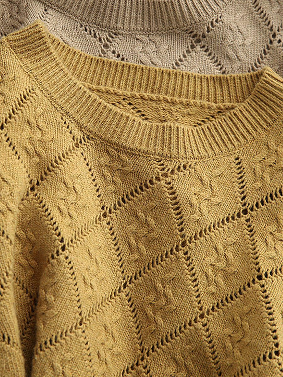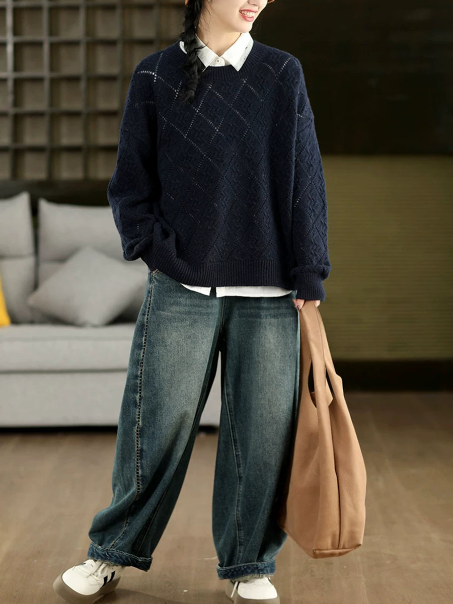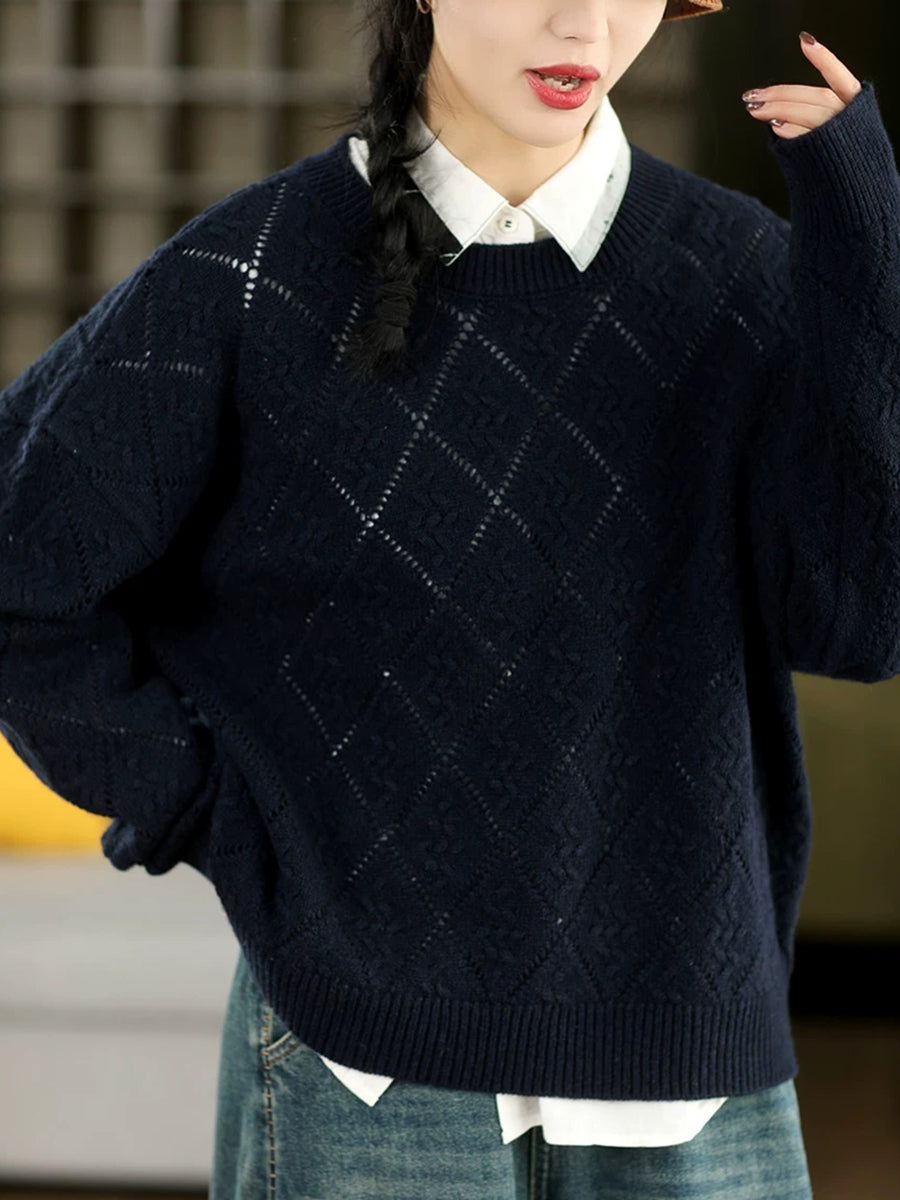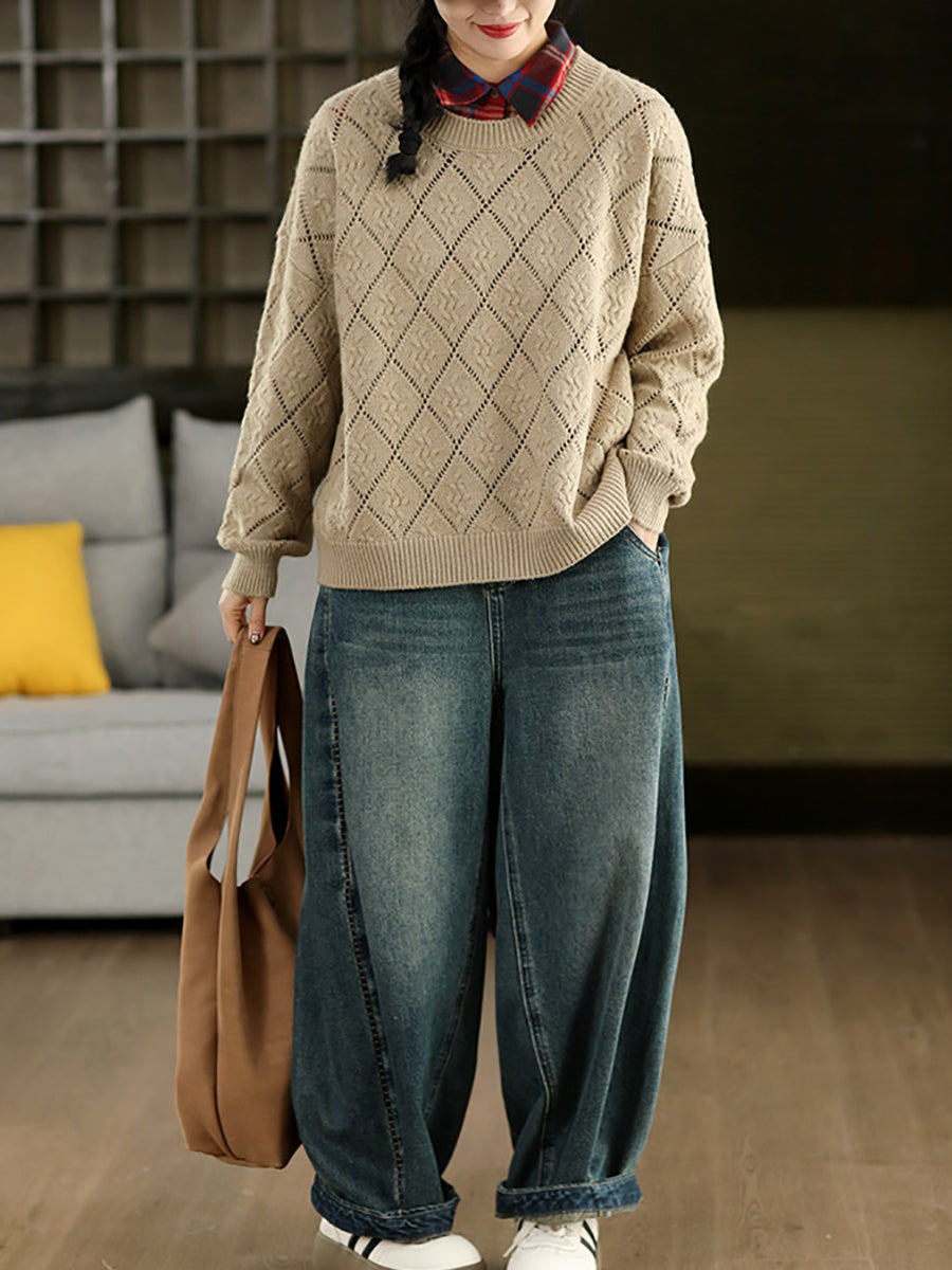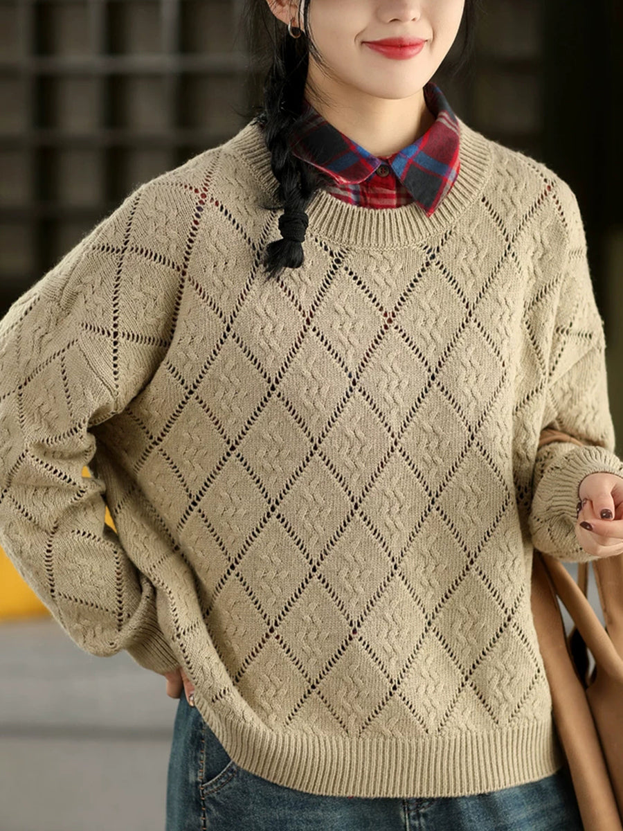Women Artsy Spring Rhomboids O-Neck Sweater