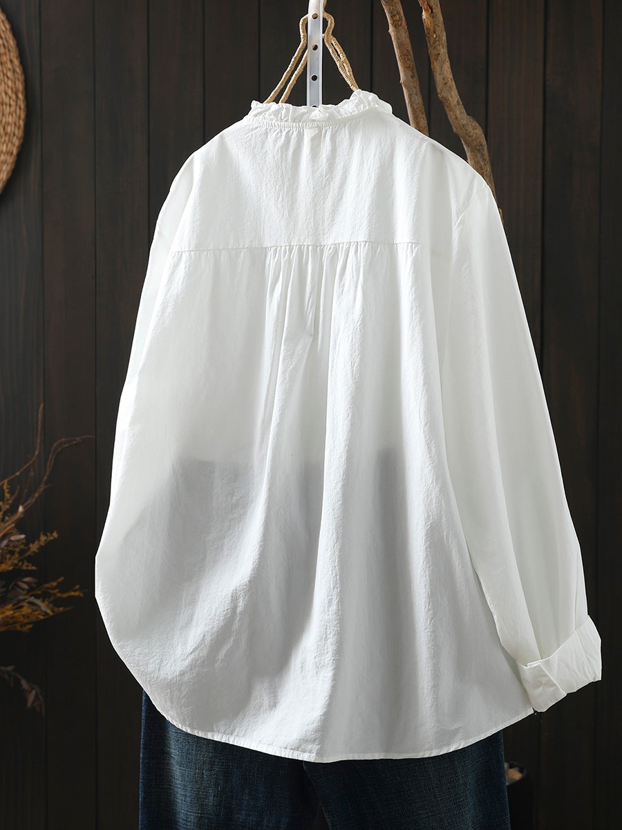 Women Artsy Spring Stand Collar 100%Cotton Shirt