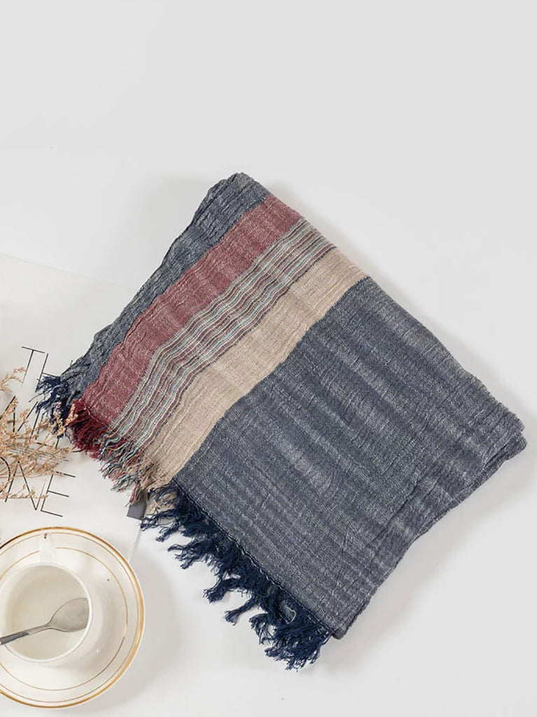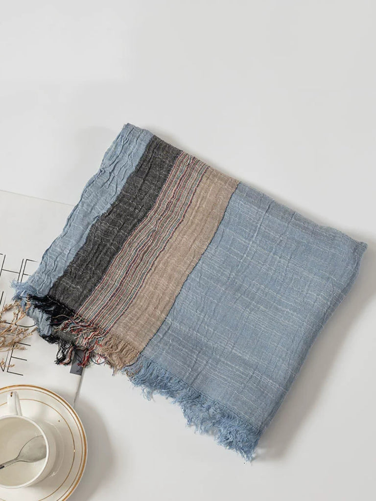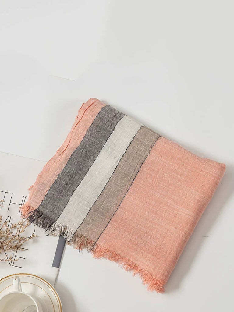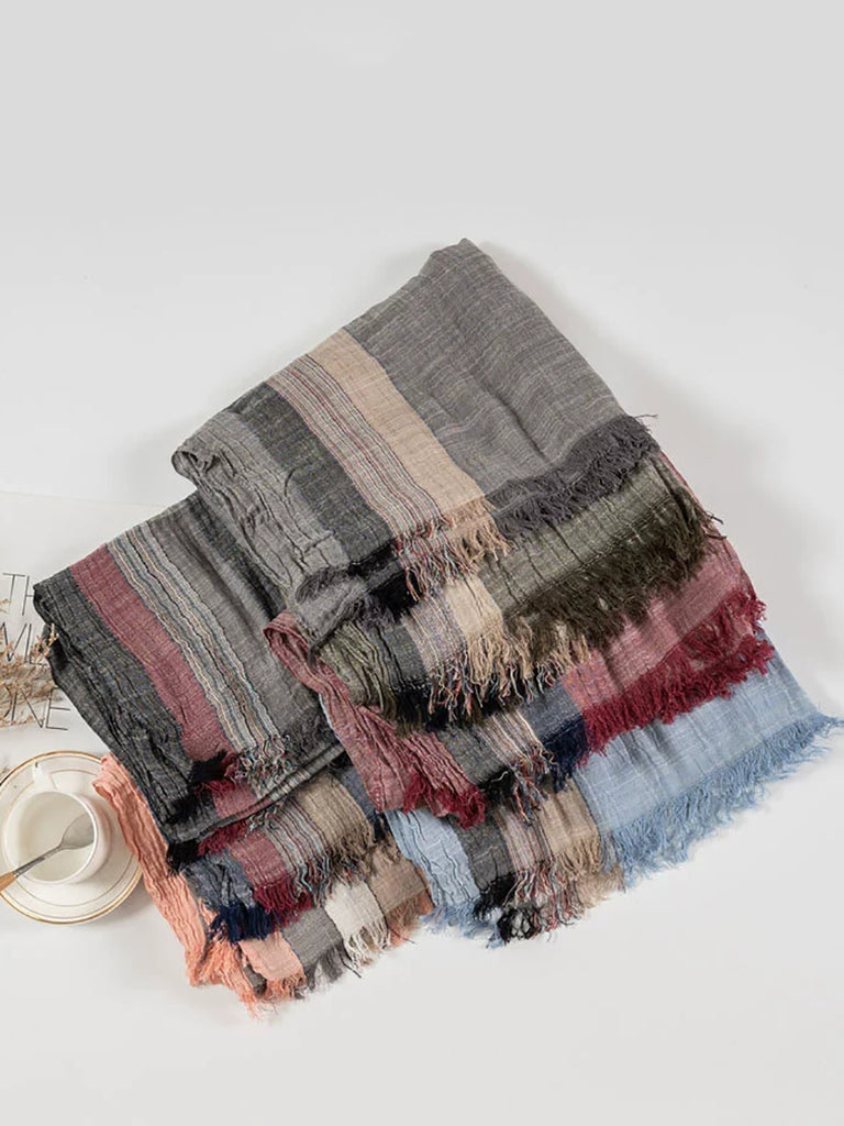 Women Artsy Winter Coloeblock Cotton Shawl Scarf