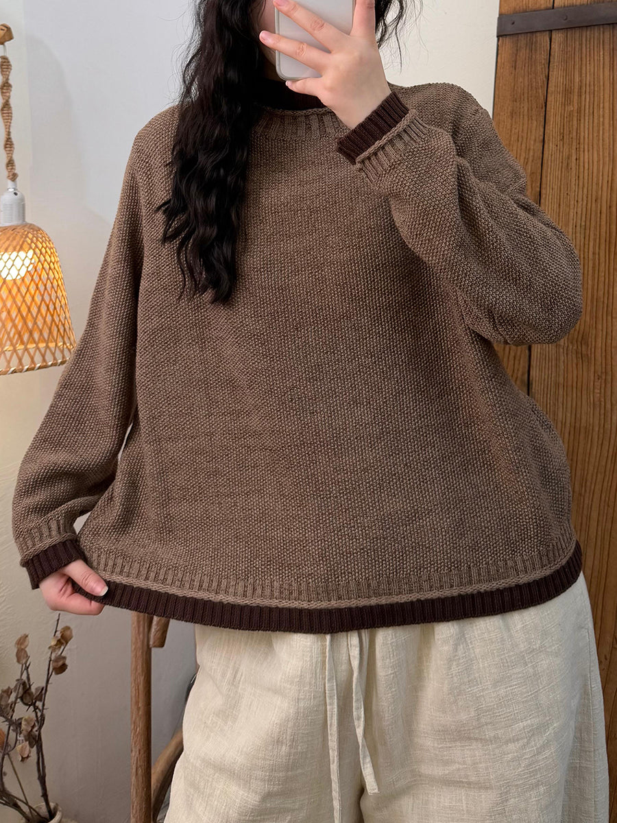 Women Autumn Artsy Colorblock Turtleneck Knitted Sweater