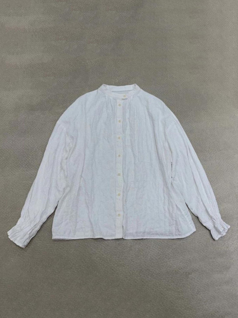 Women Autumn Artsy Plaid Stand Collar 100%Cotton Shirt