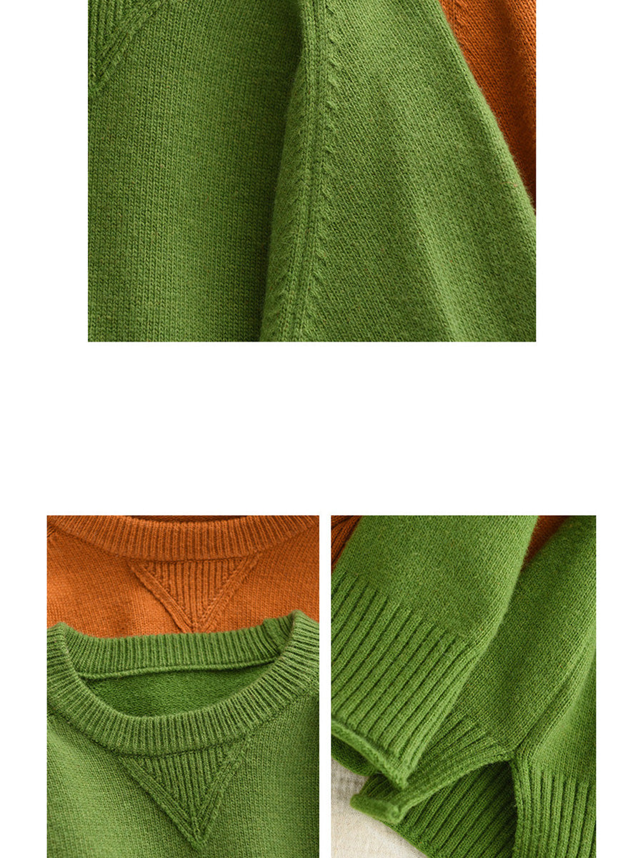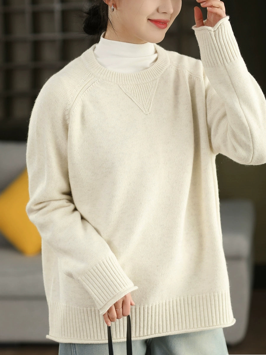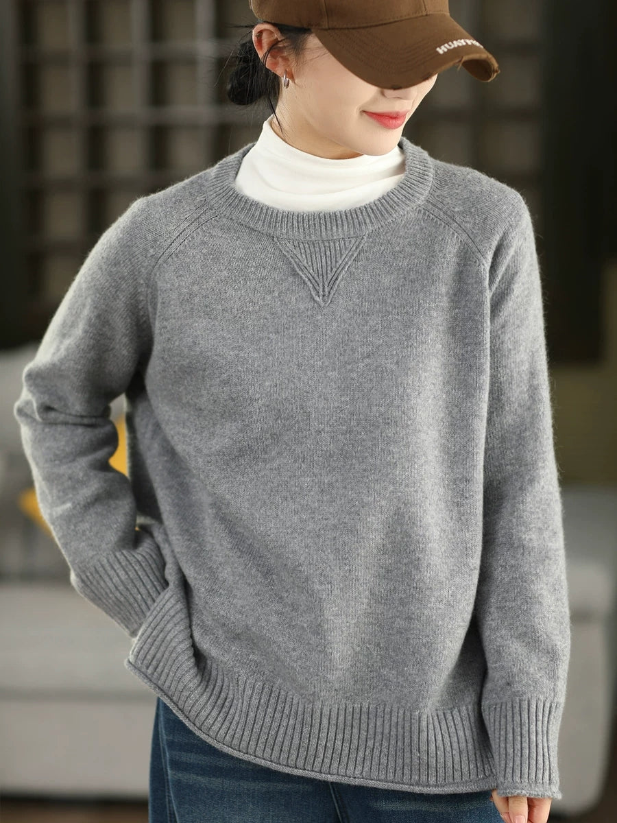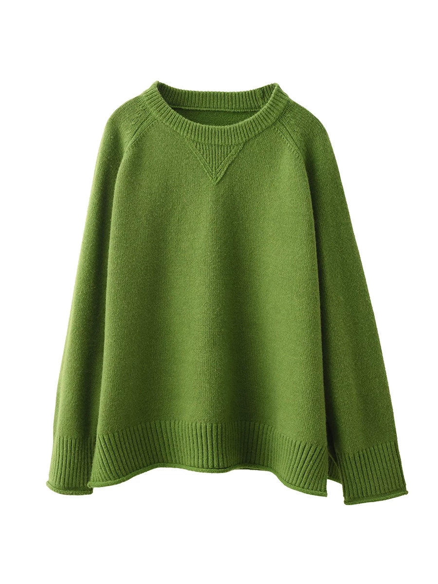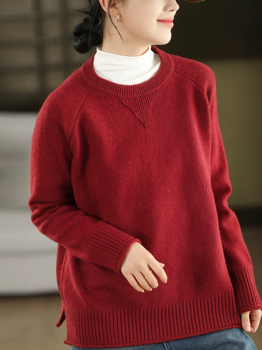 Women Autumn Artsy Pure Color Knitted O-Neck Sweater