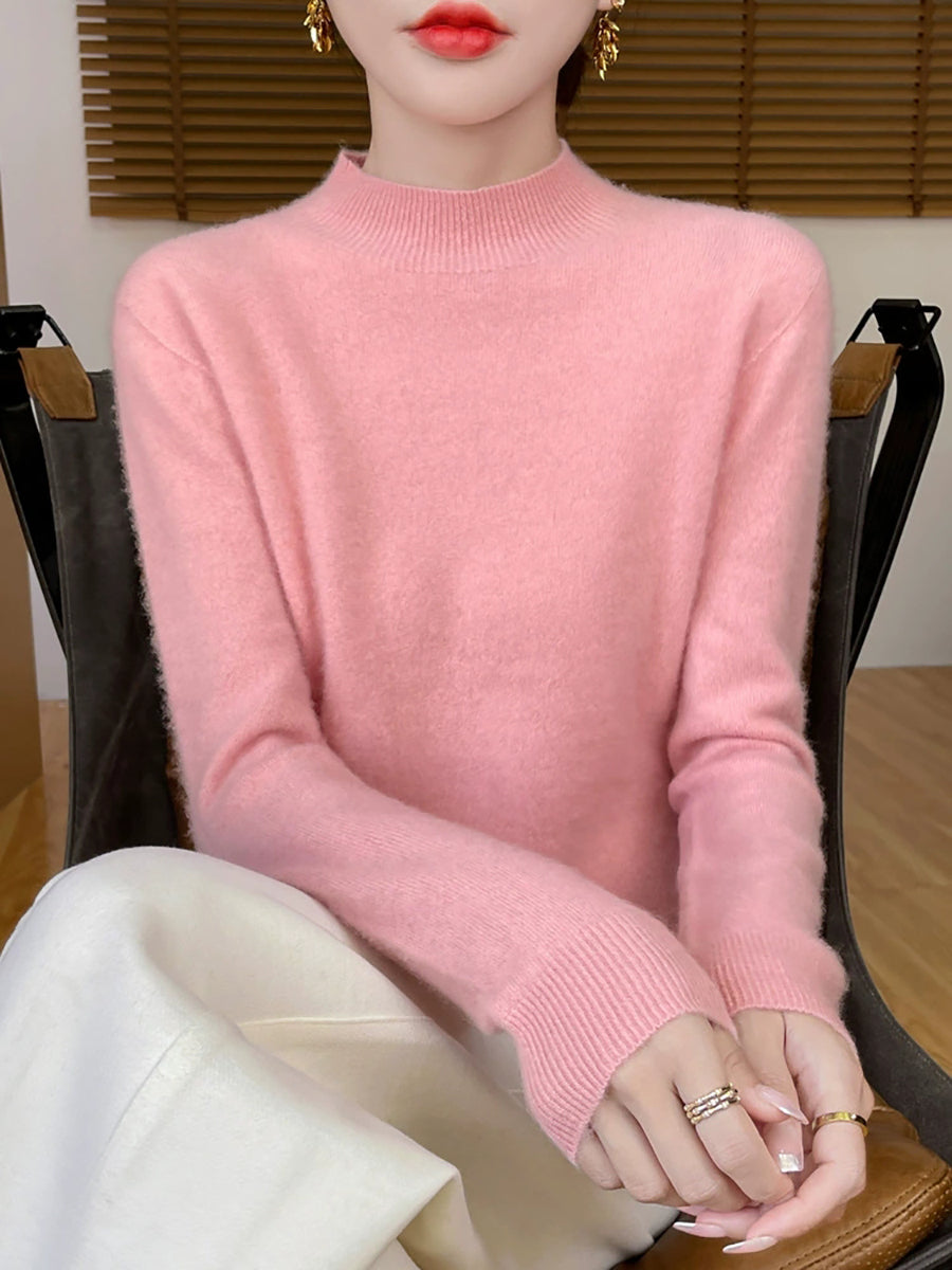 Women Autumn Casual Pure Color Half-Turtleneck Sweater