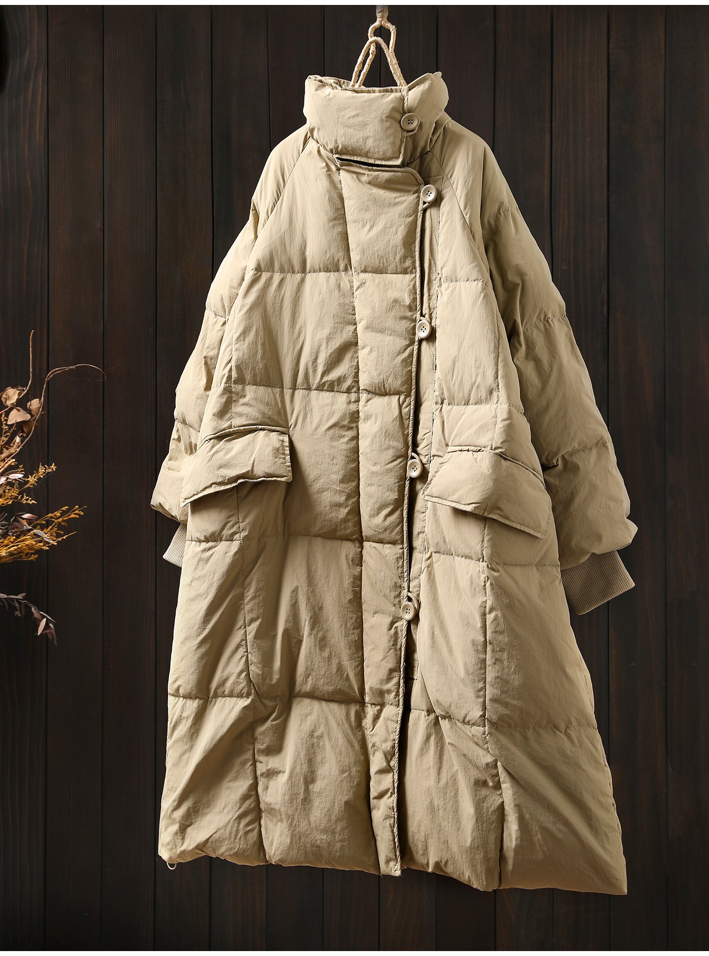 Women Autumn Casual Pure Color Stand Collar Down Coat
