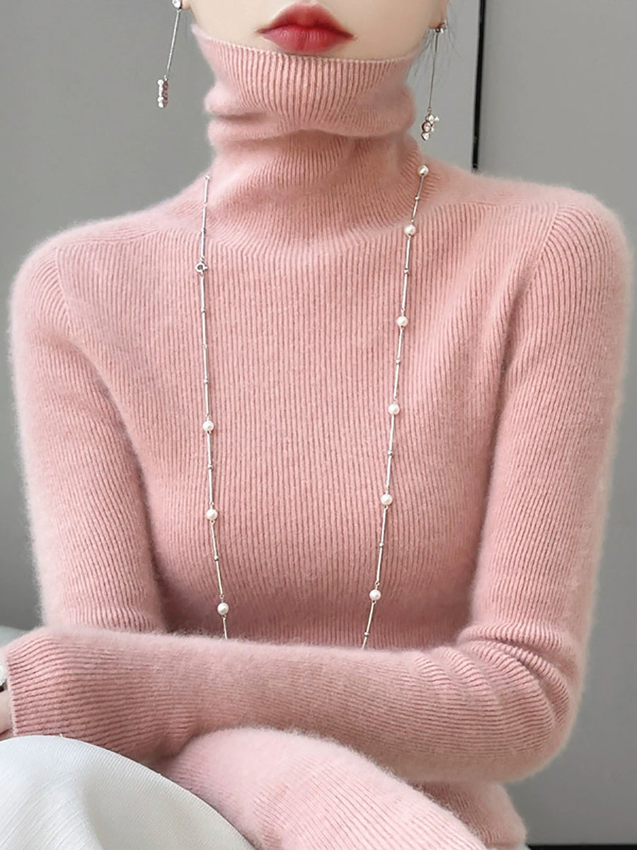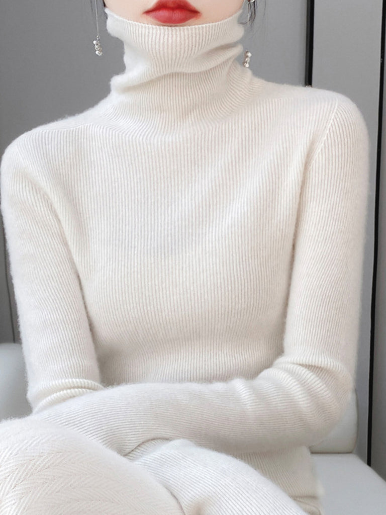 Women Autumn Casual Pure Color Turtleneck Sweater