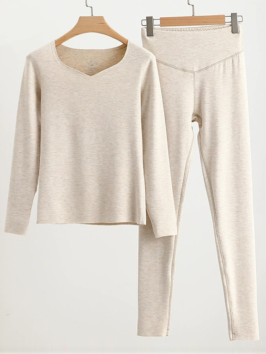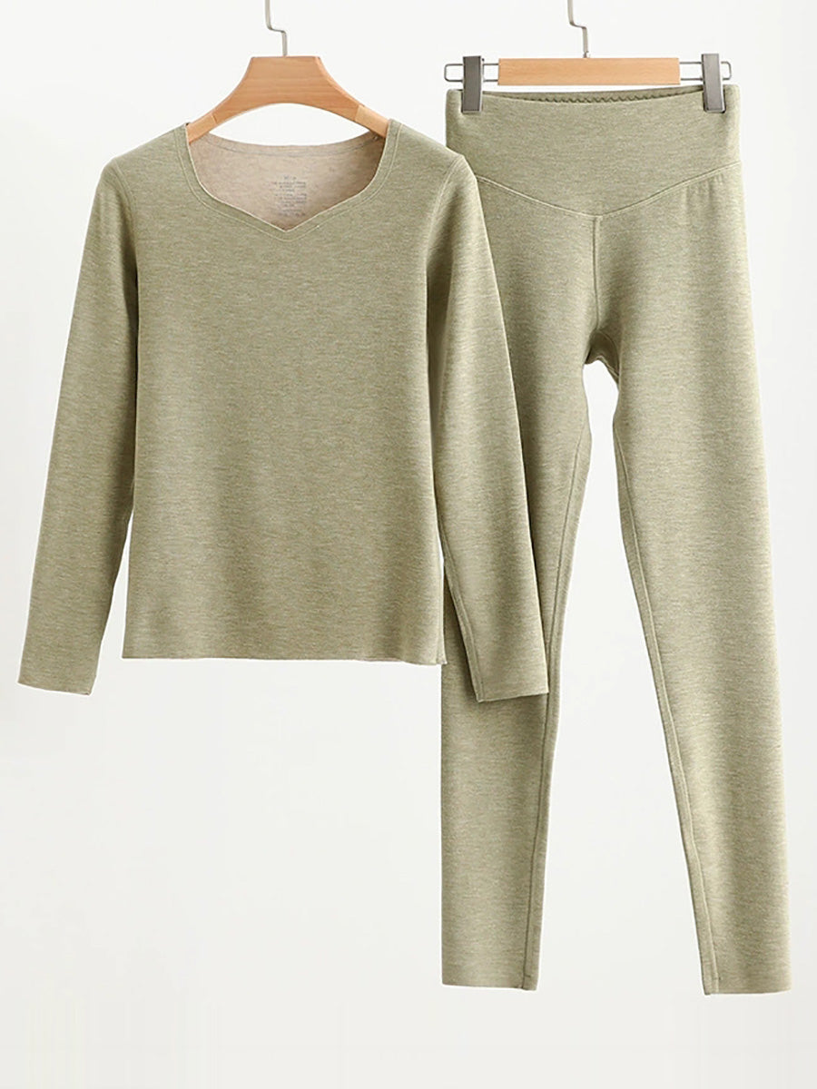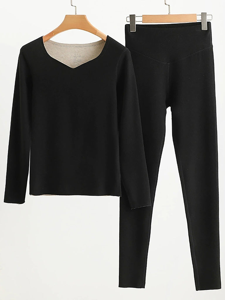 Women Autumn Casual Pure Color V-Neck Base Suits