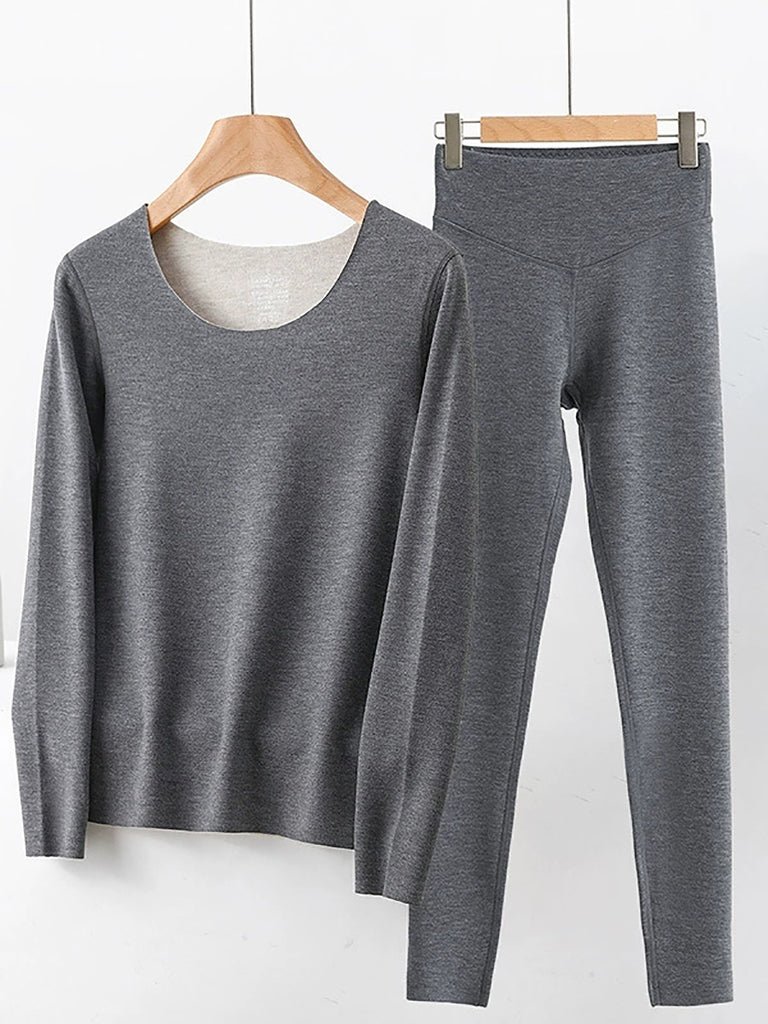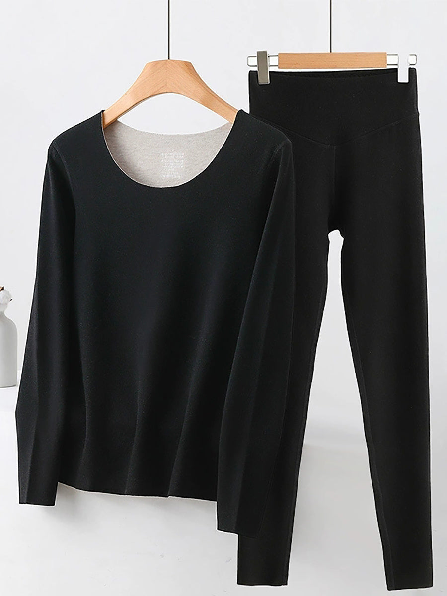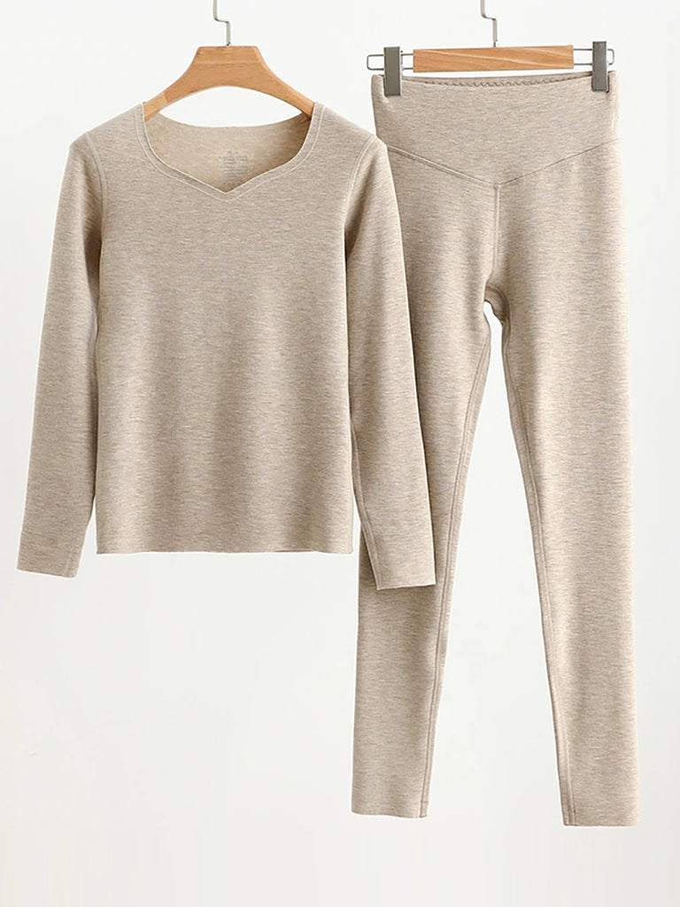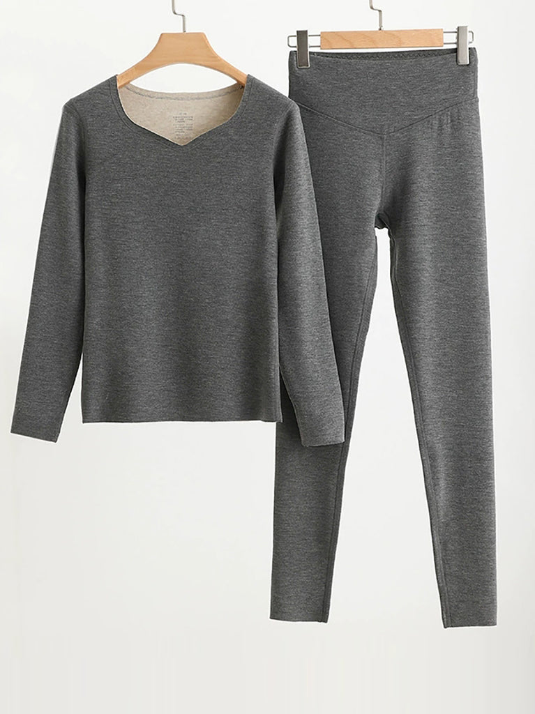 Women Autumn Casual Pure Color V-Neck Base Suits