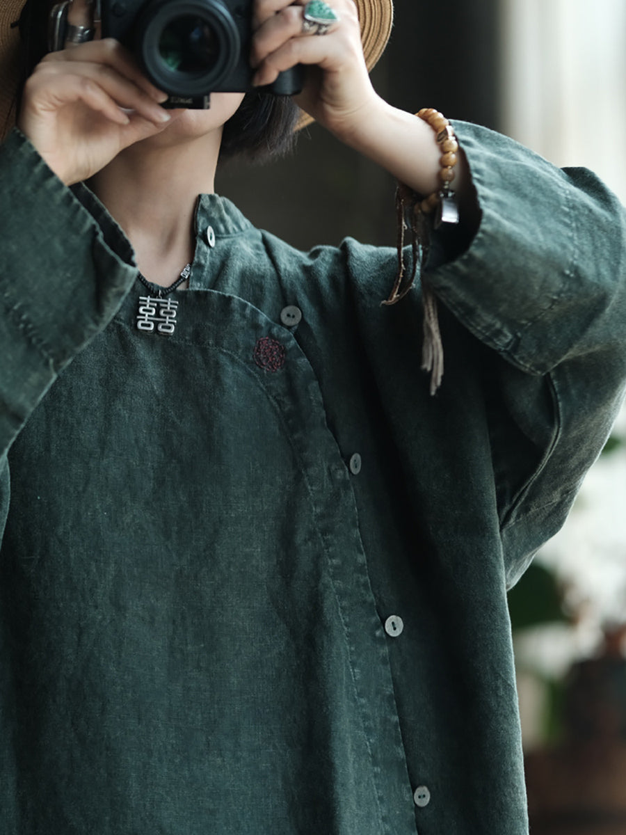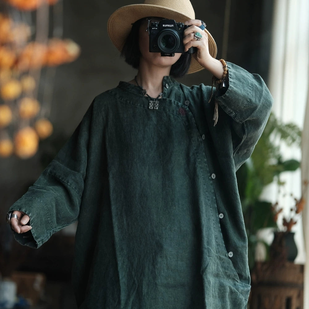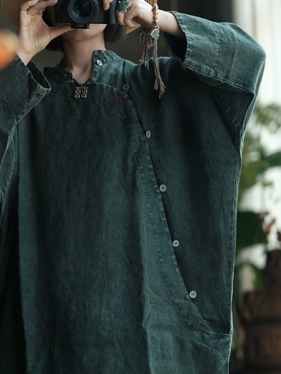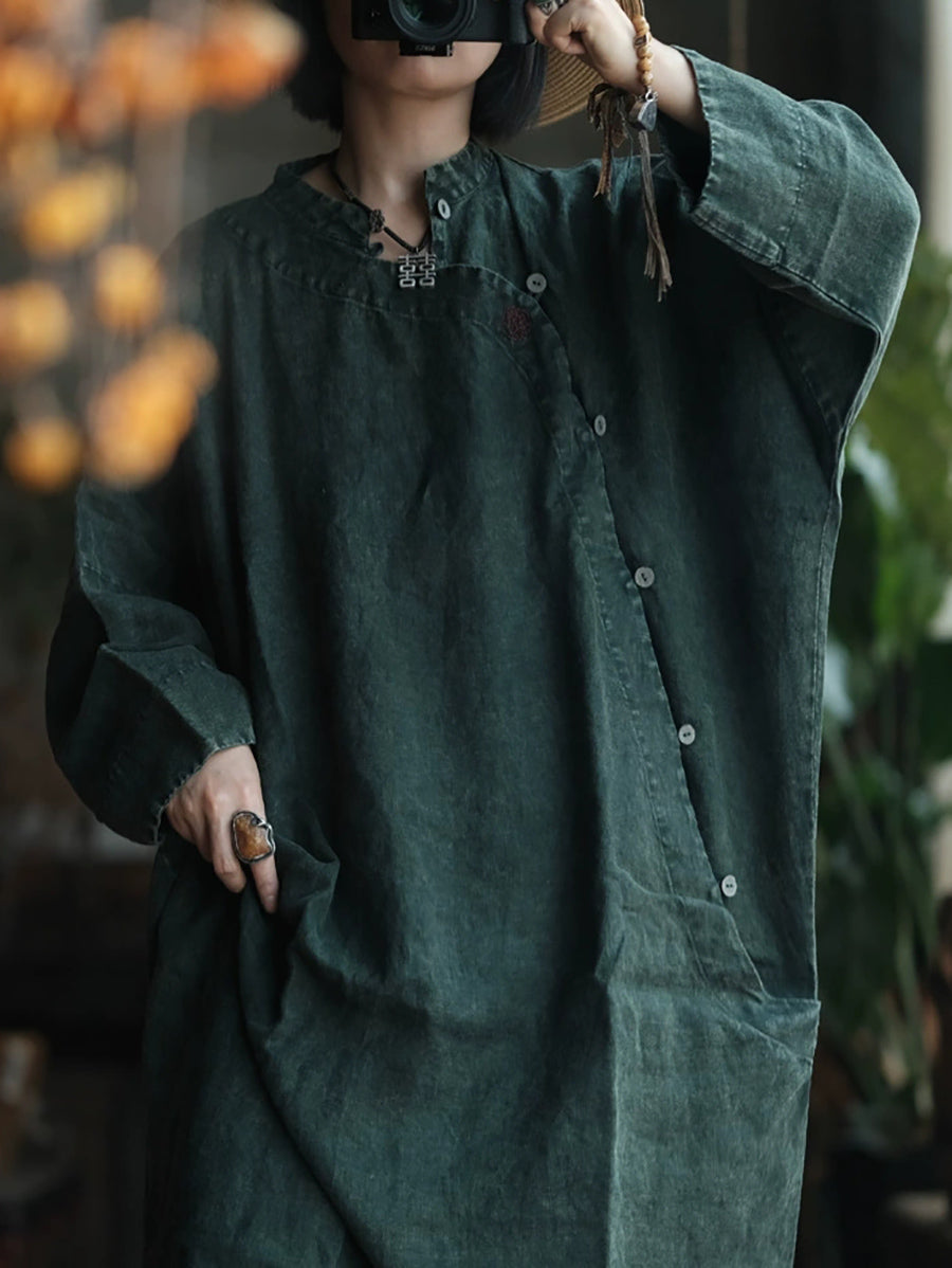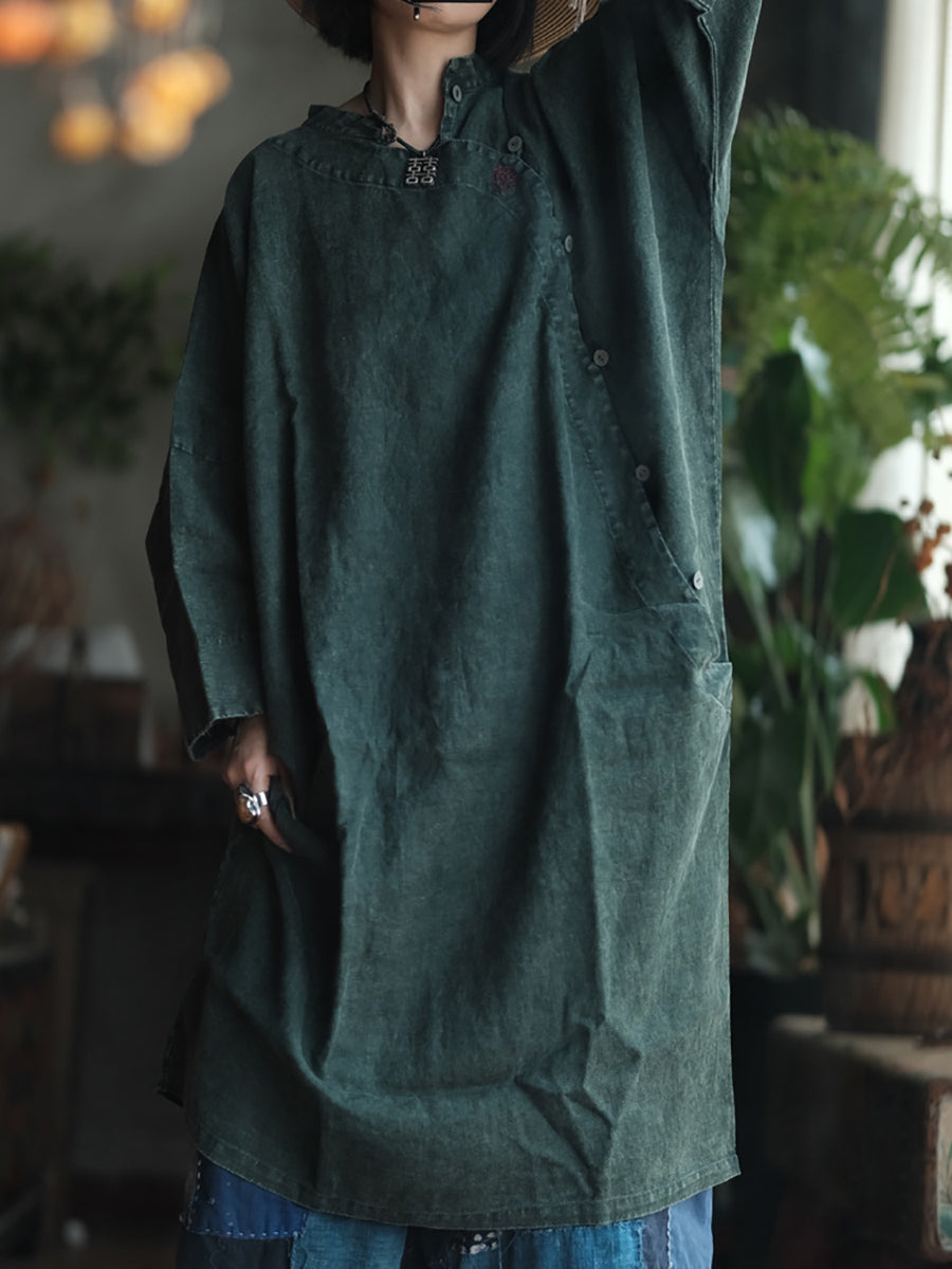 Women Spring Ethnic Pure Color Linen Loose Dress