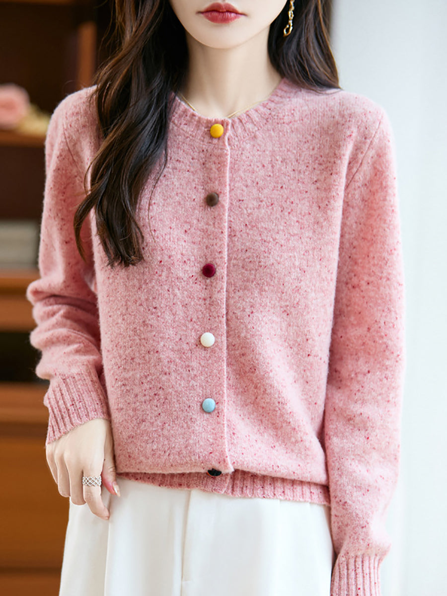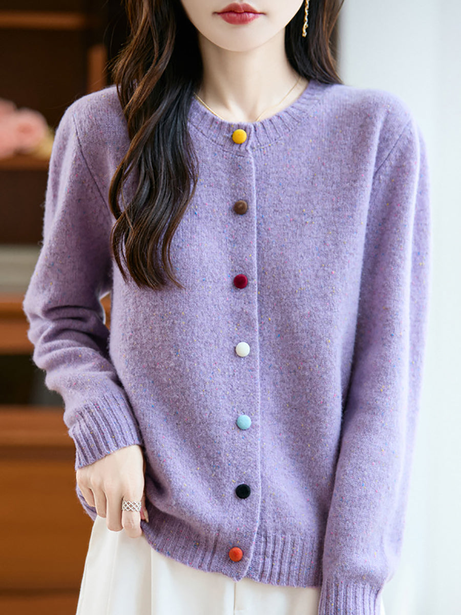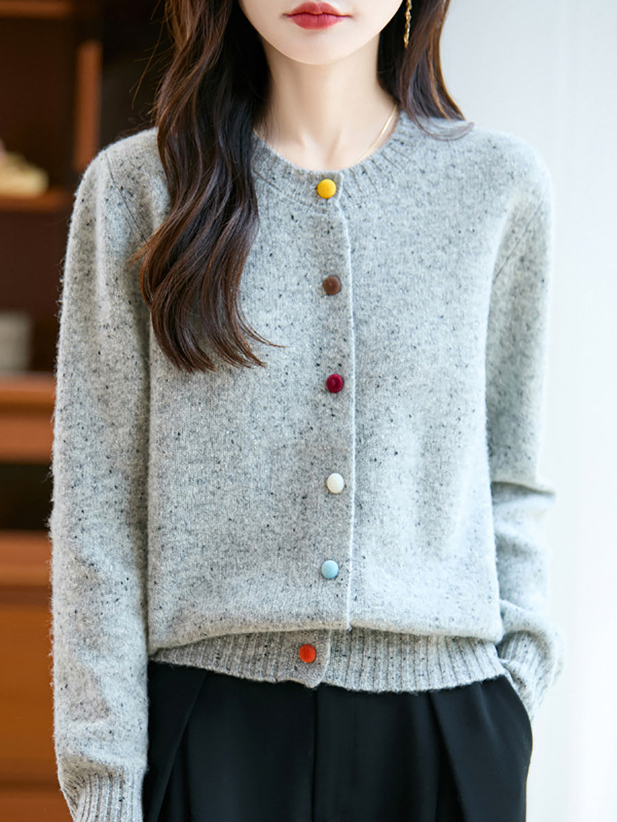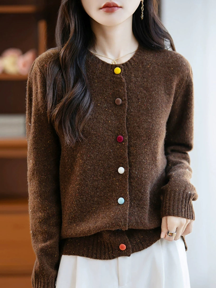 Women Autumn Pure Color Wool O-Neck Cardigan