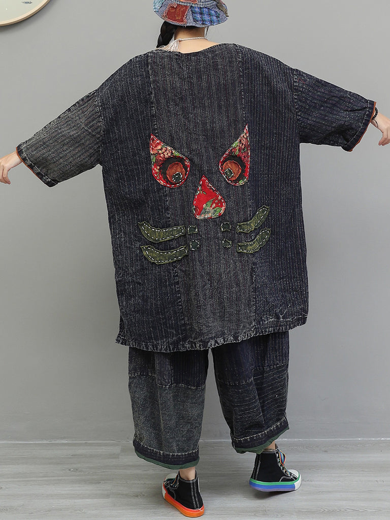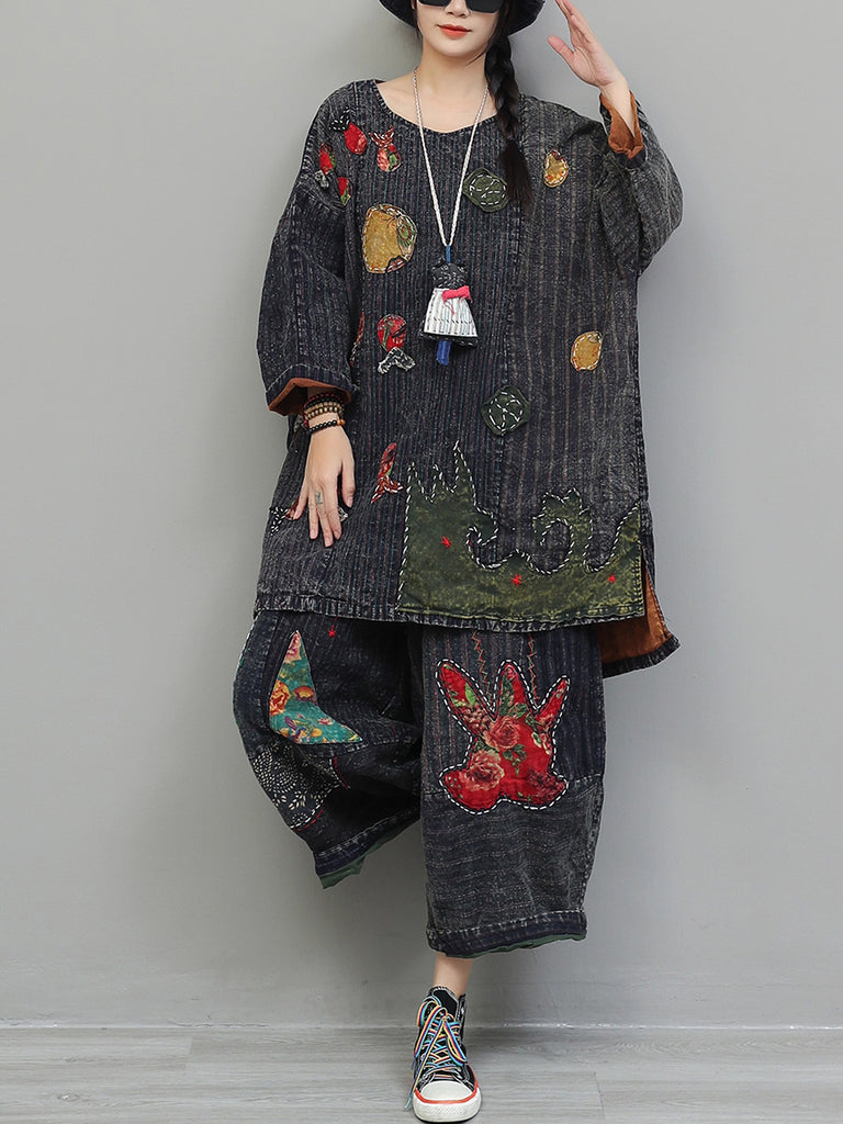 Women Autumn Retro Patchwork Cotton Suits