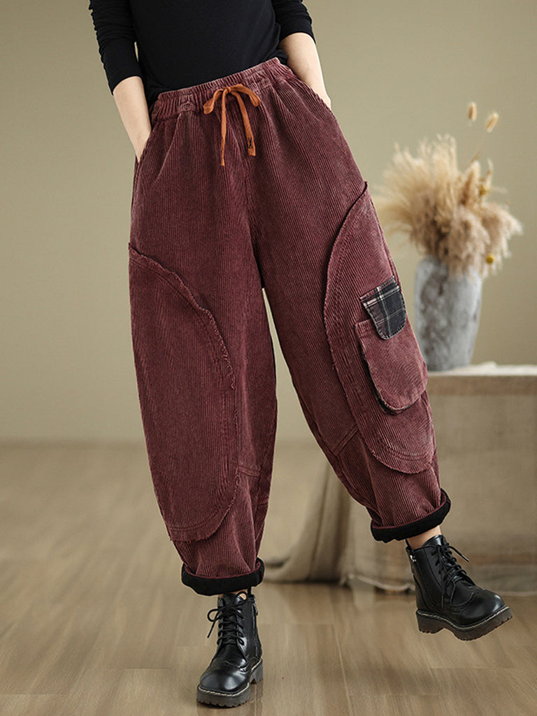Women Autumn Retro Pure Color Corduroy Harem Pants