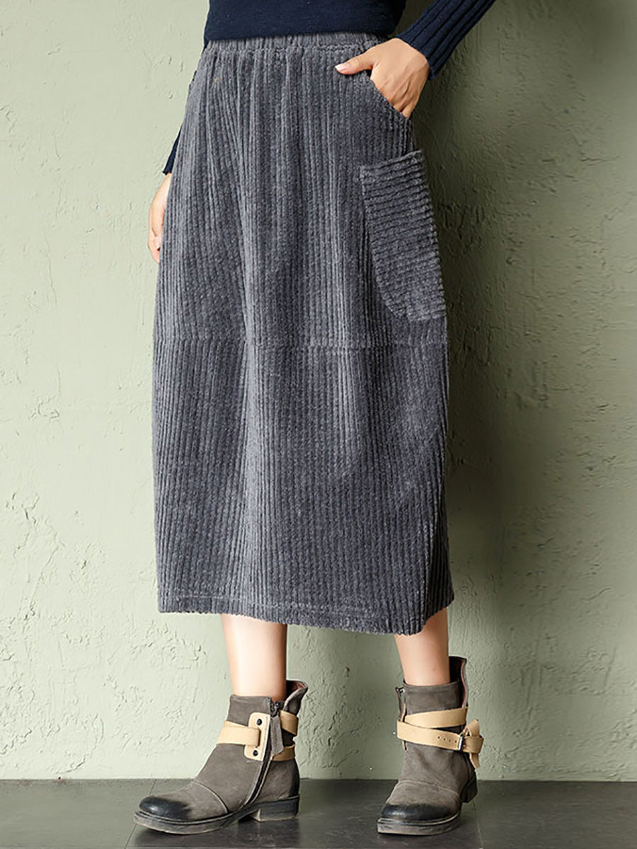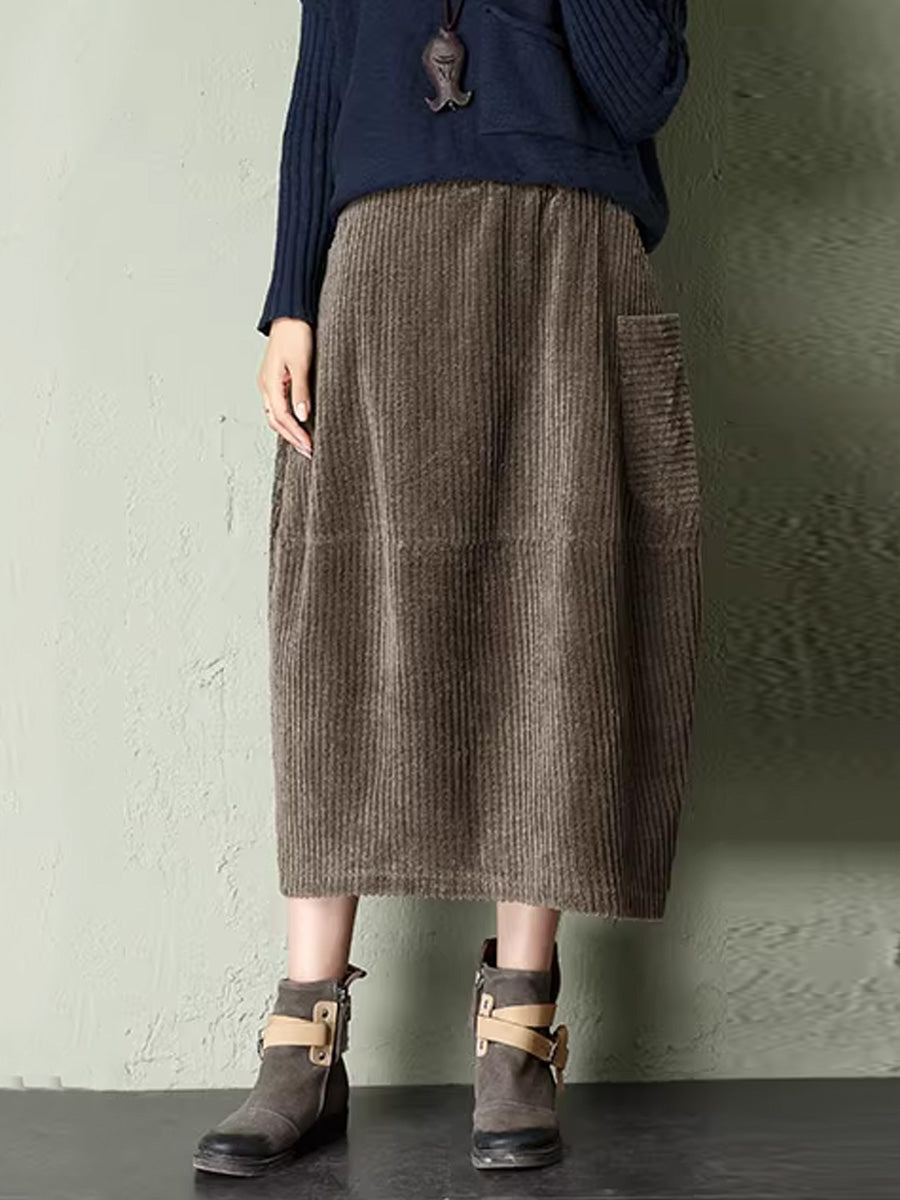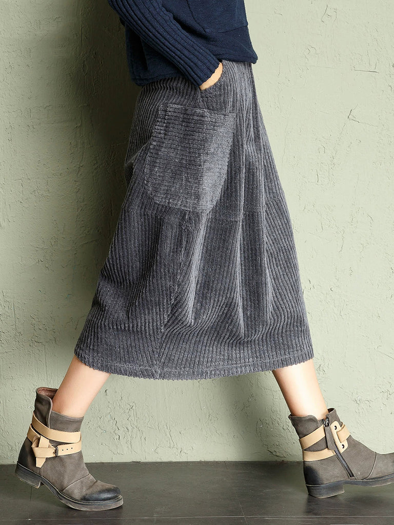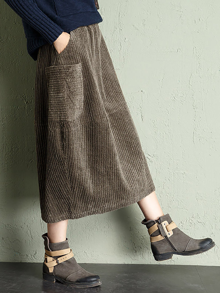Women Autumn Retro Pure Color Corduroy Skirt