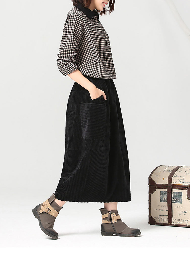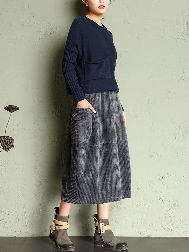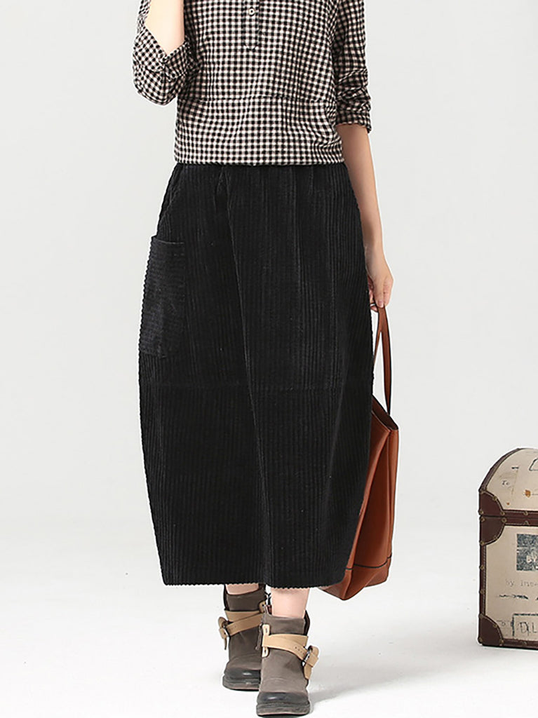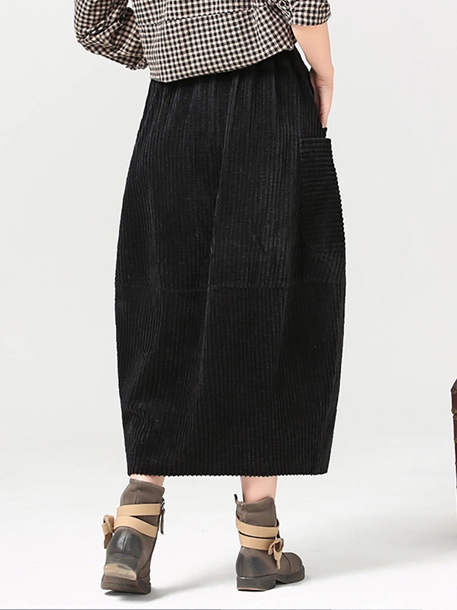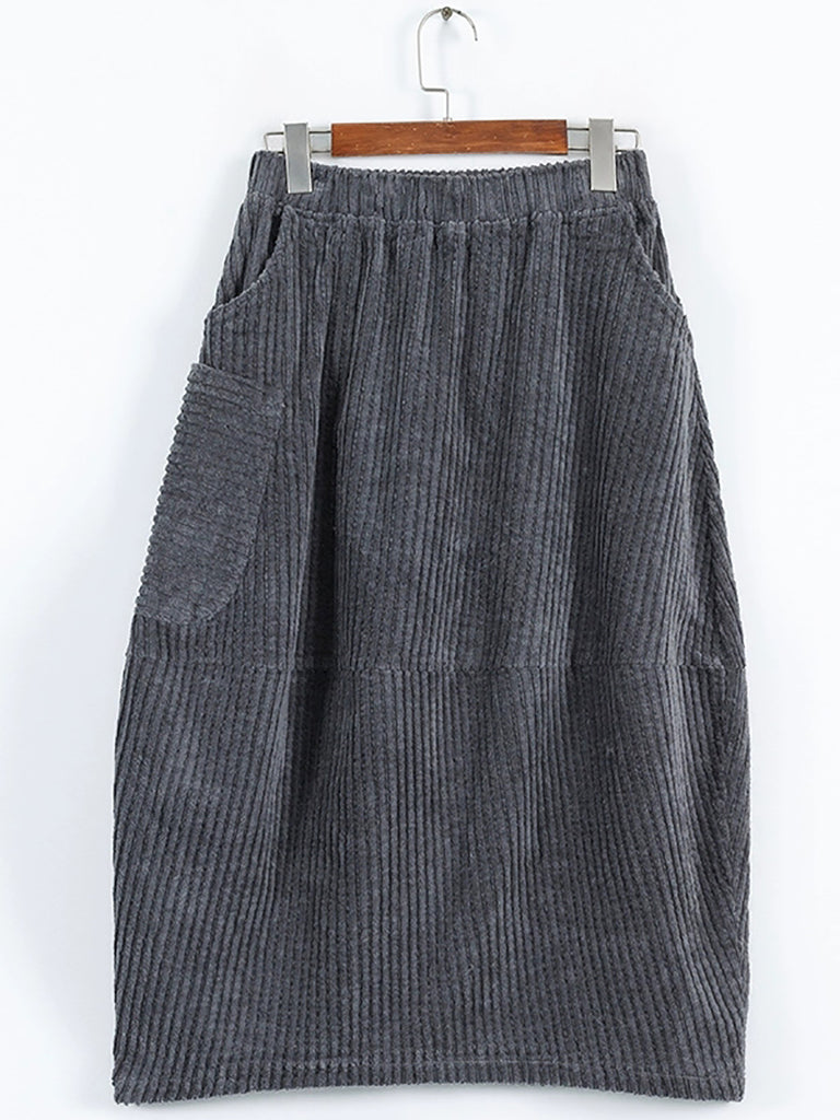 Women Autumn Retro Pure Color Corduroy Skirt