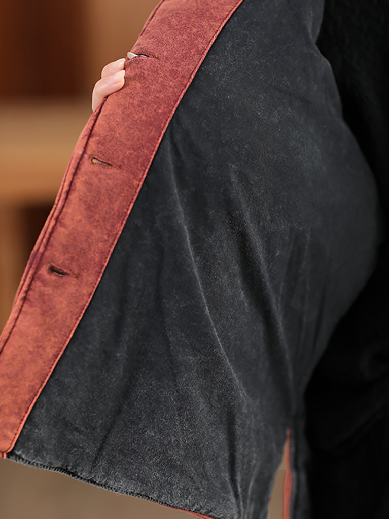 Women Autumn Retro Pure Color O-Neck Padded Jacket