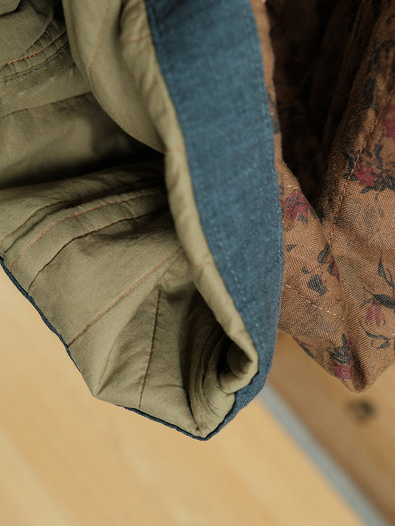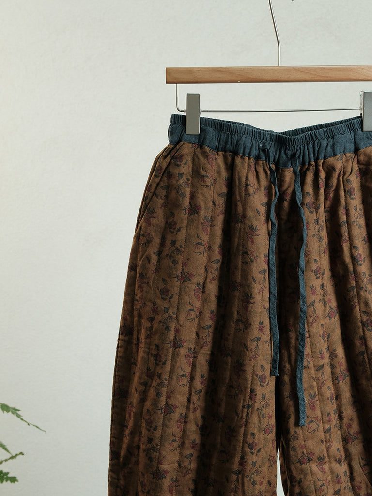 Women Autumn Vintage Floral Linen Harem Padded Pants