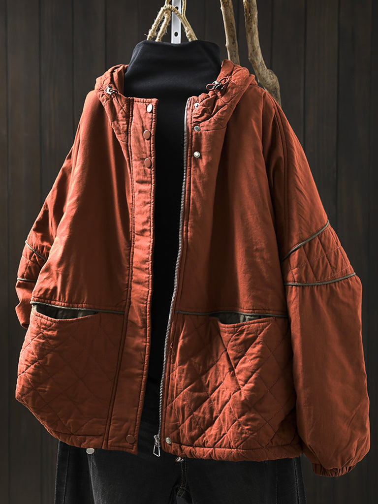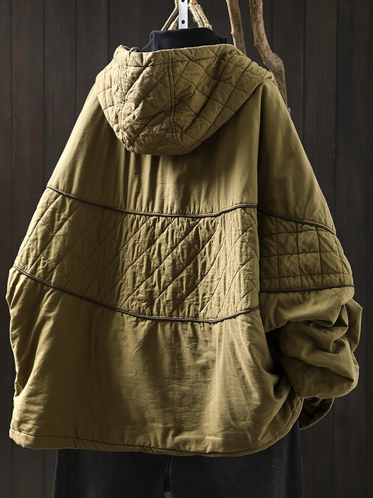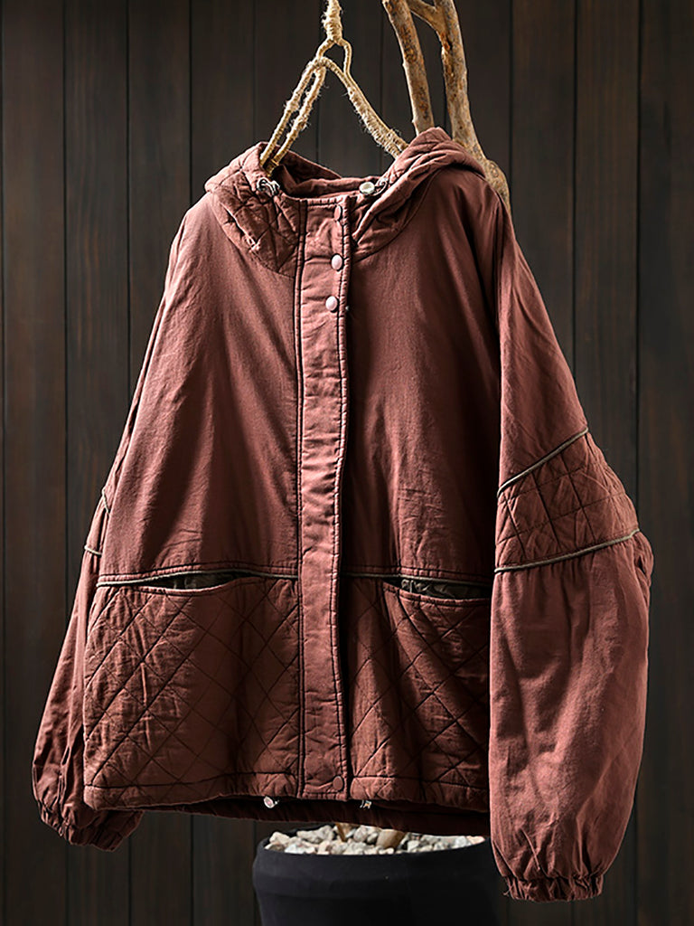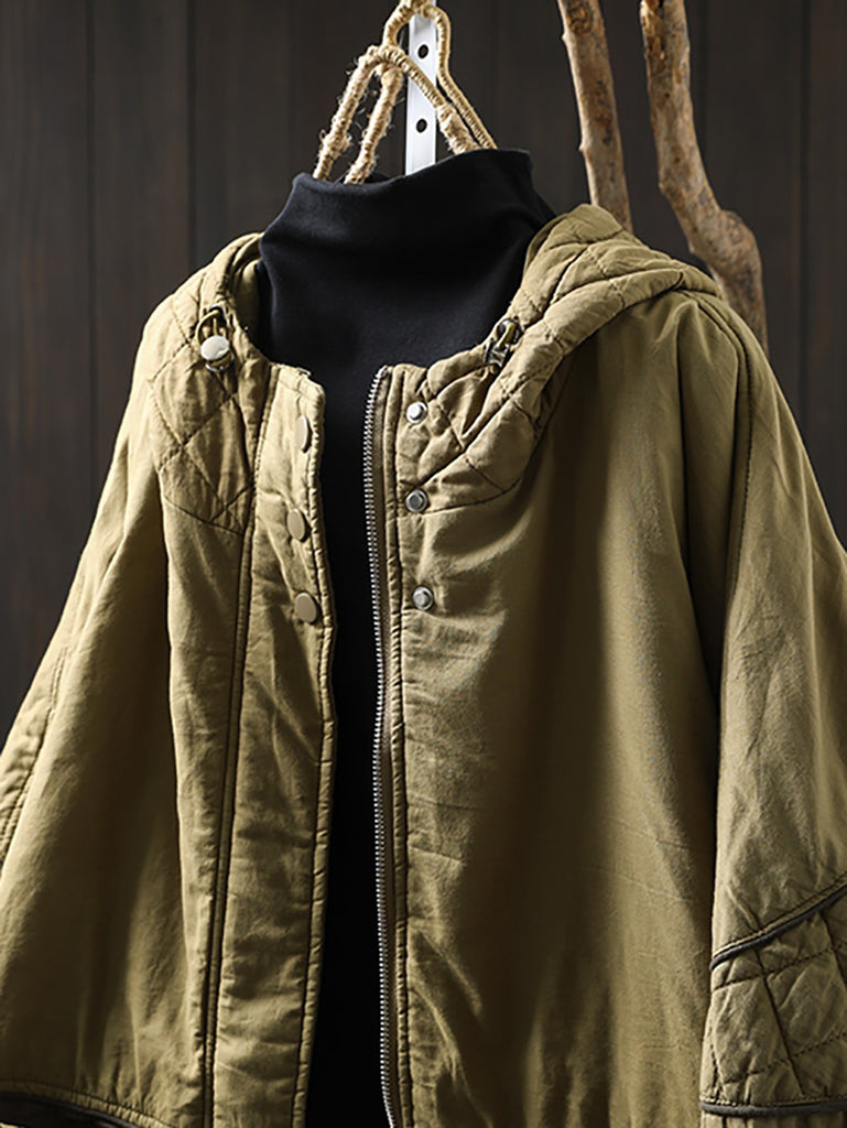 Women Autumn Vintage Pure Color Spliced Hooded Jacket
