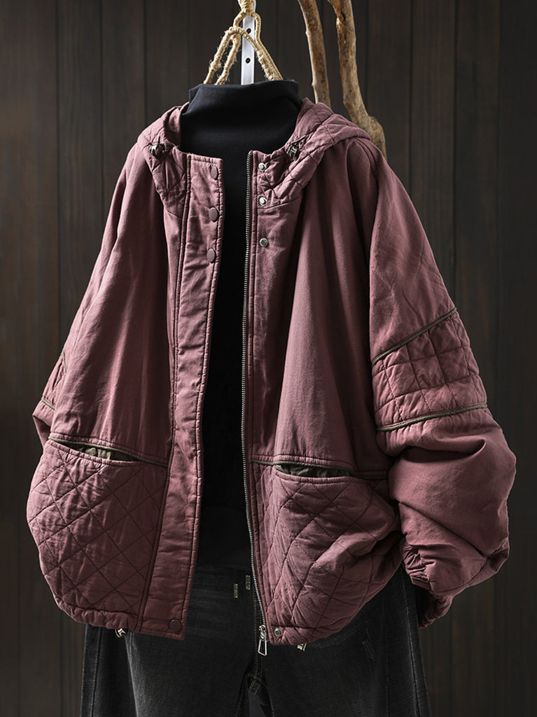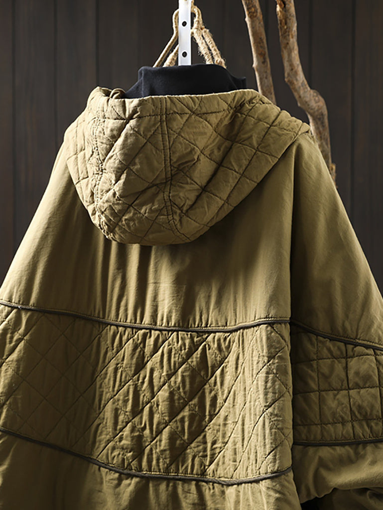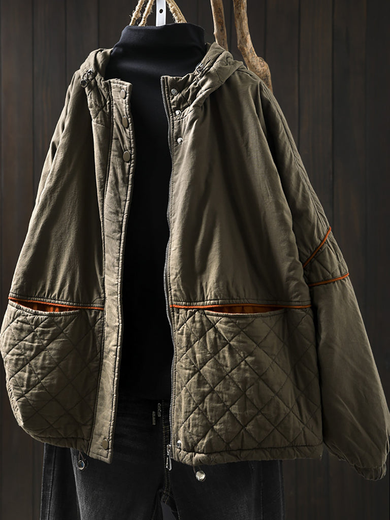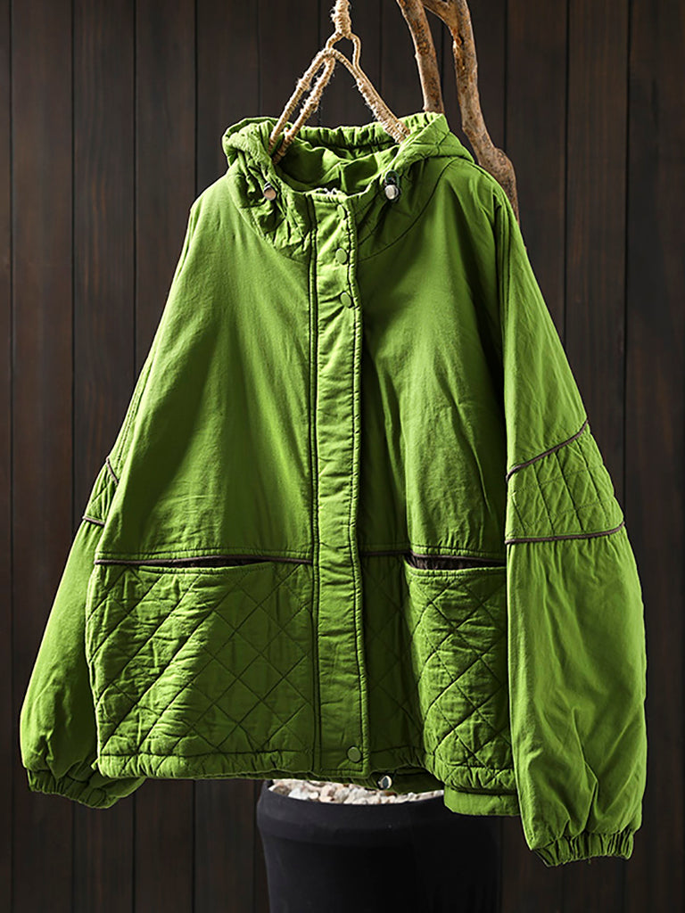 Women Autumn Vintage Pure Color Spliced Hooded Jacket