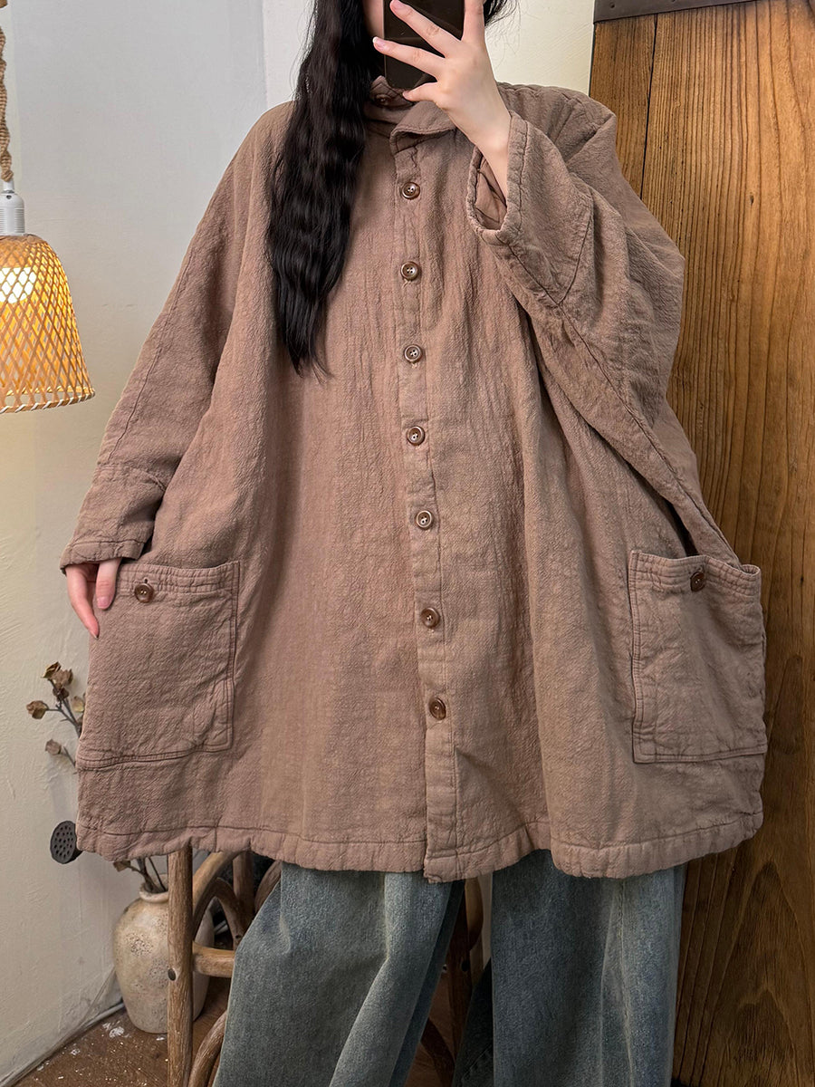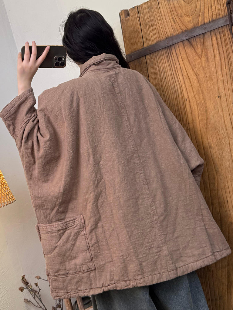 Women Autumn Vintage Pure Color Stand Collar Padded Coat