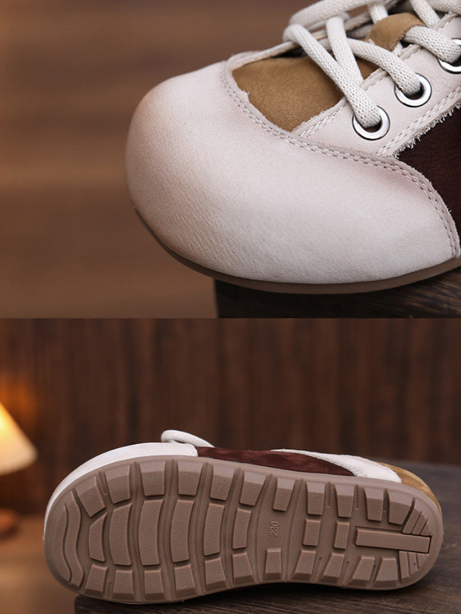 Women Casual Colorblock Genuine Leather Flat Shoes