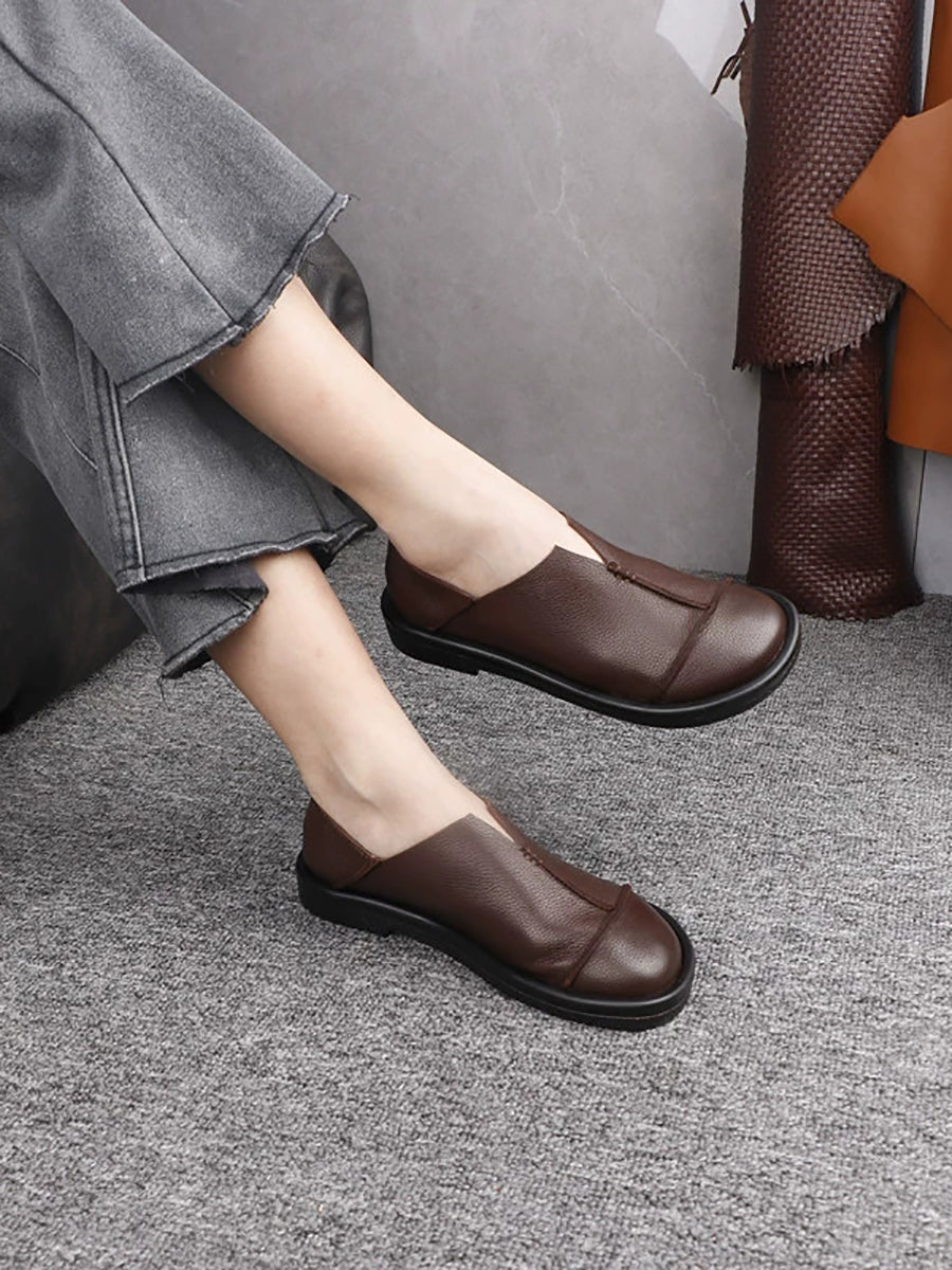 Women Casual Genuine Leather Spliced Low Heel Shoes