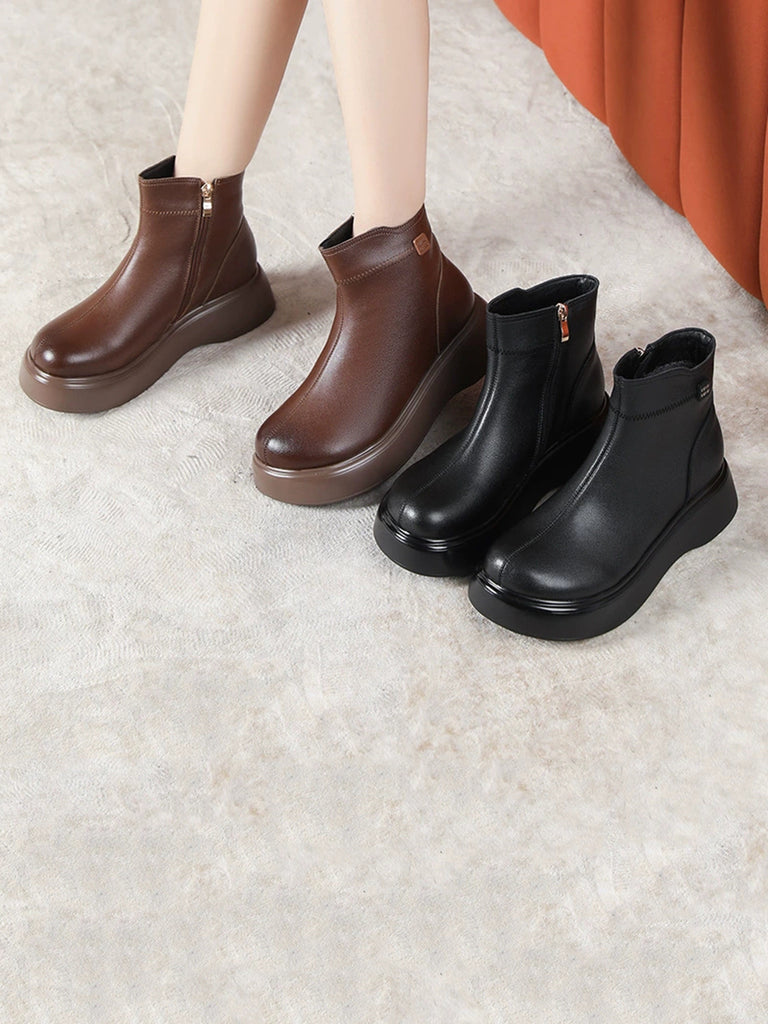 Women Casual Pure Color Spliced Platform Ankle Boots