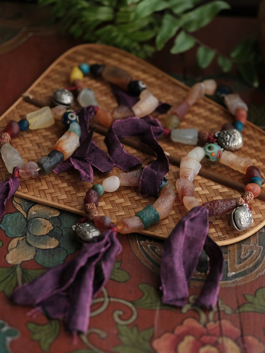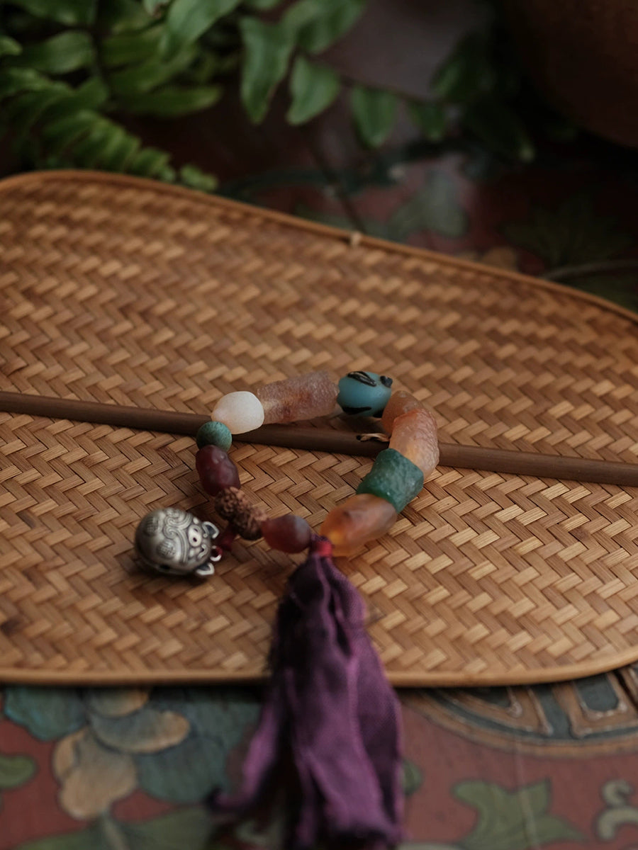 Women Ethnic Wooden Bead Handmade Tassel Bracelet