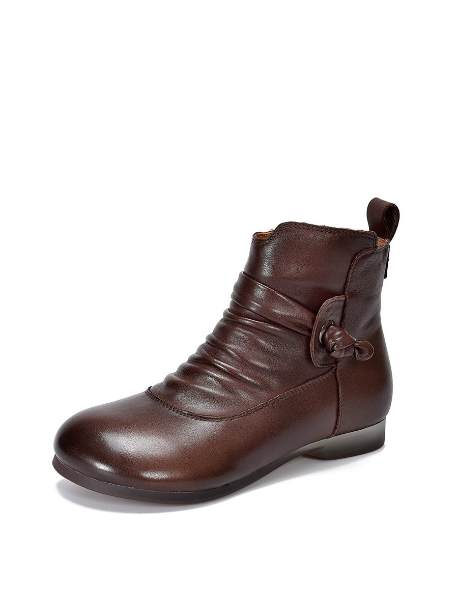 Women Genuine Leather Soft Low Heel Ankle Boots