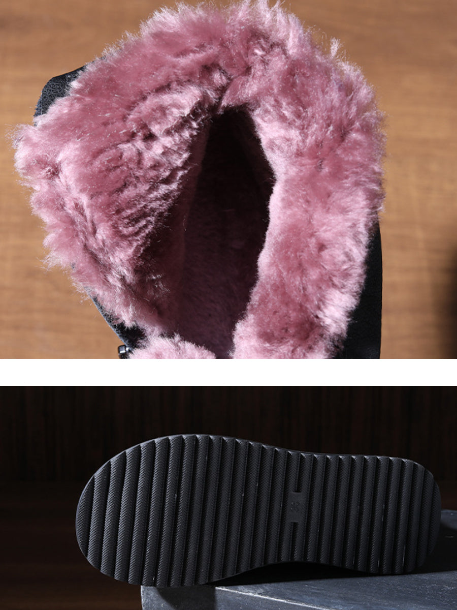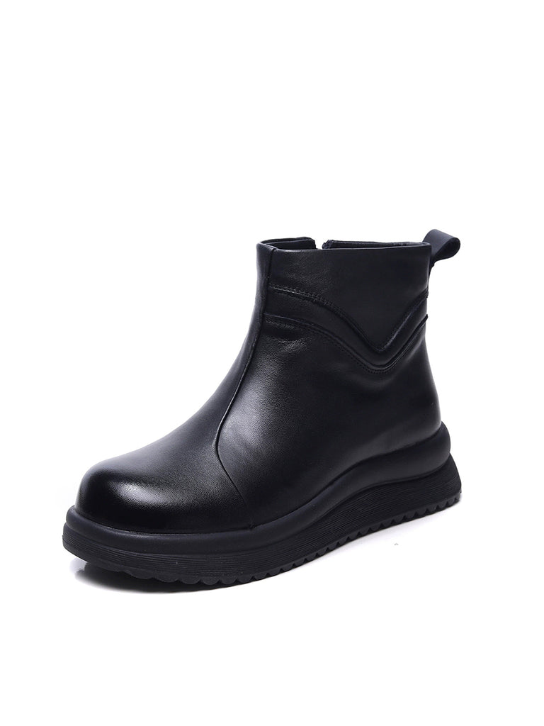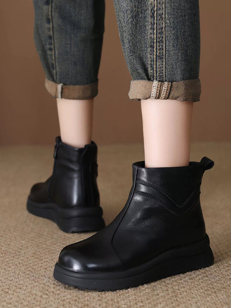 Women Genuine Leather Spliced Fleece-lined Ankle Boots