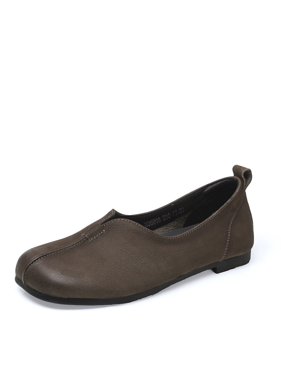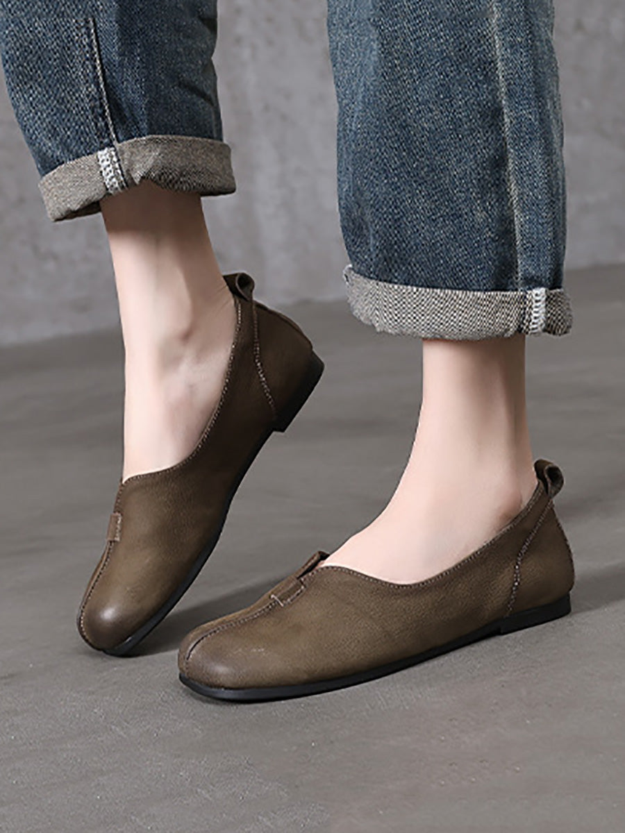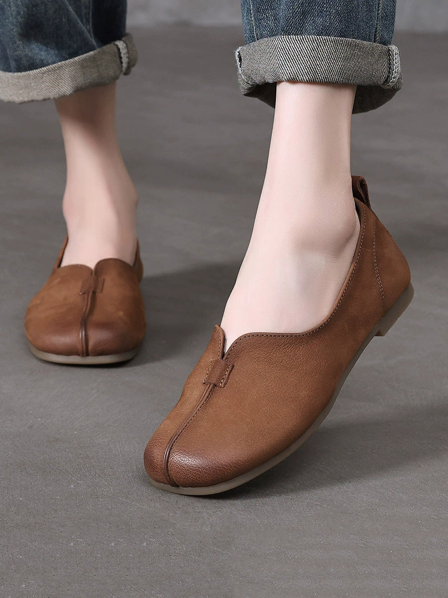 Women Retro Genuine Leather Spliced Soft Shoes
