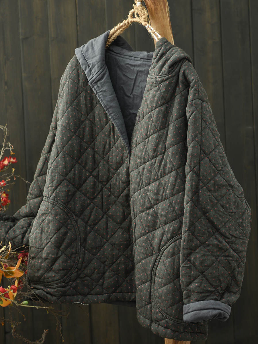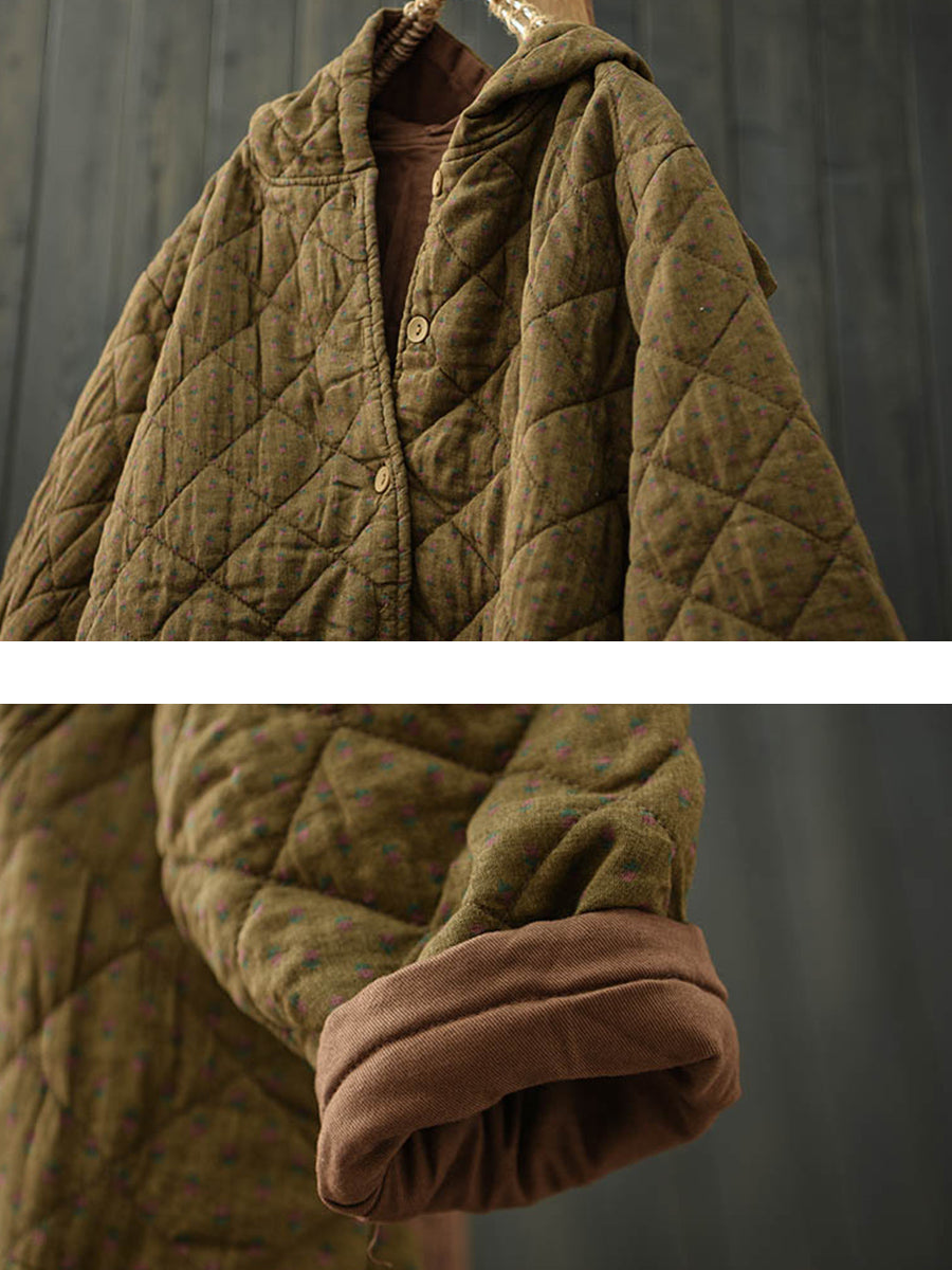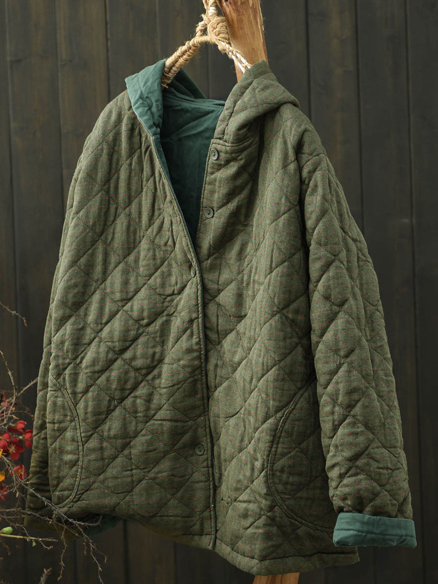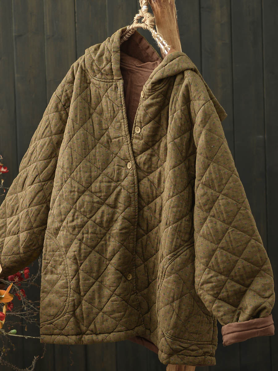Women Retro Pure Color Cotton Hooded Padded Coat