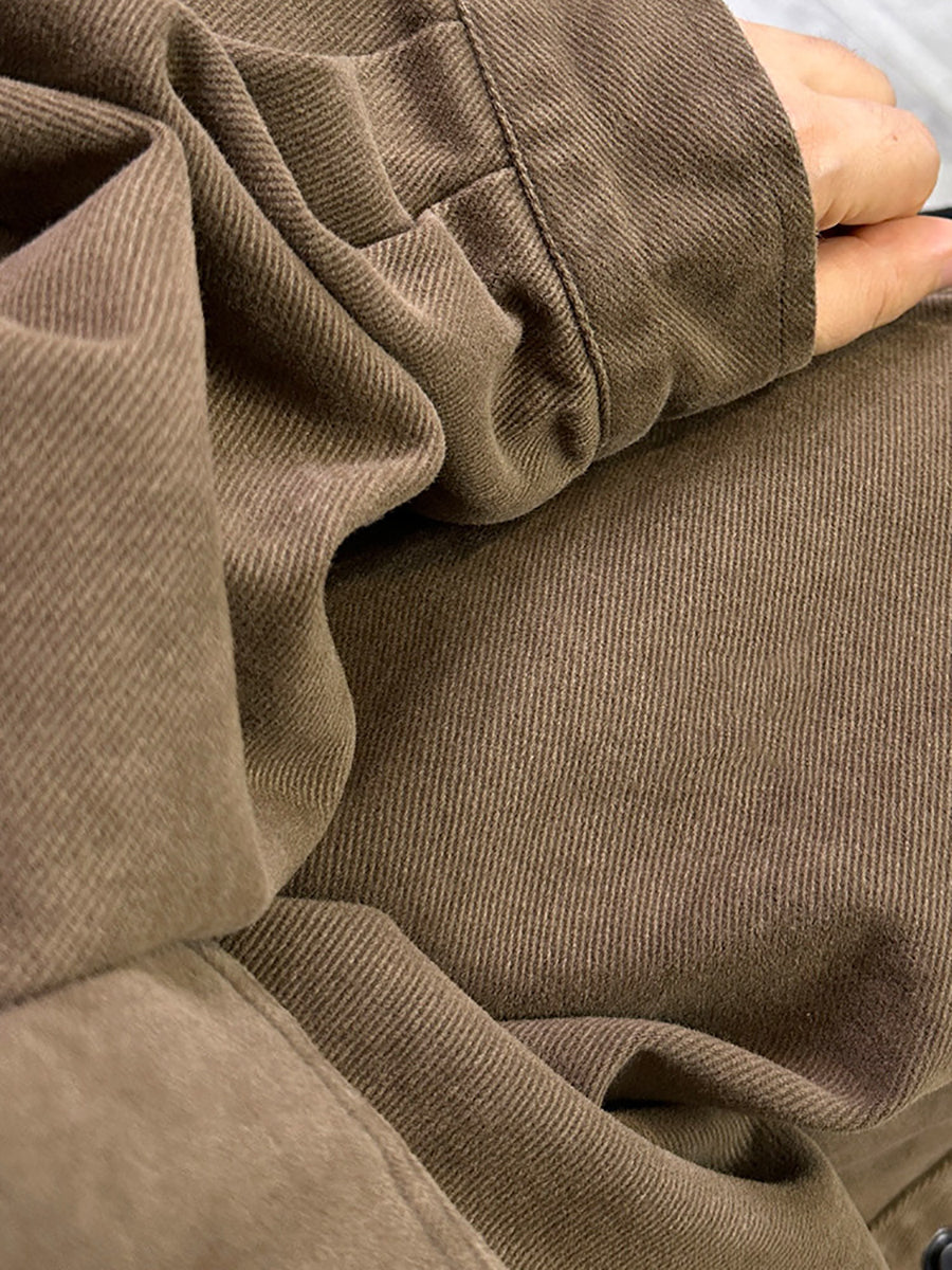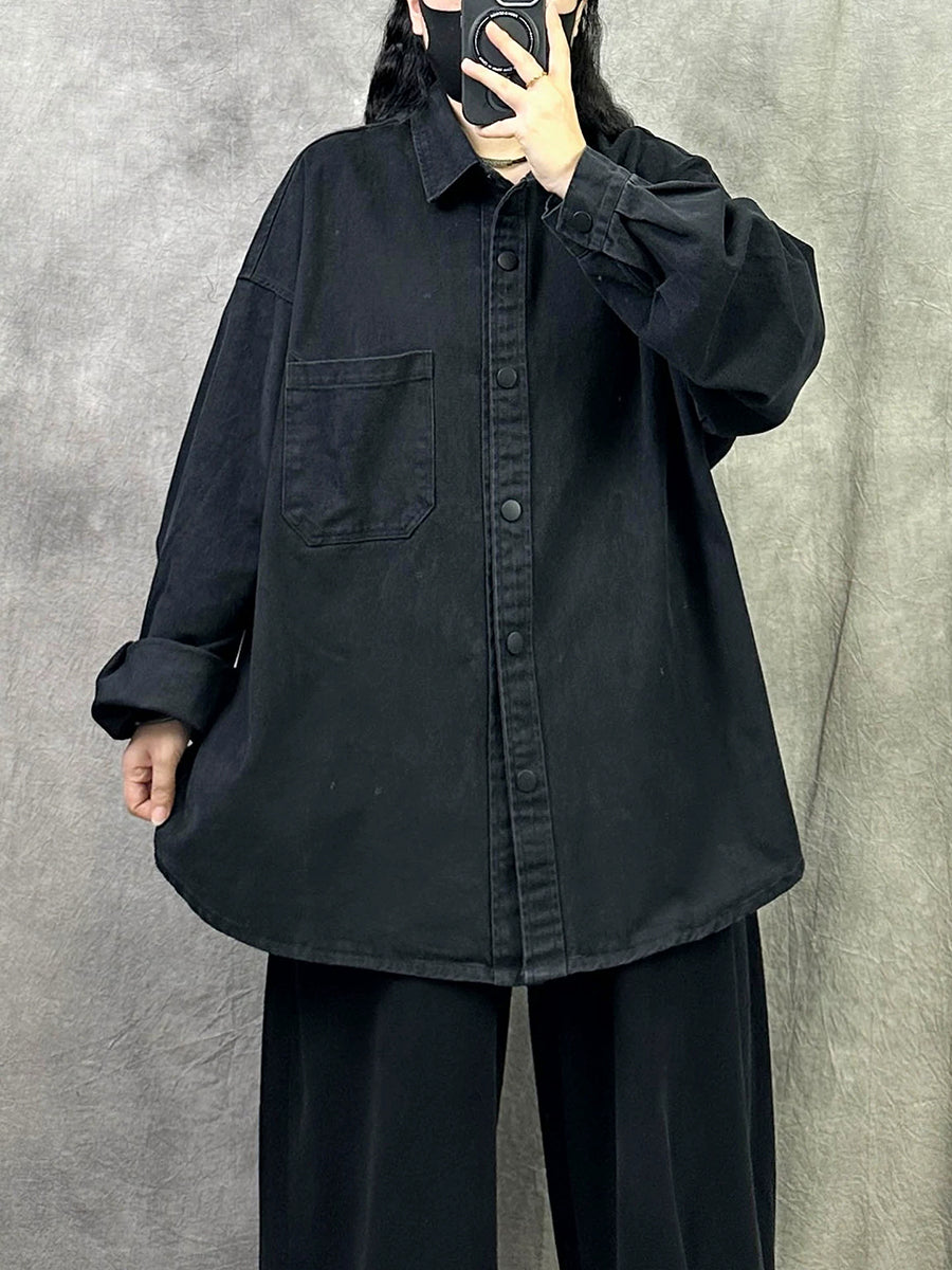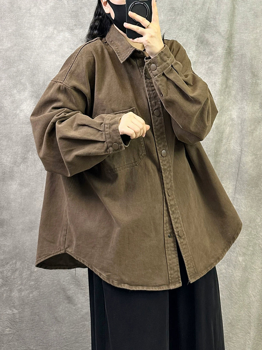 Women Retro Spring Pure Color Turn-down Collar Cotton Shirt