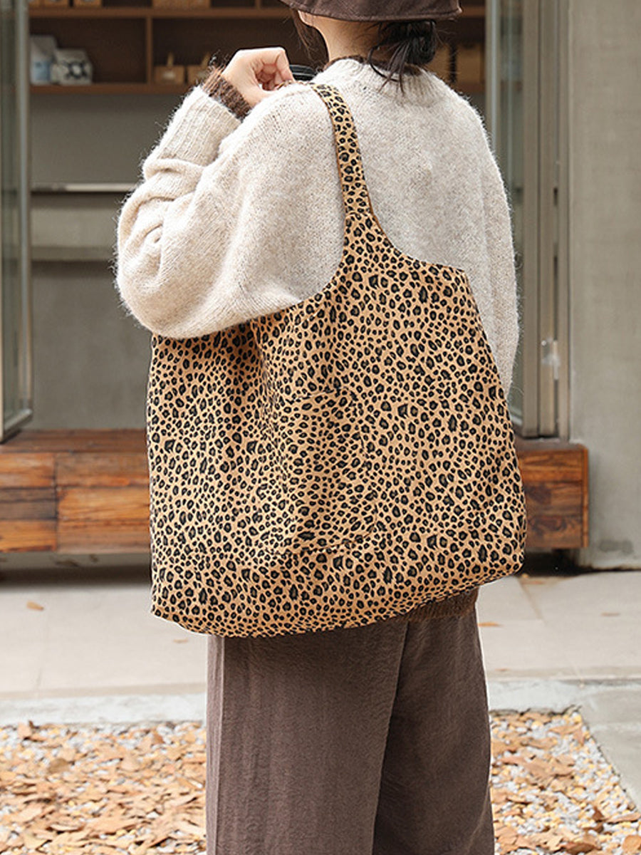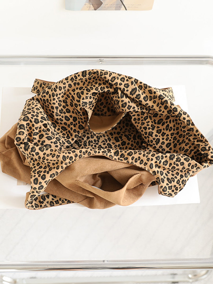 Women Retro Two-sided Leopard Suded Shoulder Bag