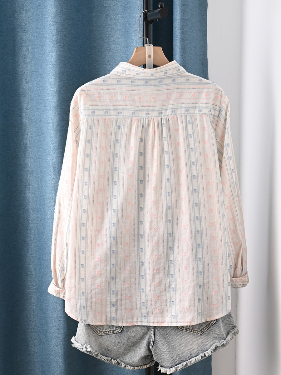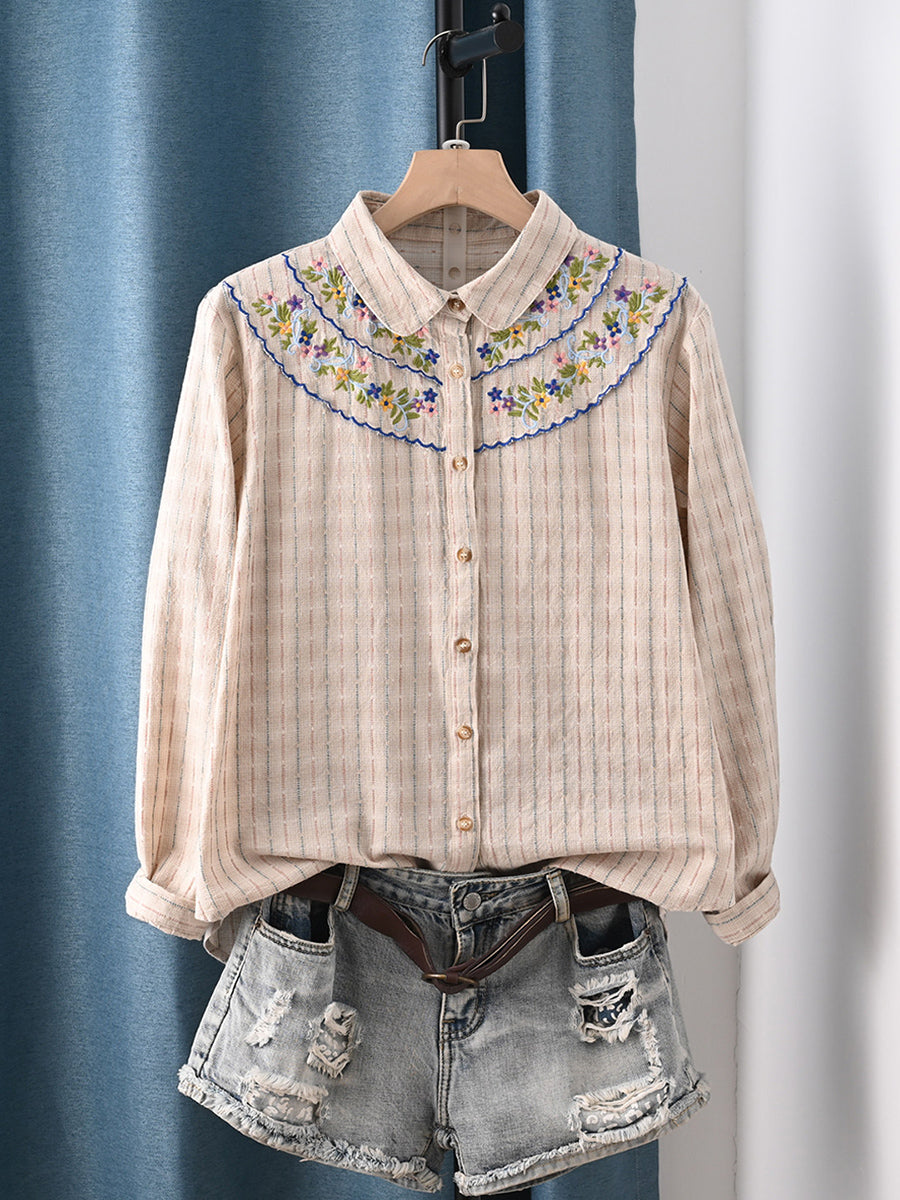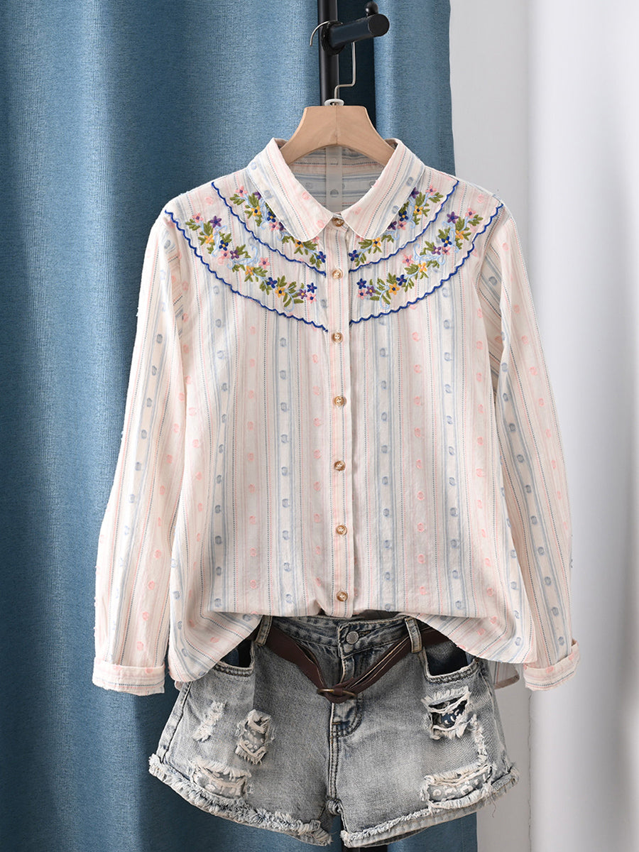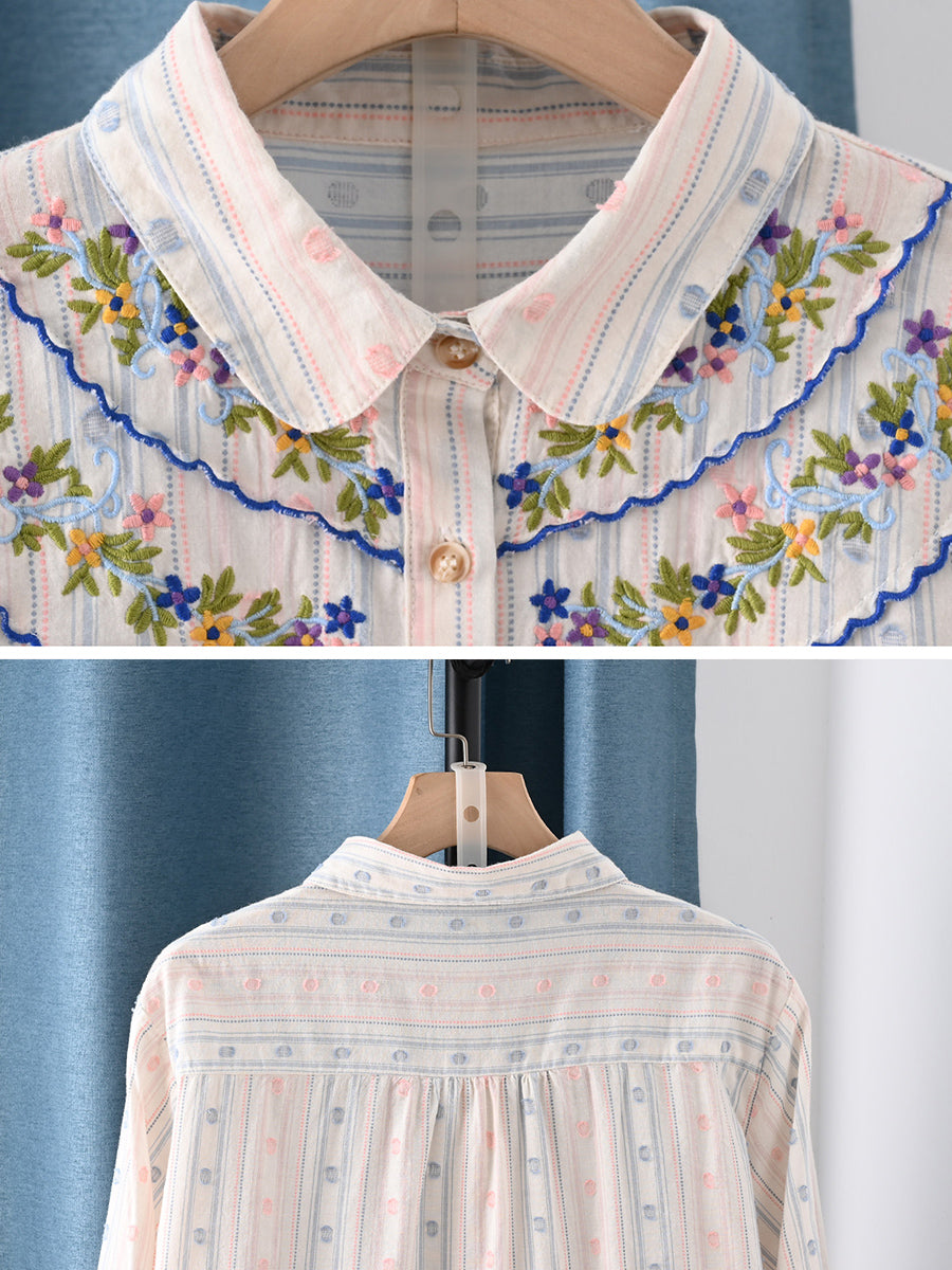 Women Spring Artsy Embroidery 100%Cotton Shirt