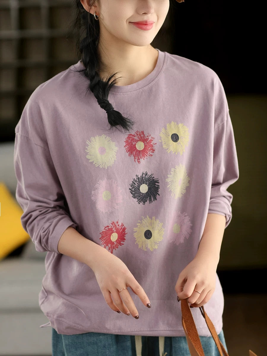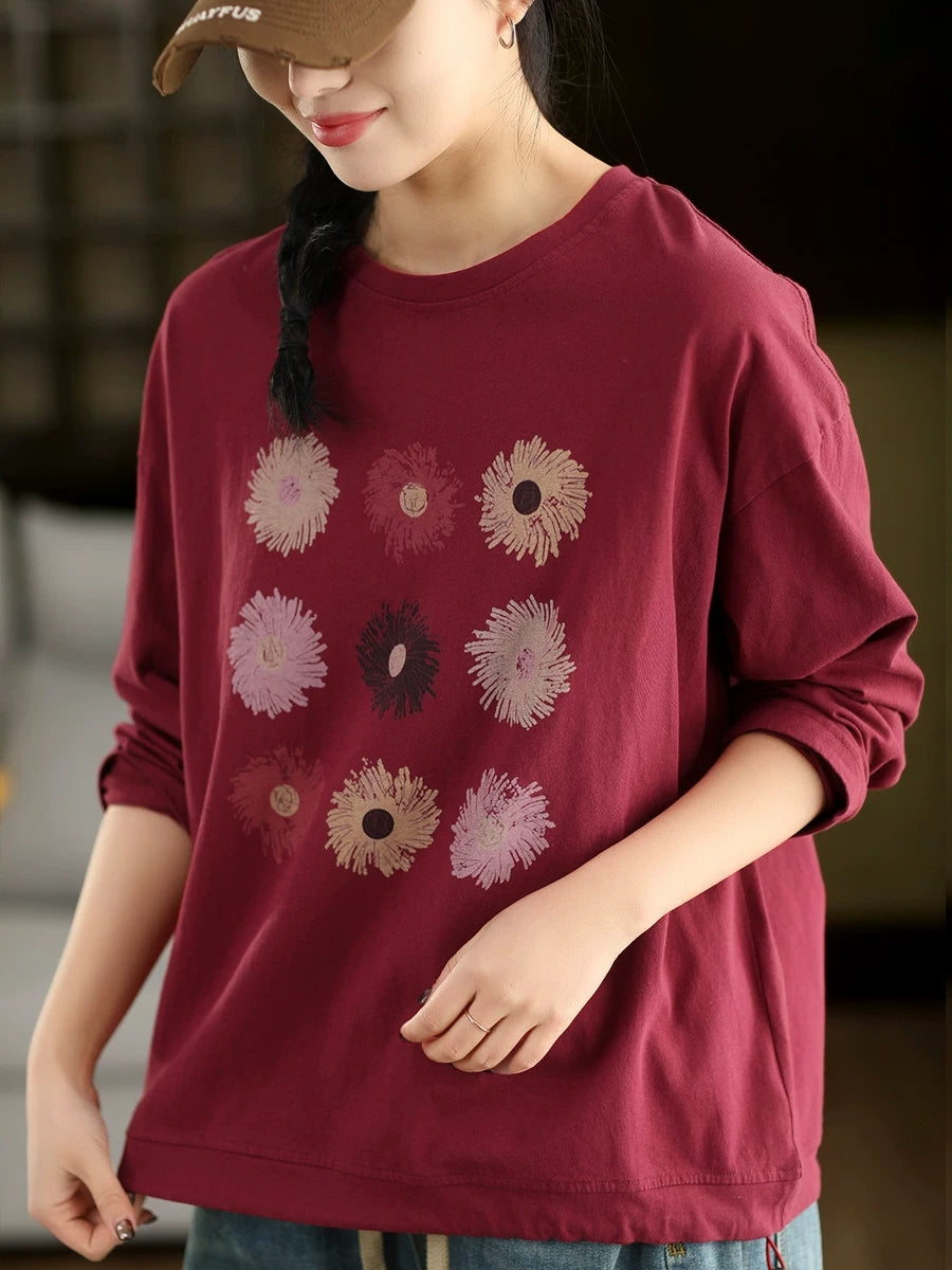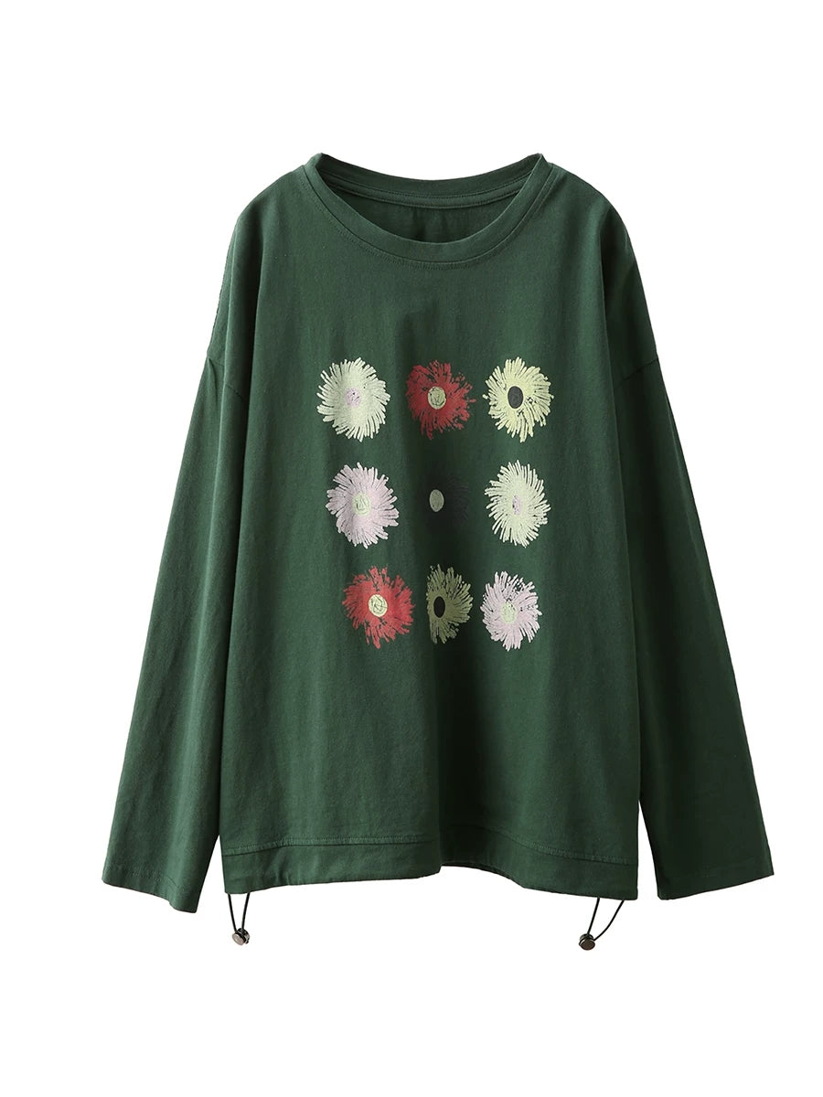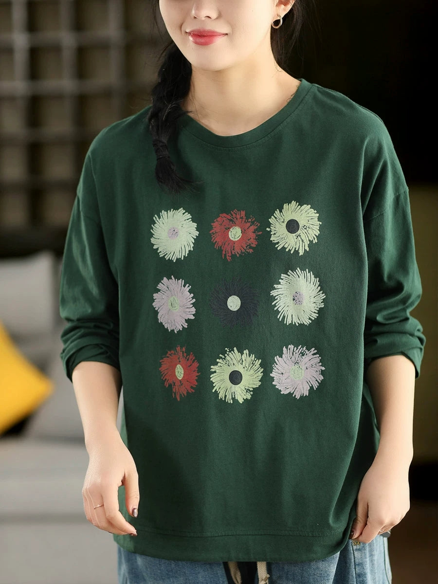 Women Spring Artsy Flower O-Neck Blouse