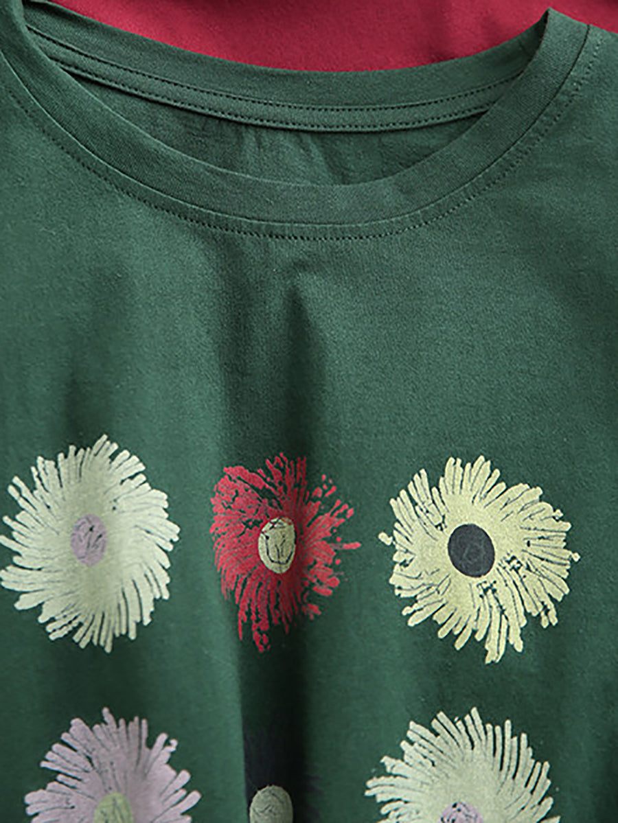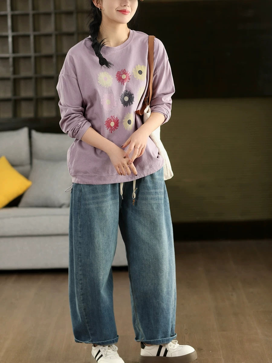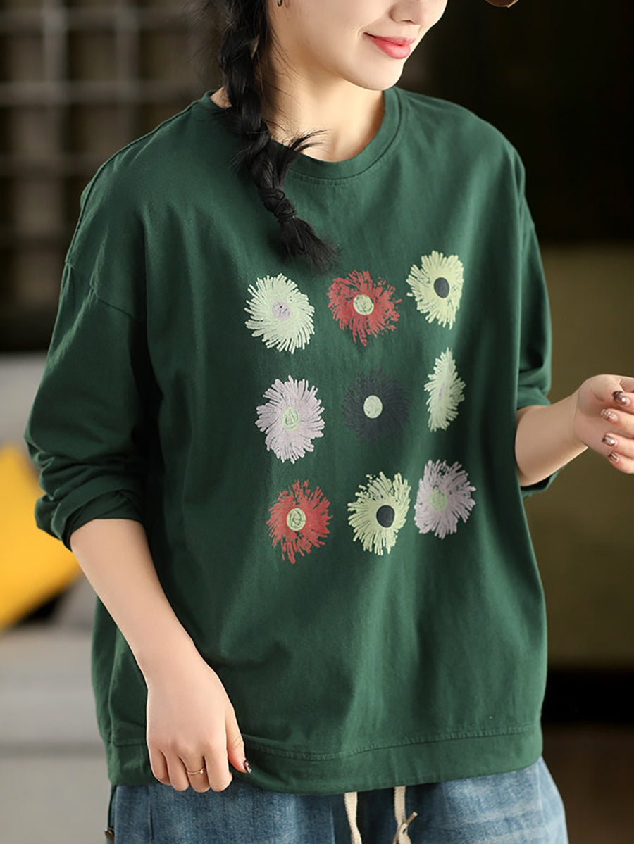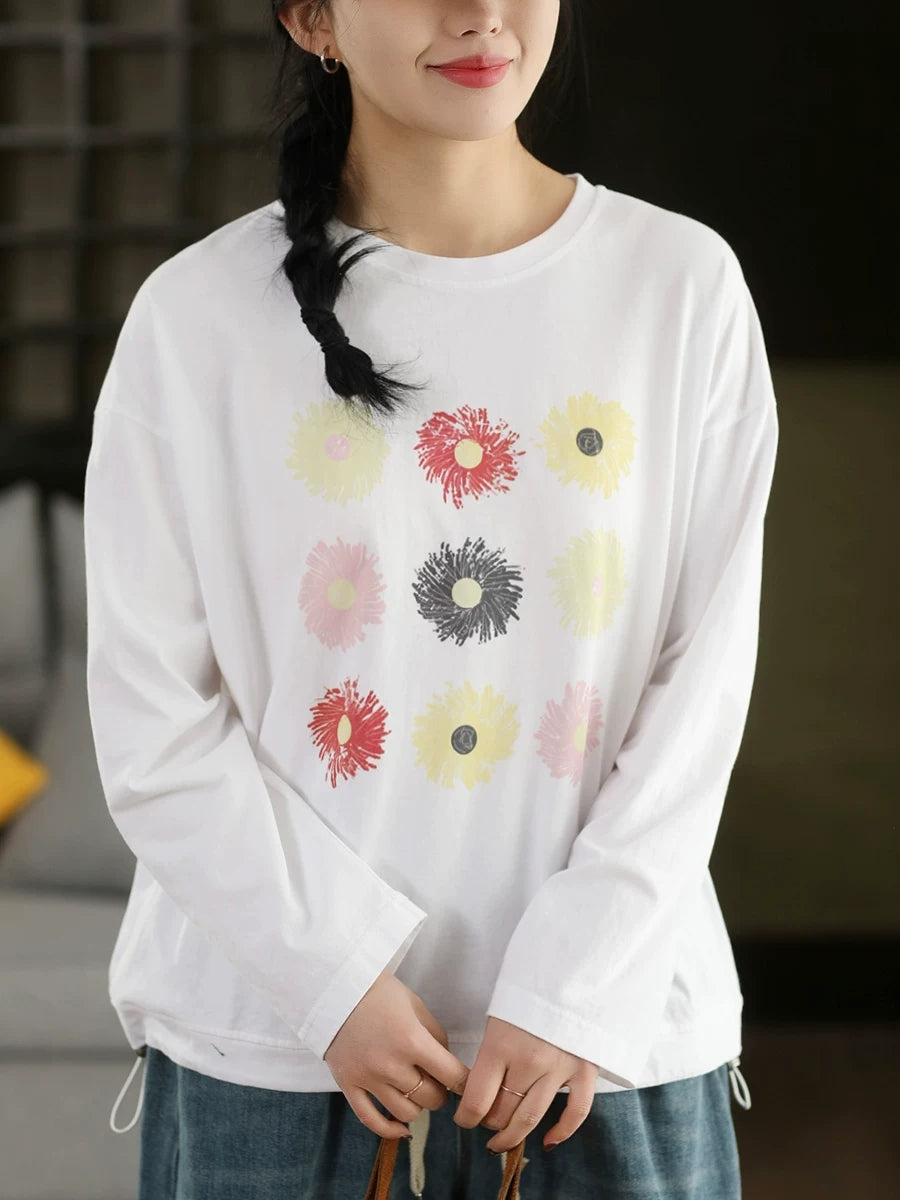 Women Spring Artsy Flower O-Neck Blouse