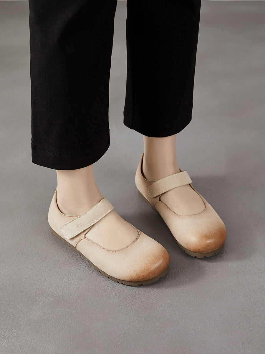 Women Spring Artsy Genuine Leather Flat Heel Shoes