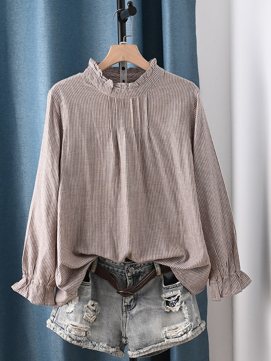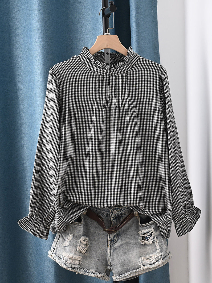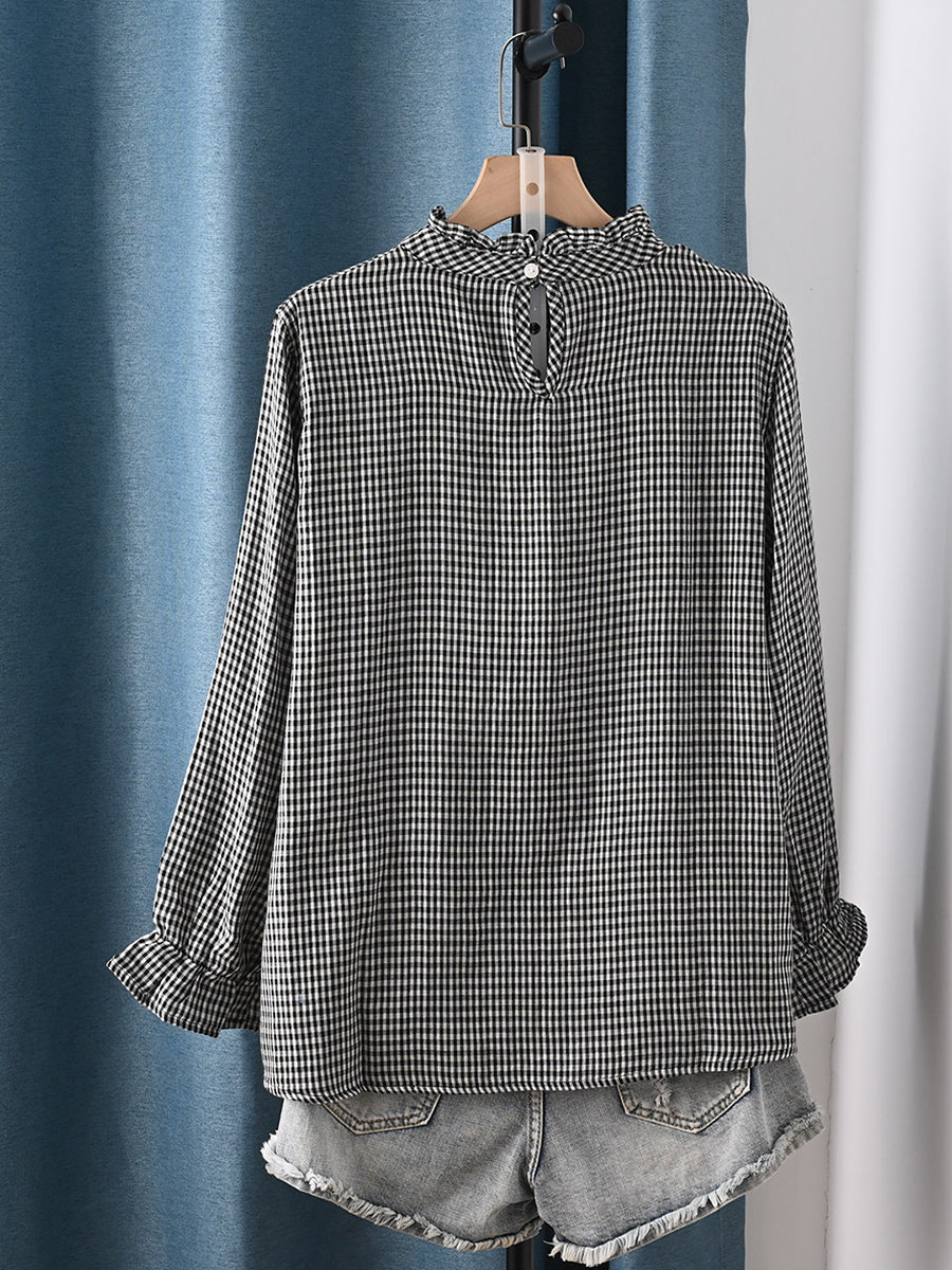 Women Spring Artsy Lattice 100%Cotton Blouse