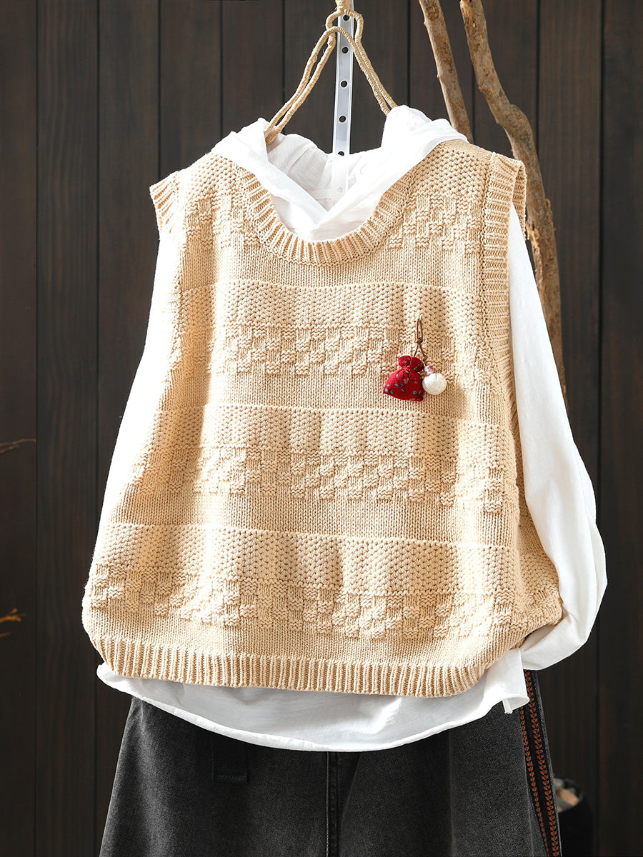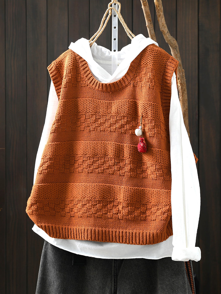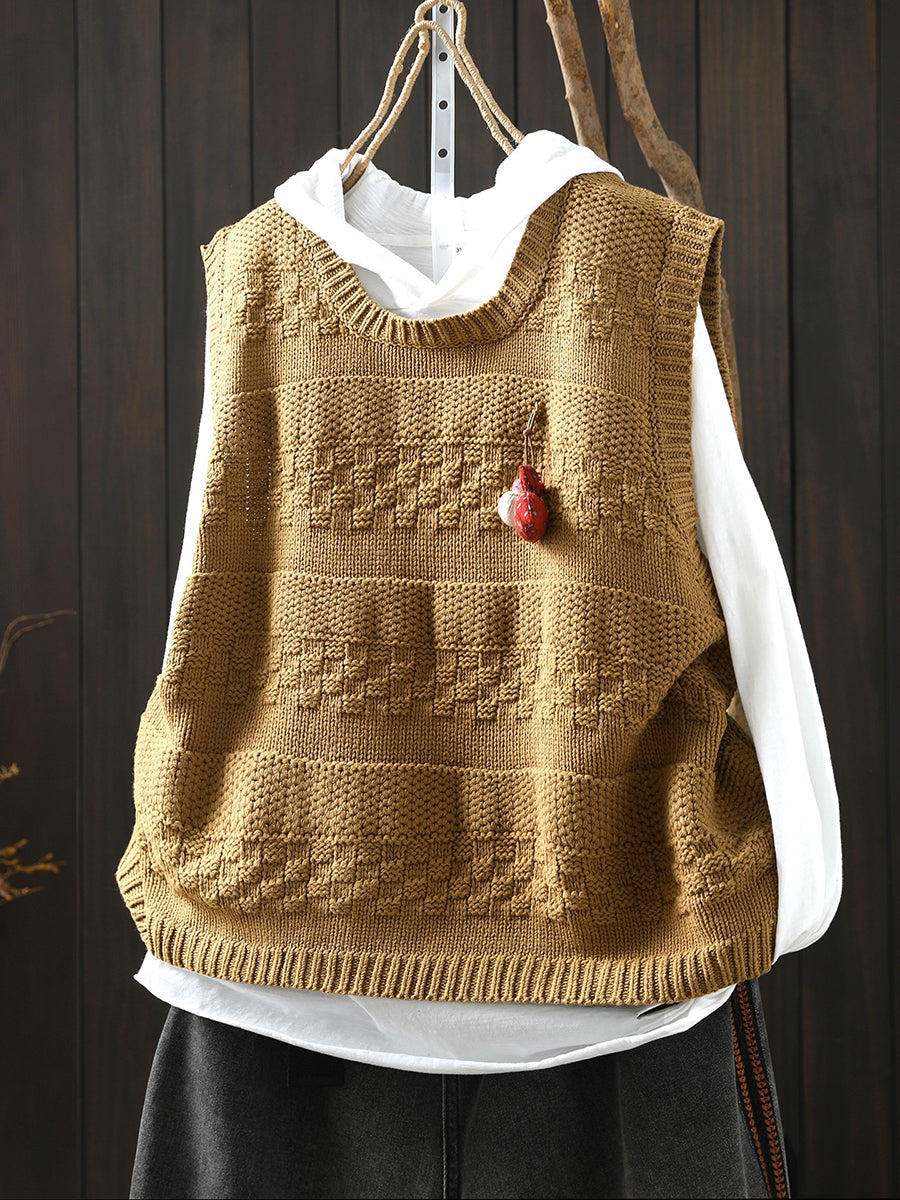 Women Spring Artsy O-Neck Knitted Vest
