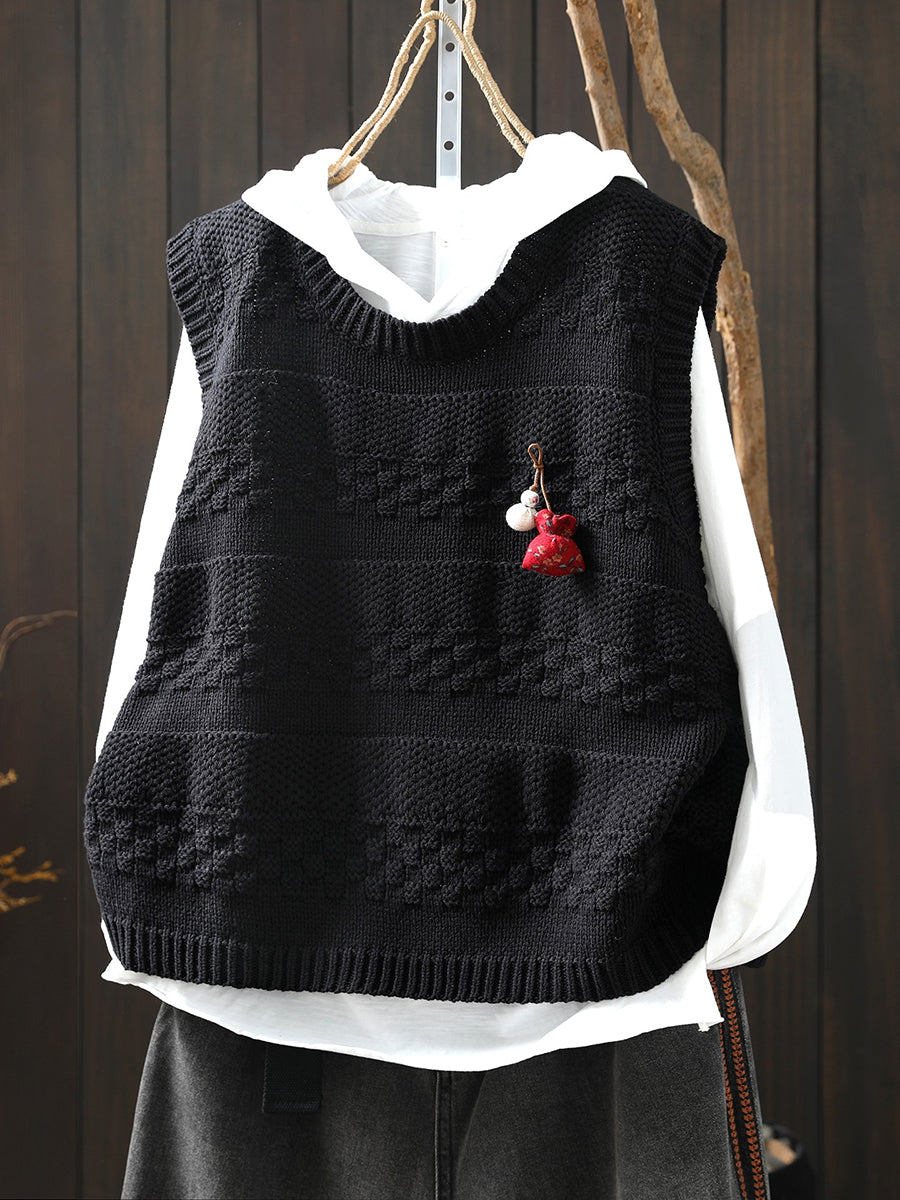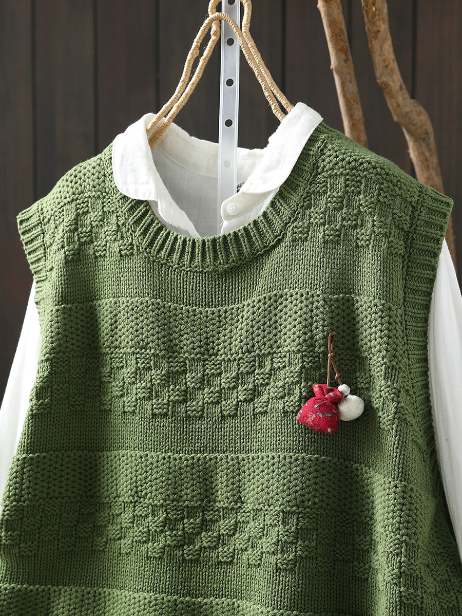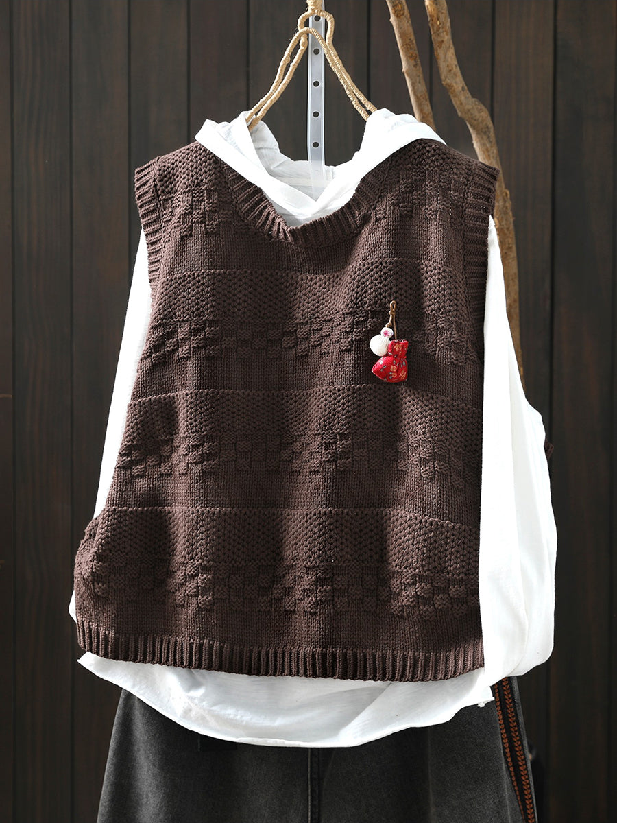 Women Spring Artsy O-Neck Knitted Vest