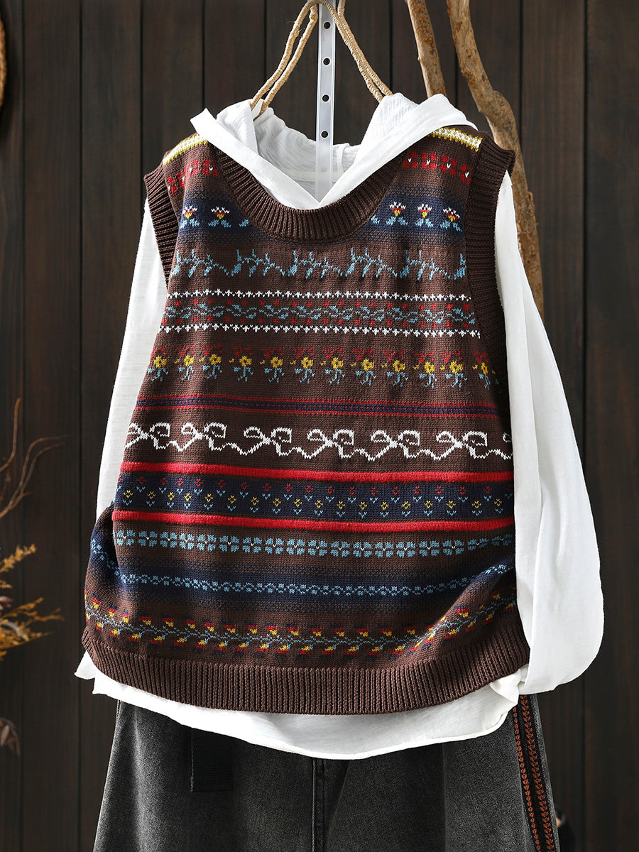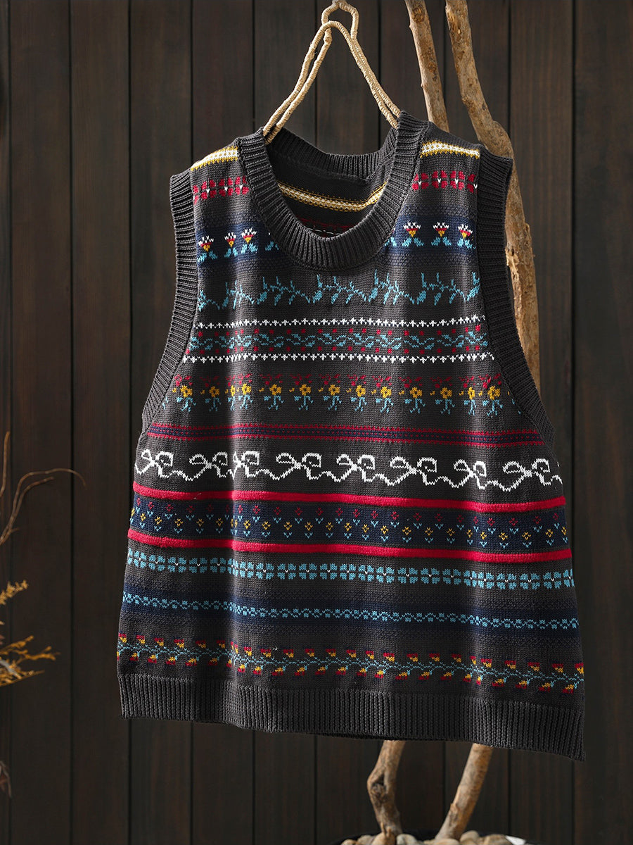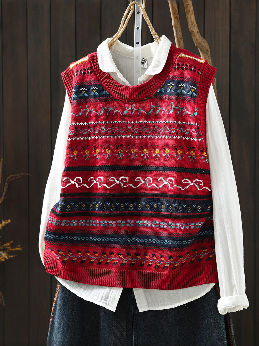 Women Spring Artsy O-Neck Knitted Vest