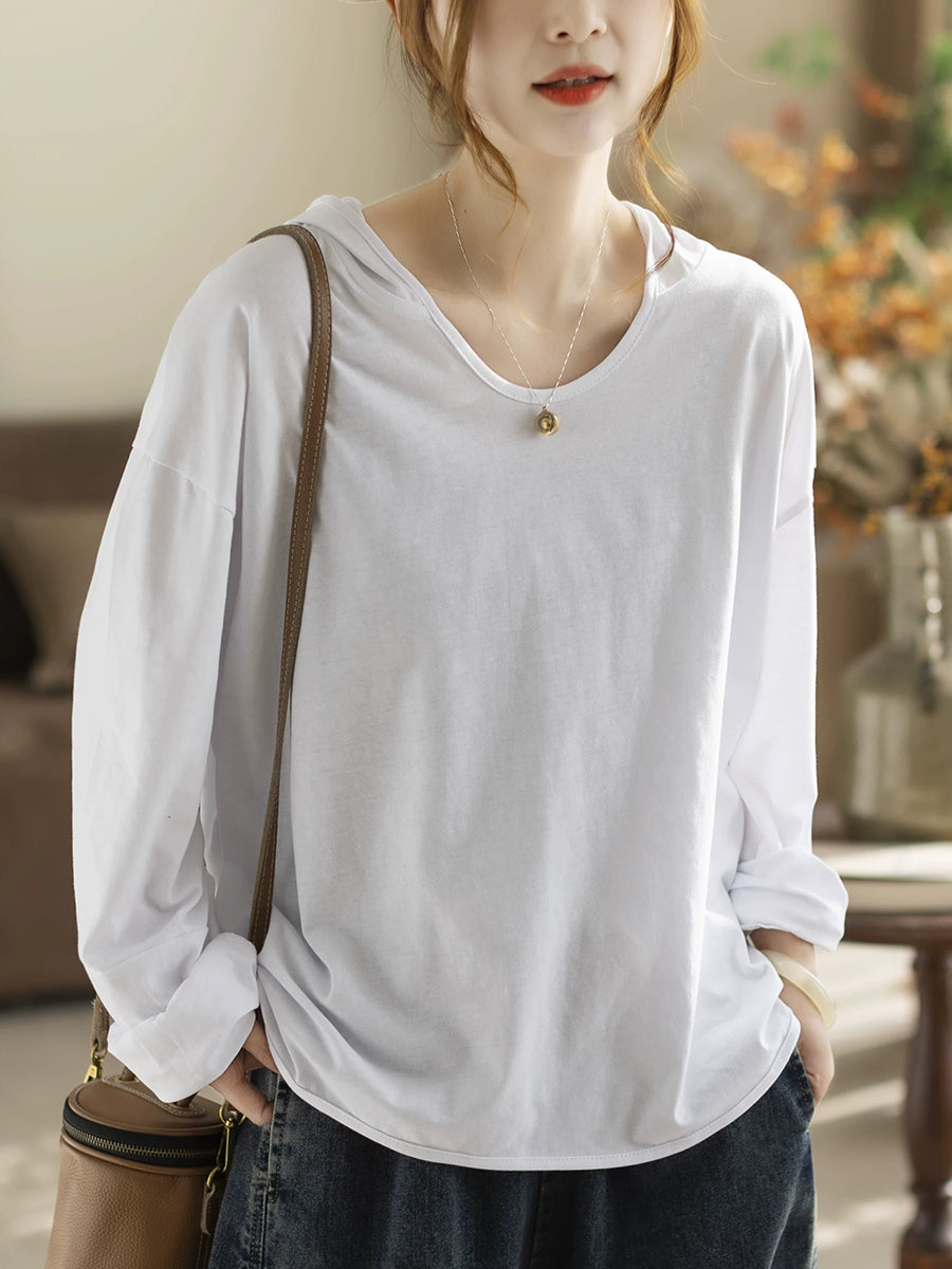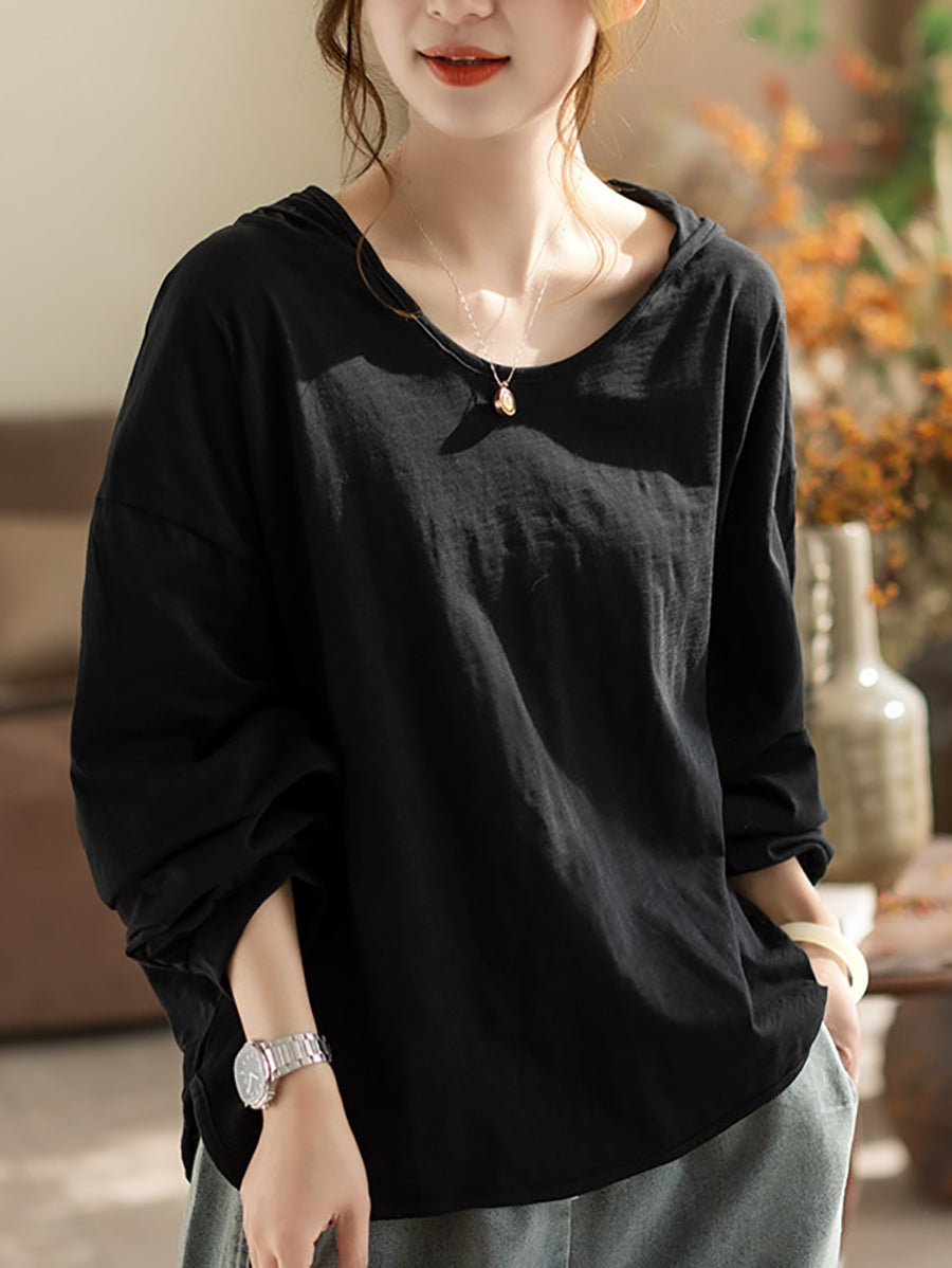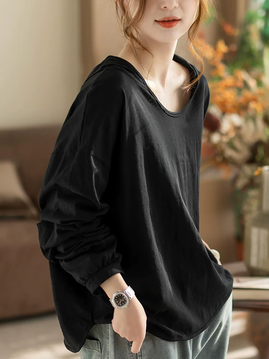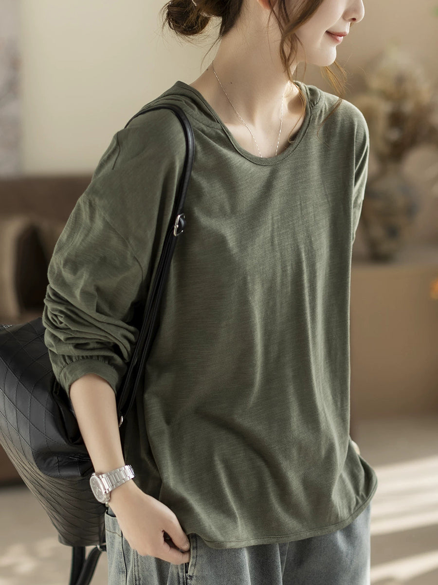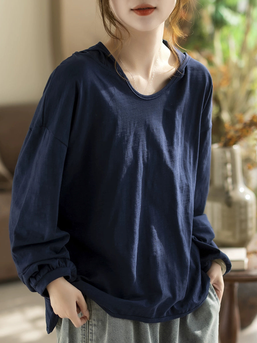 Women Spring Artsy Pure Color 100%Cotton Hoodie