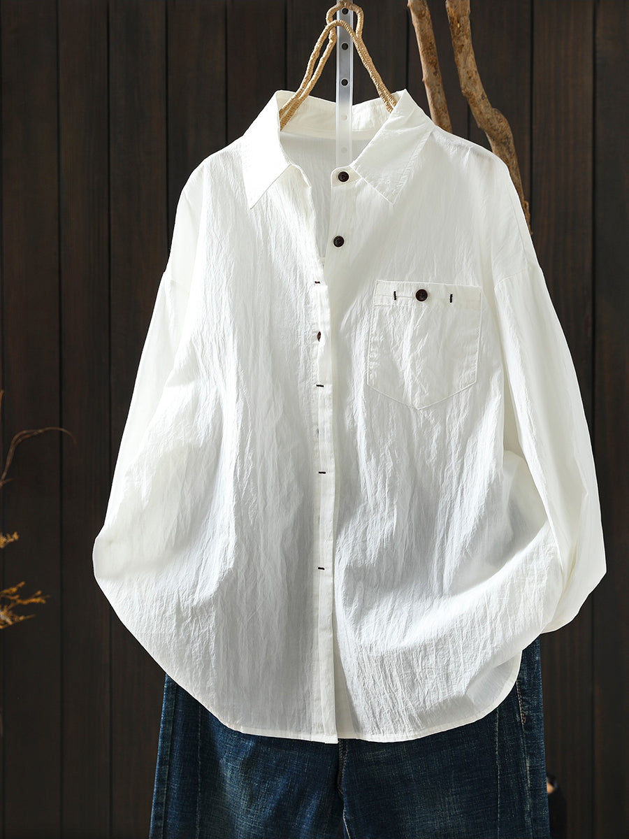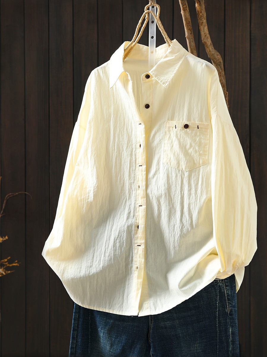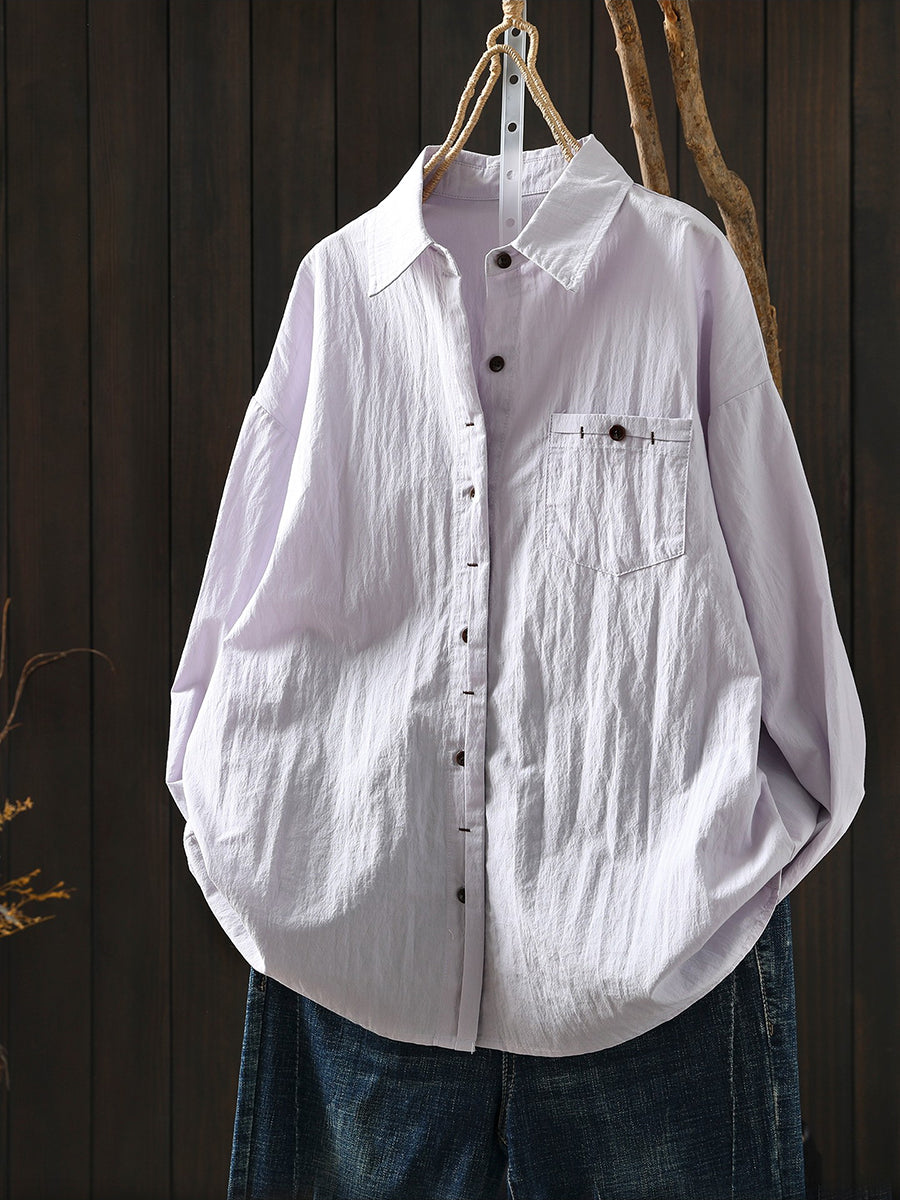 Women Spring Artsy Pure Color 100%Cotton Shirt