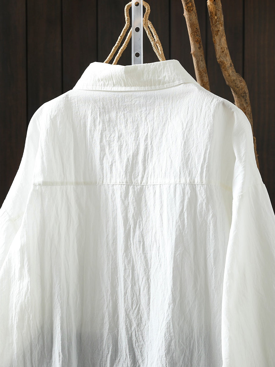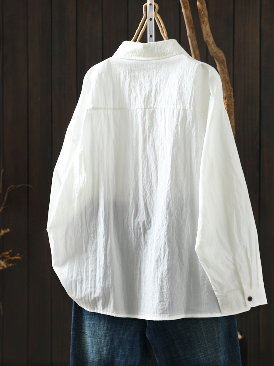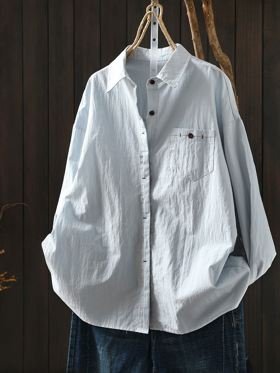 Women Spring Artsy Pure Color 100%Cotton Shirt