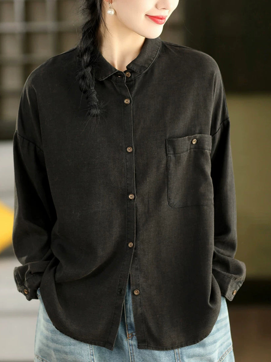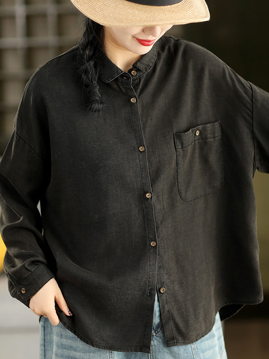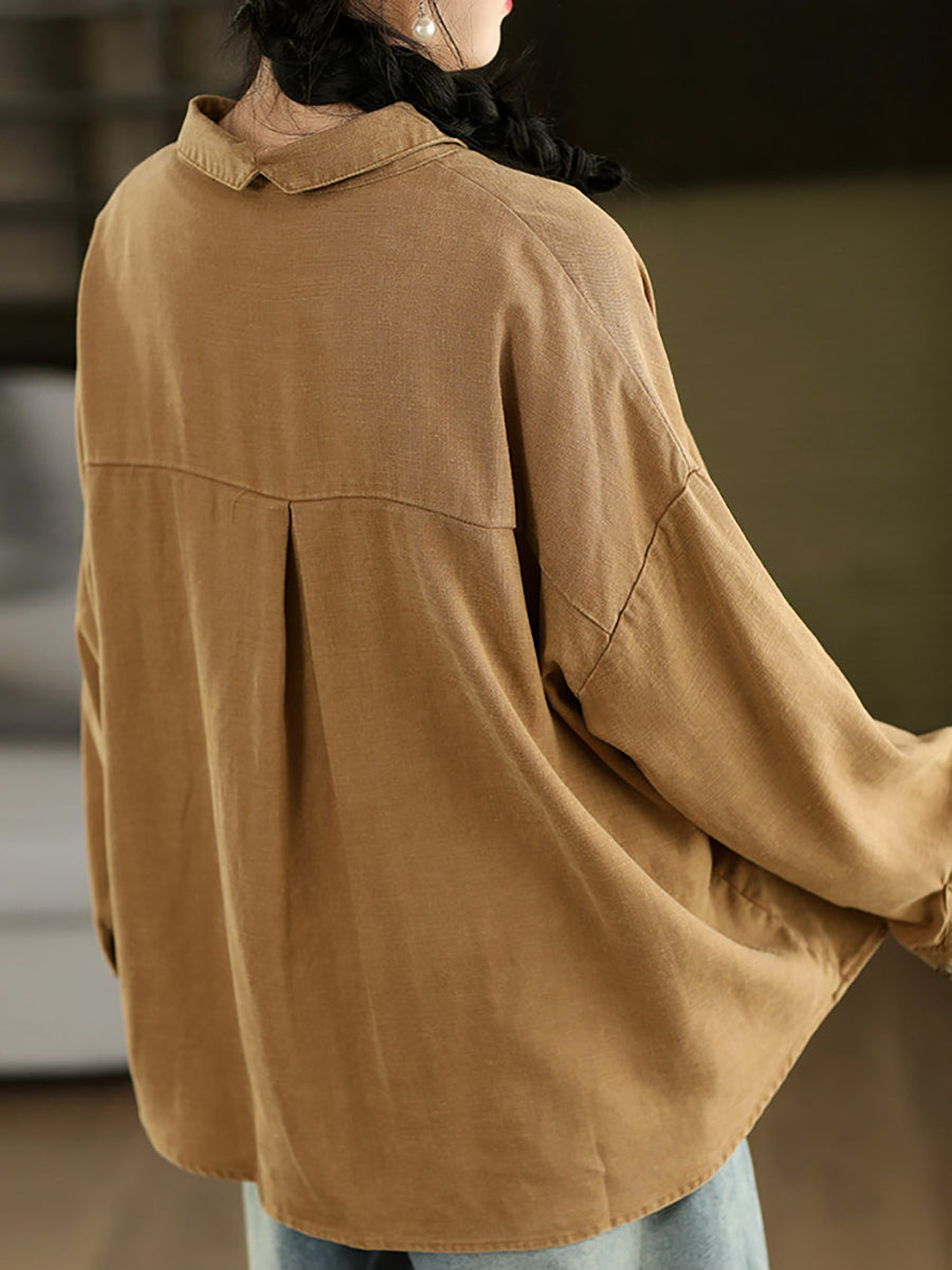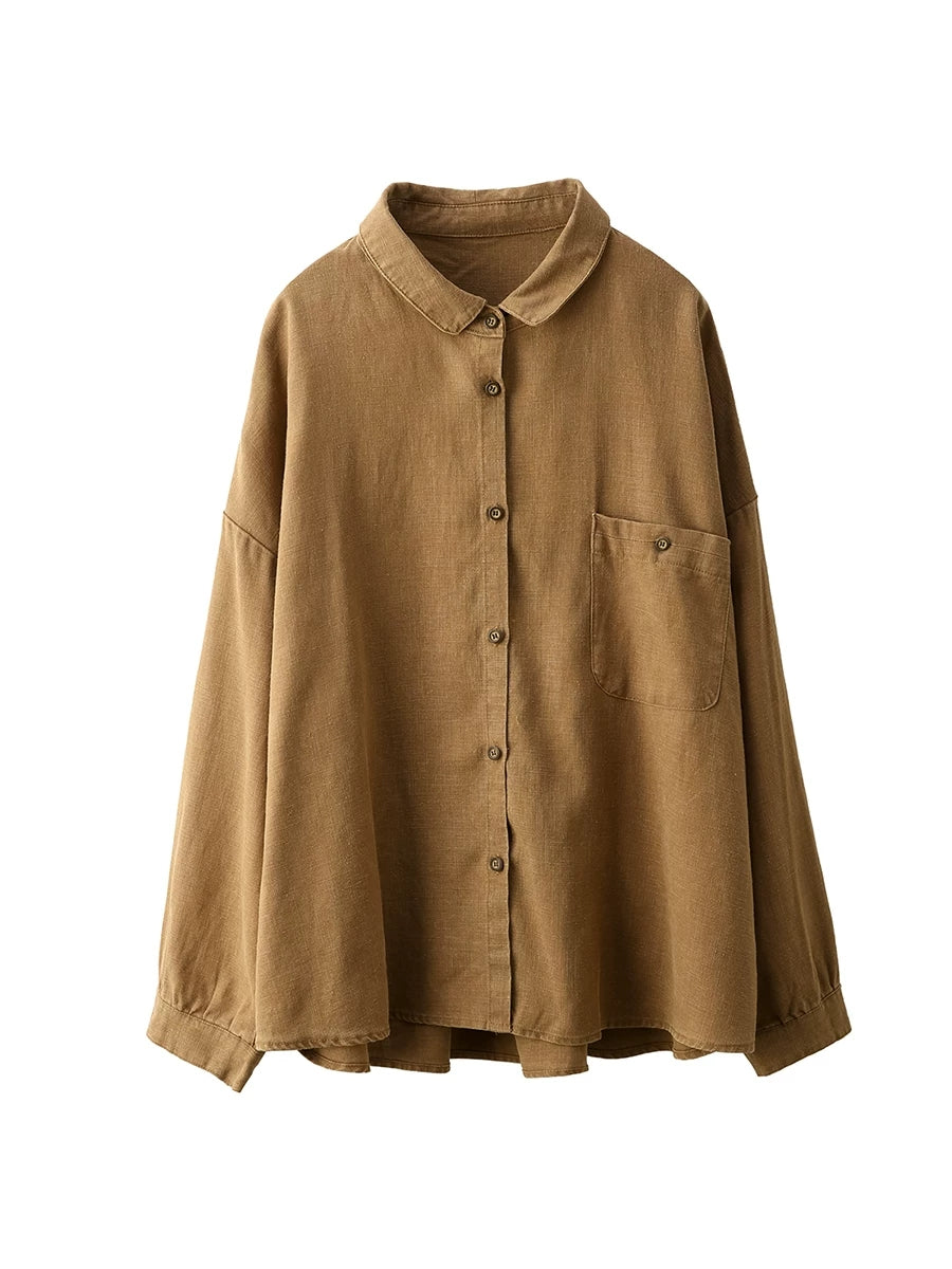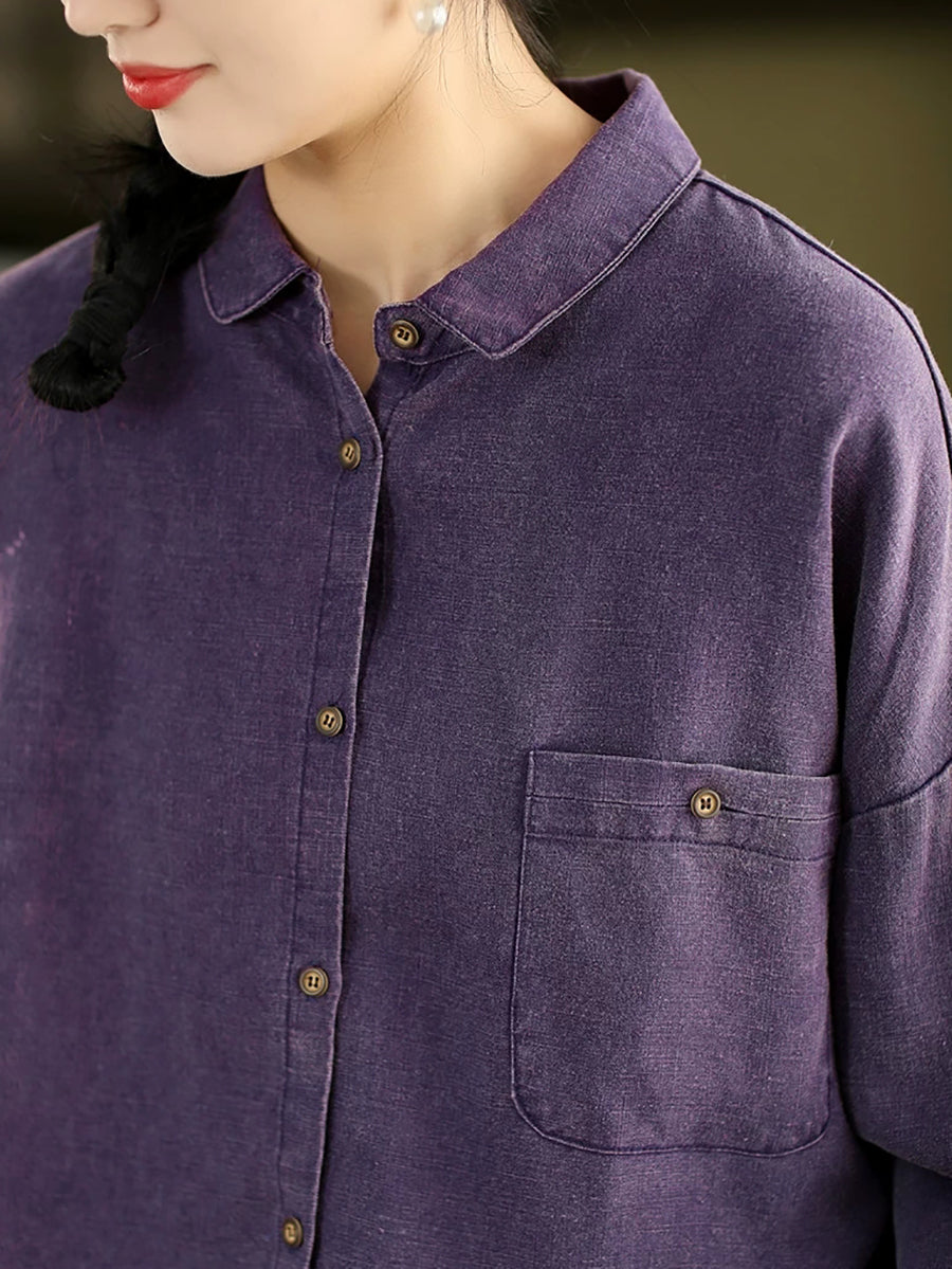 Women Spring Artsy Pure Color 100%Linen Shirt