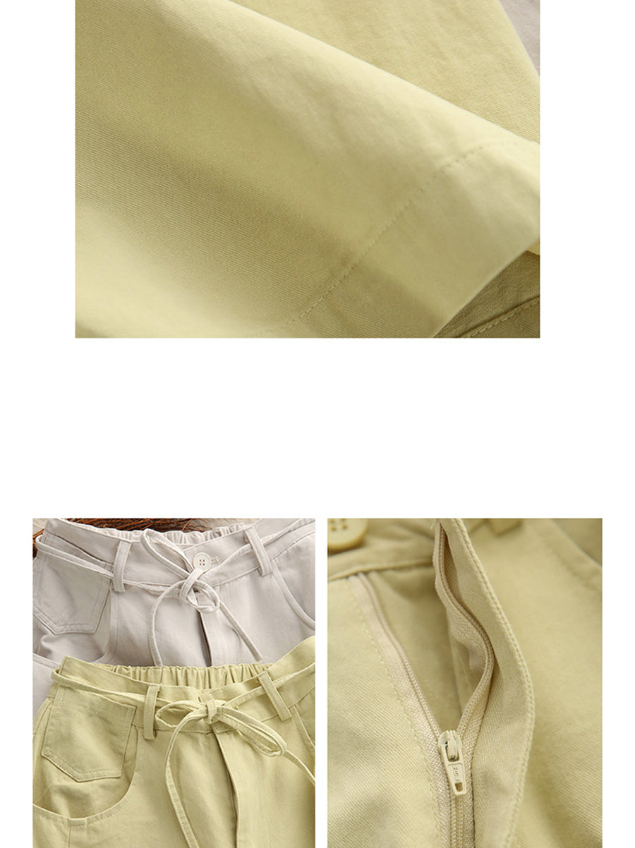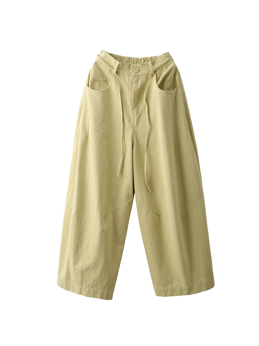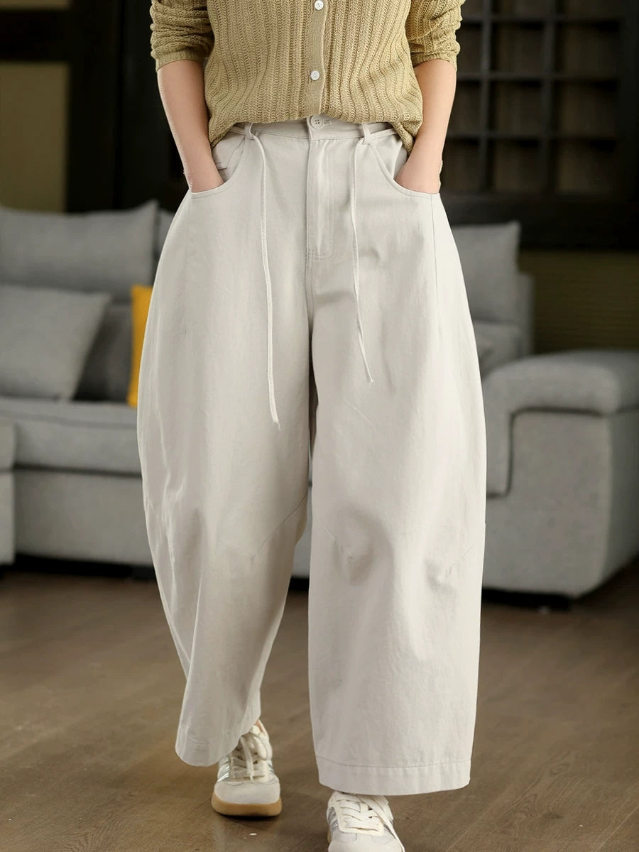 Women Spring Casual Pure Color 100%Cotton Wide-leg Pants
