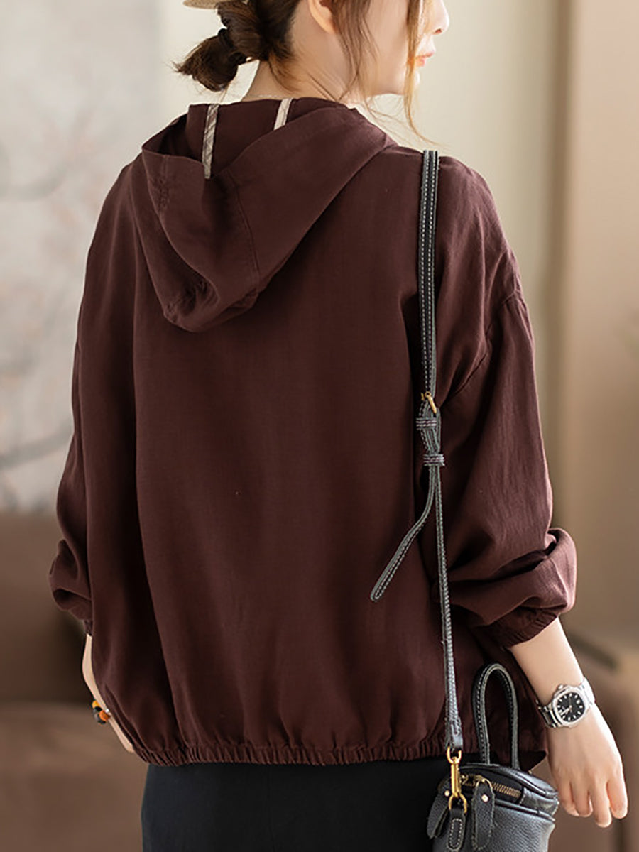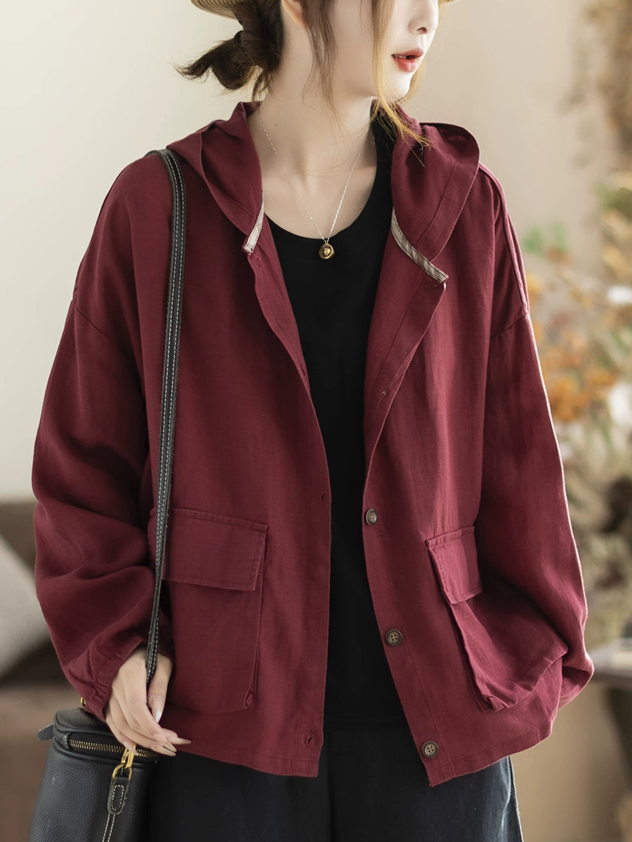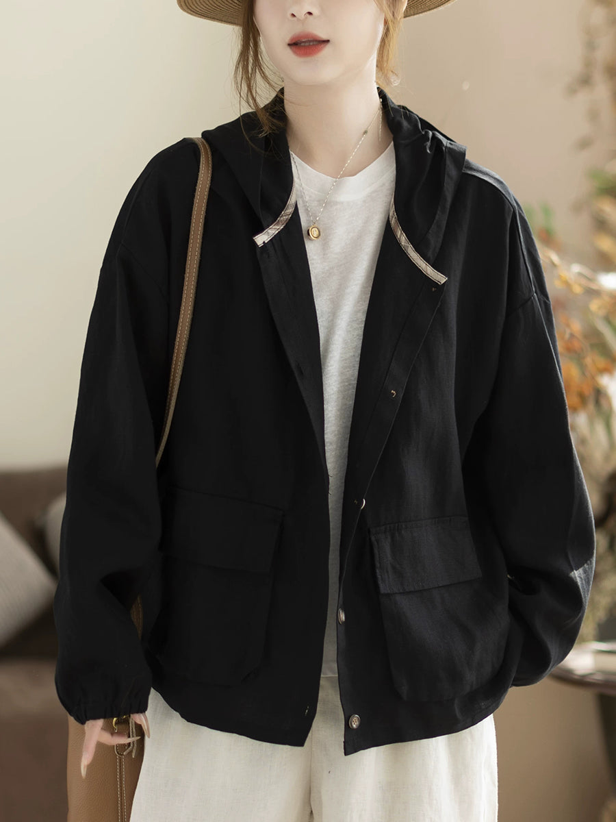 Women Spring Casual Pure Color Hooded Coat