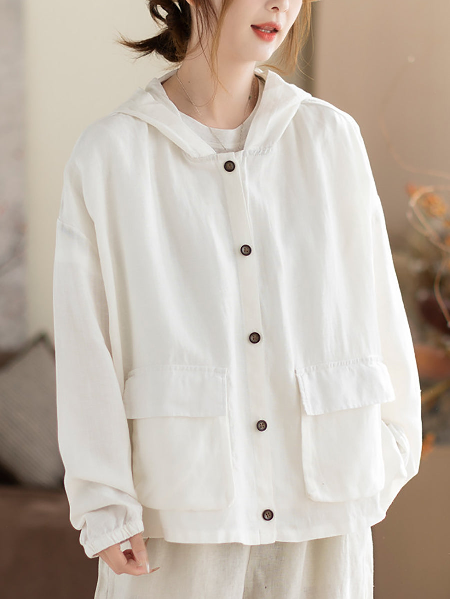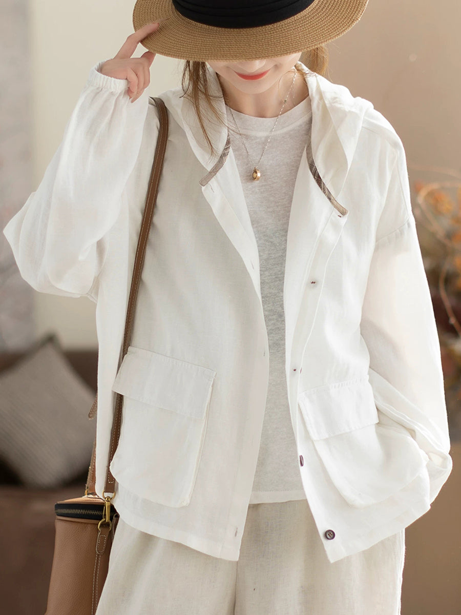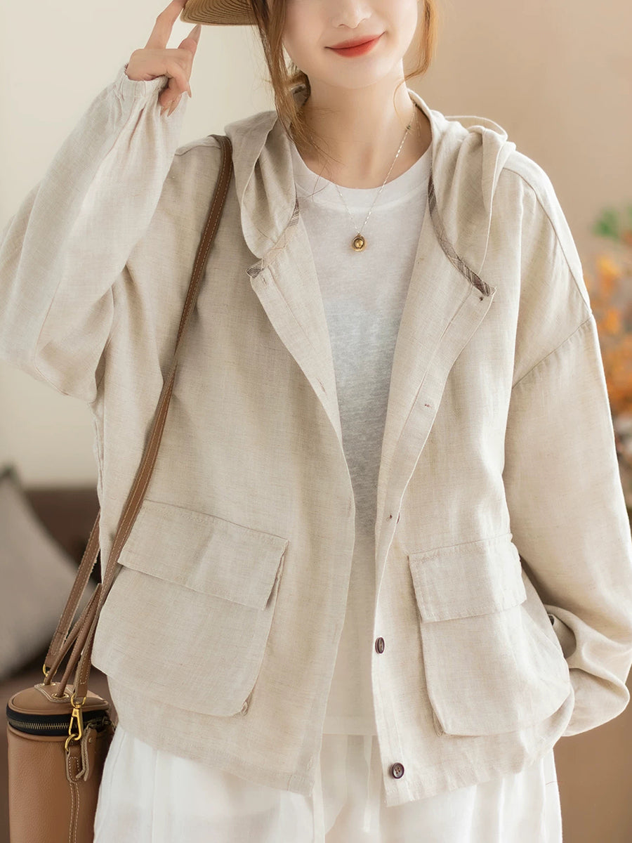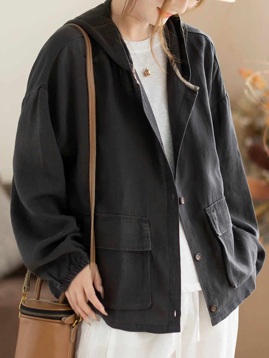 Women Spring Casual Pure Color Hooded Coat