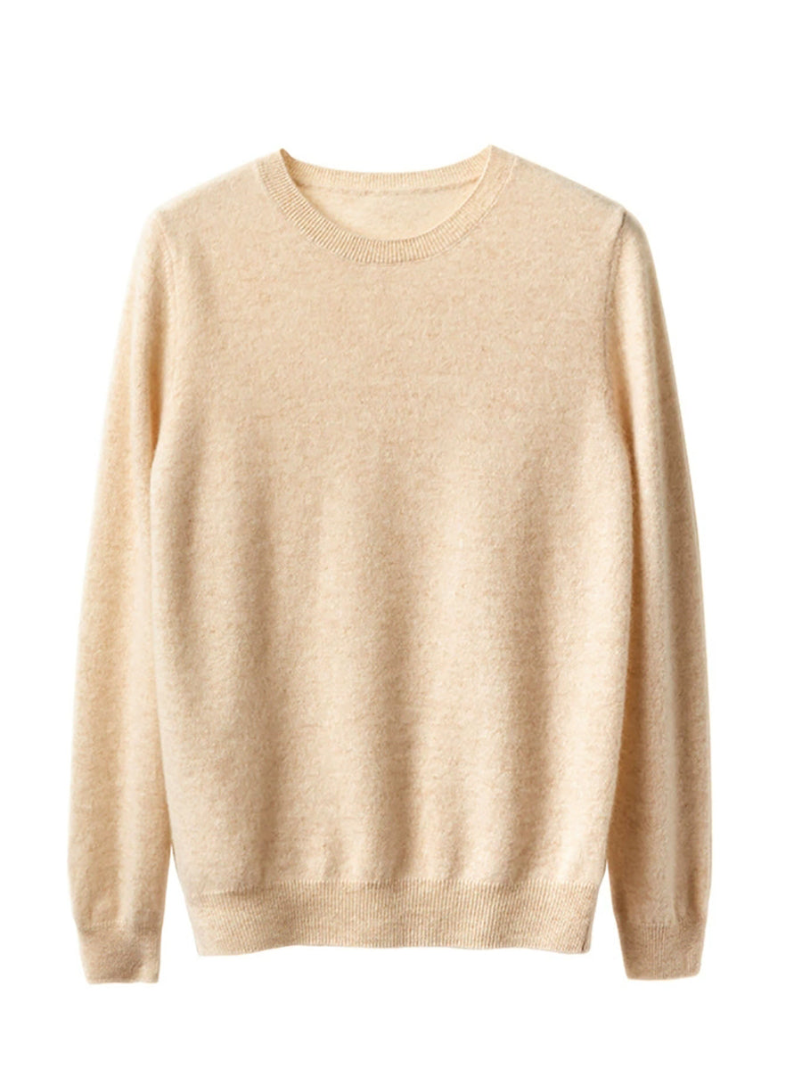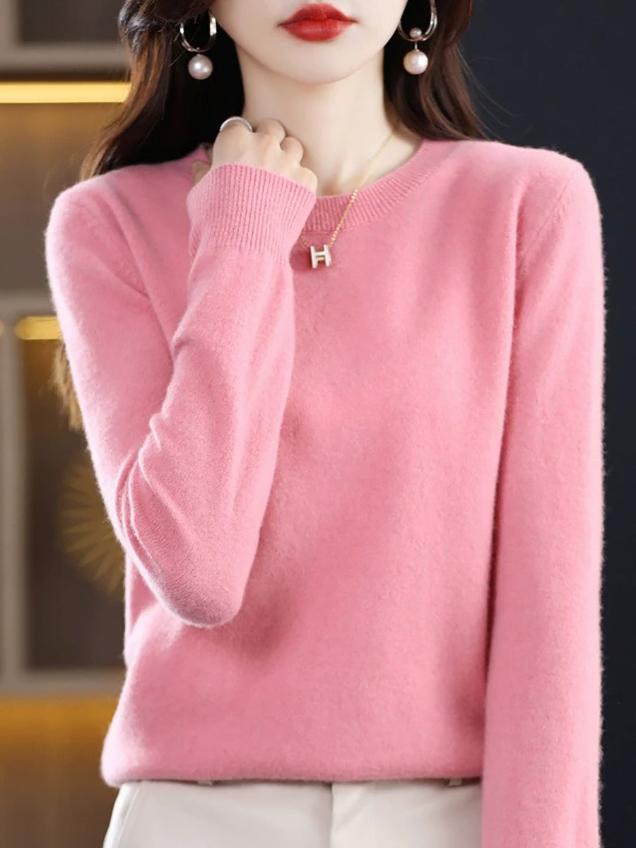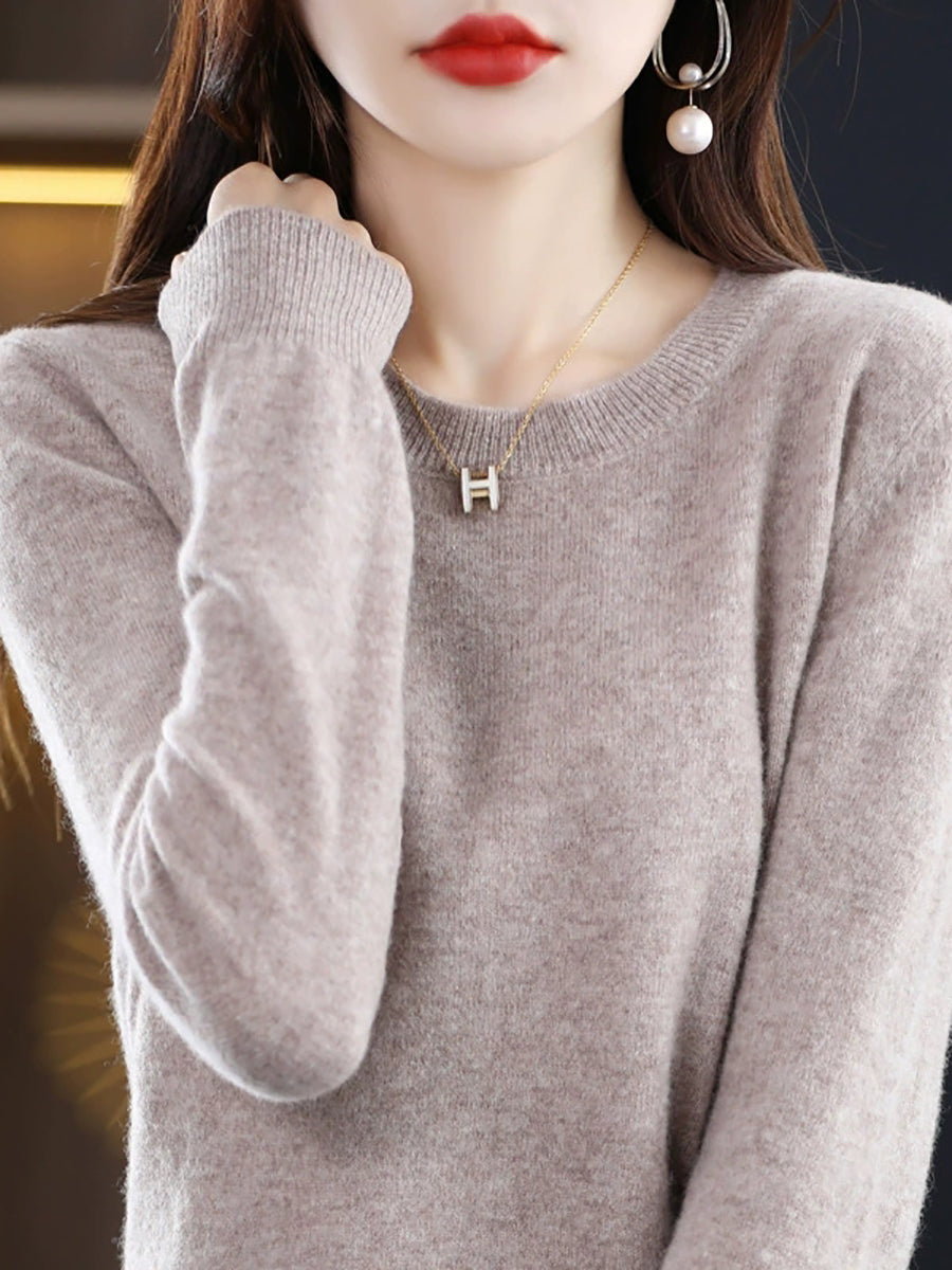 Women Spring Casual Pure Color O-Neck Sweater