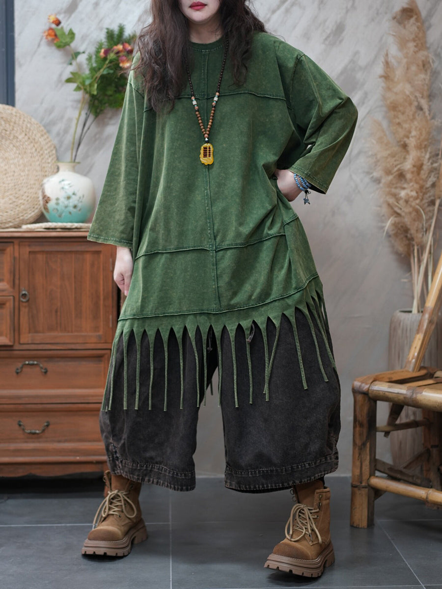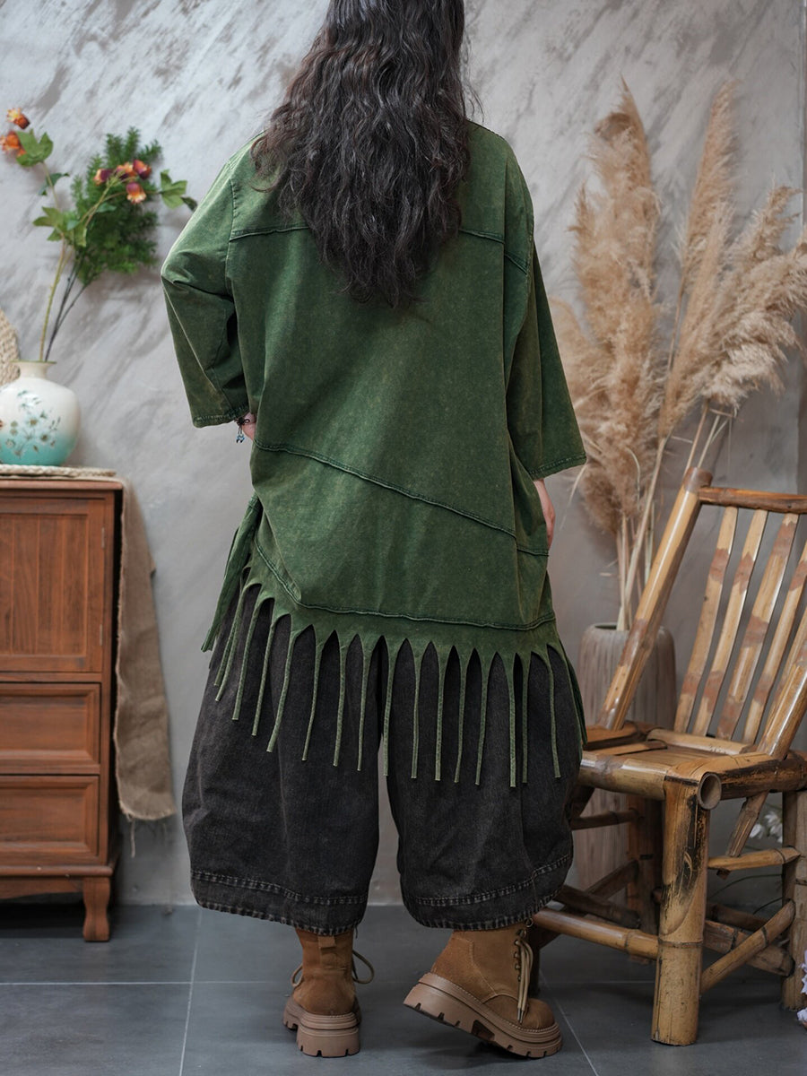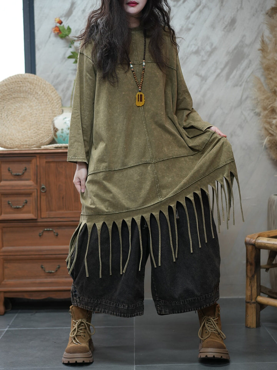 Women Spring Casual Pure Color Tassel Blouse